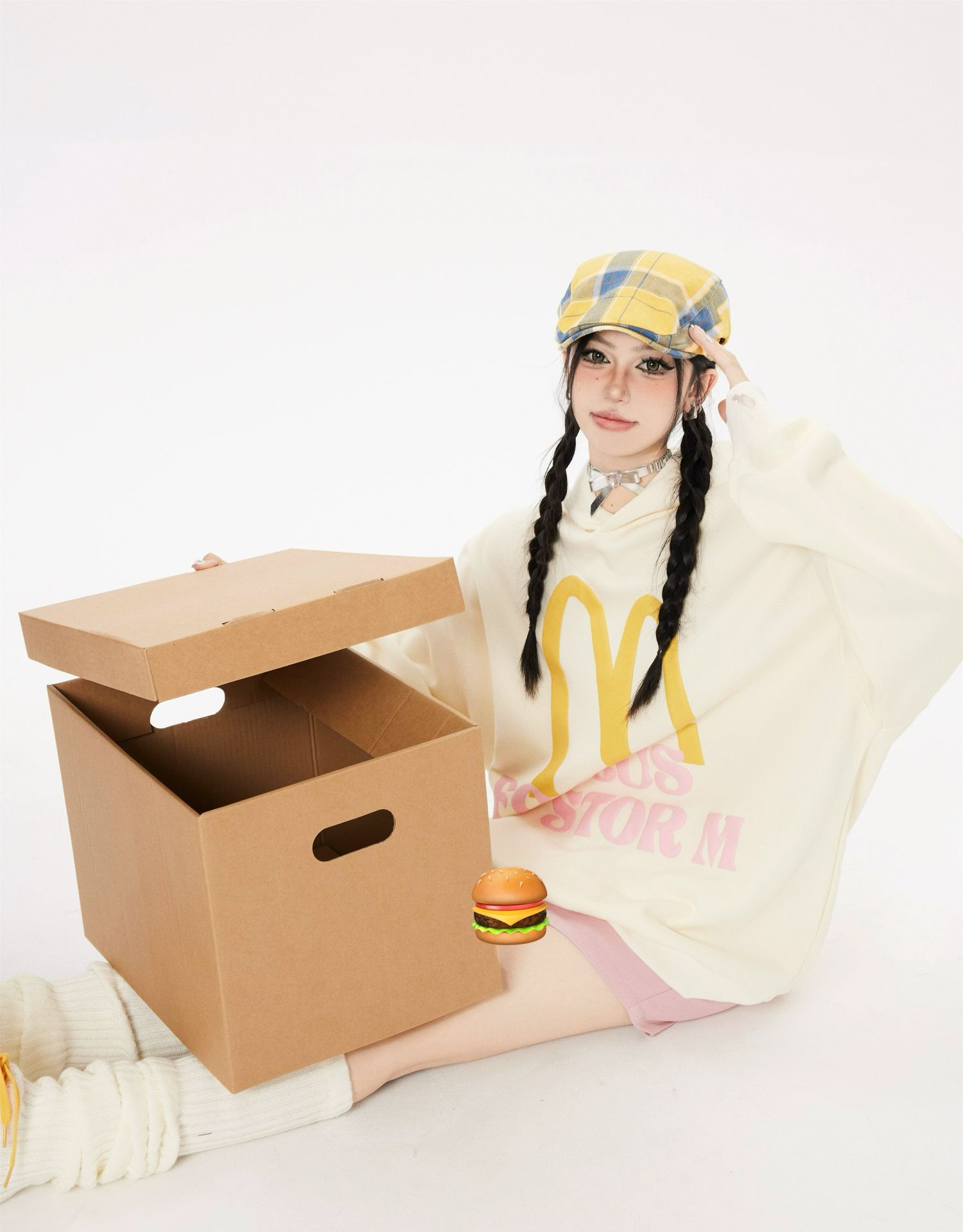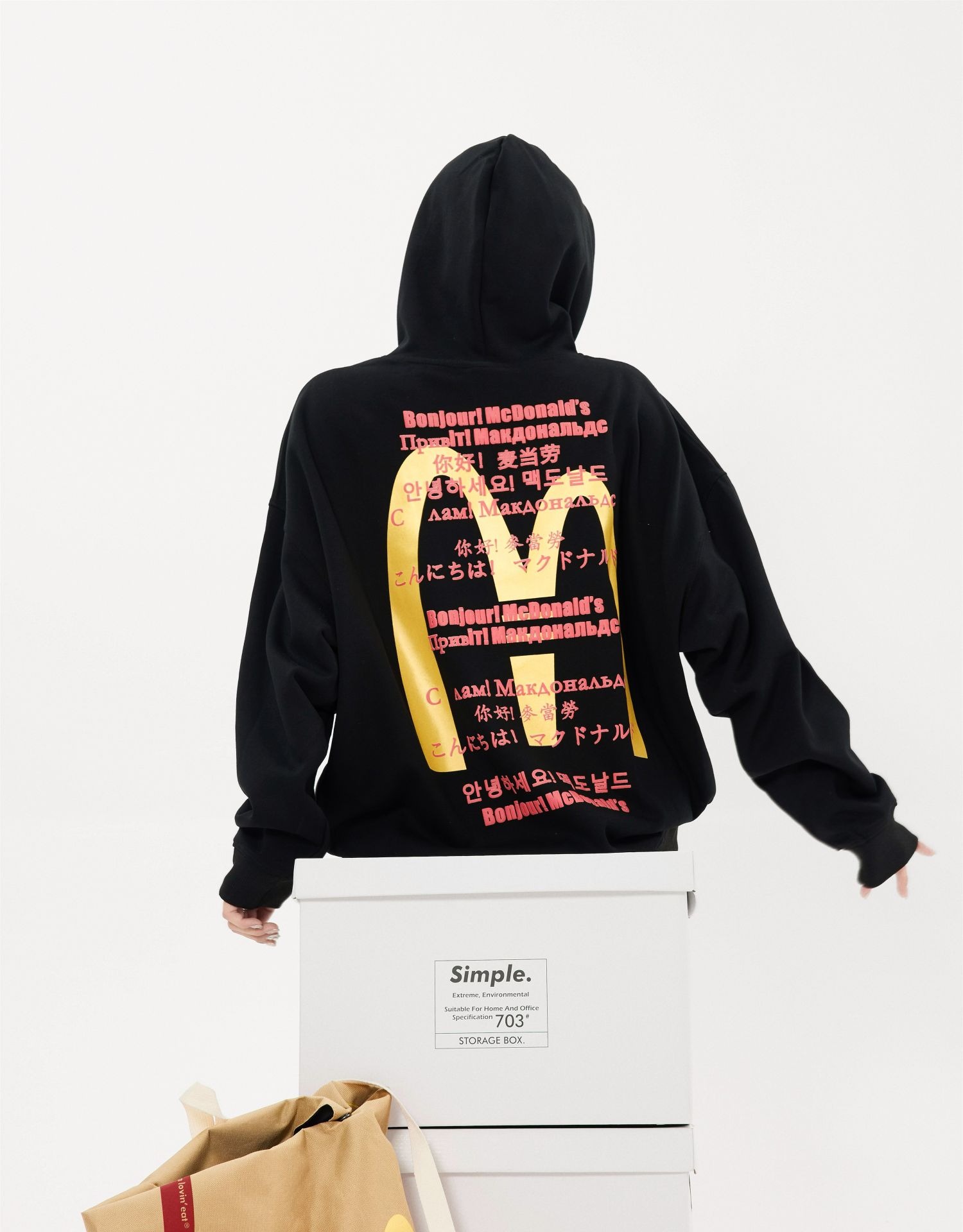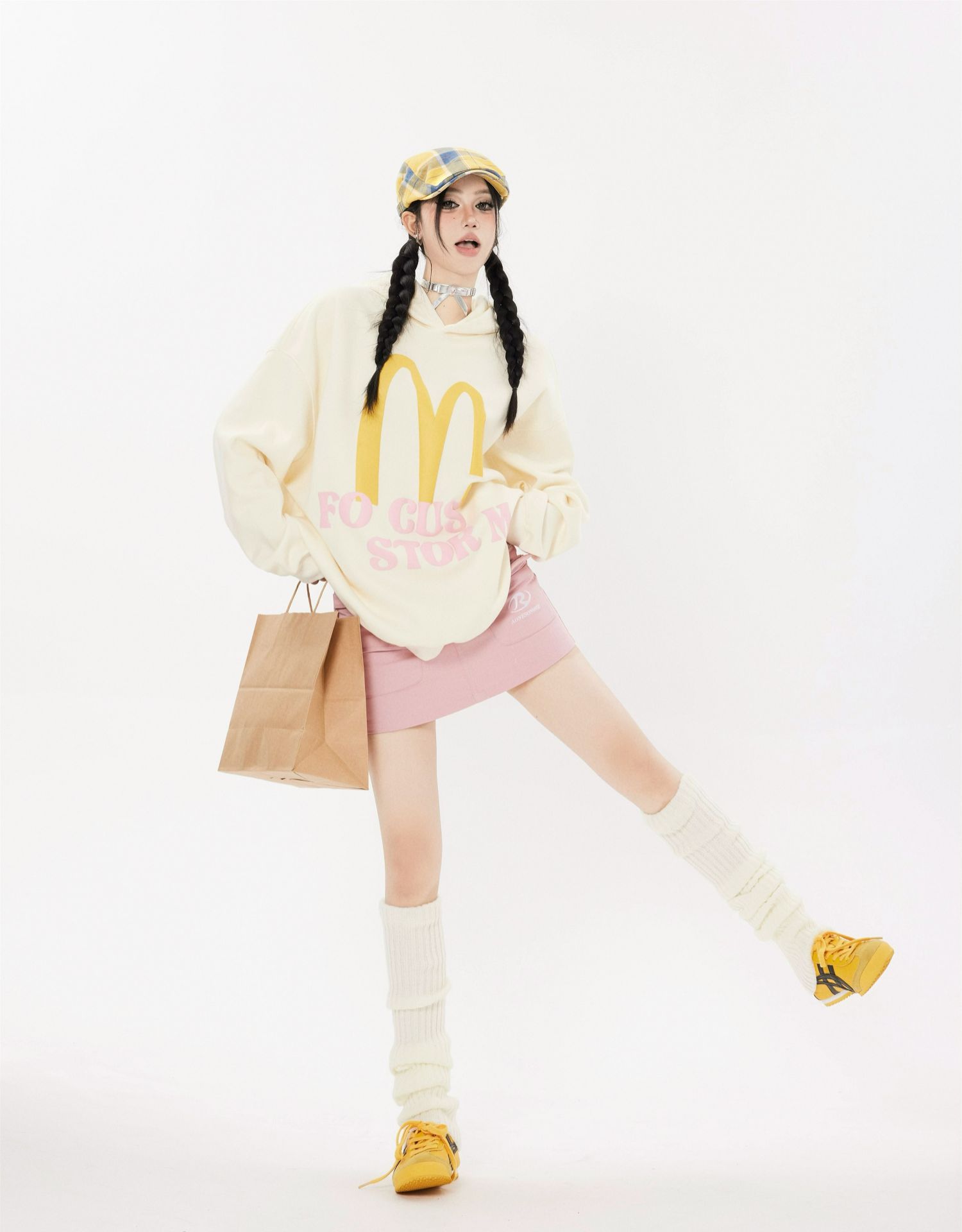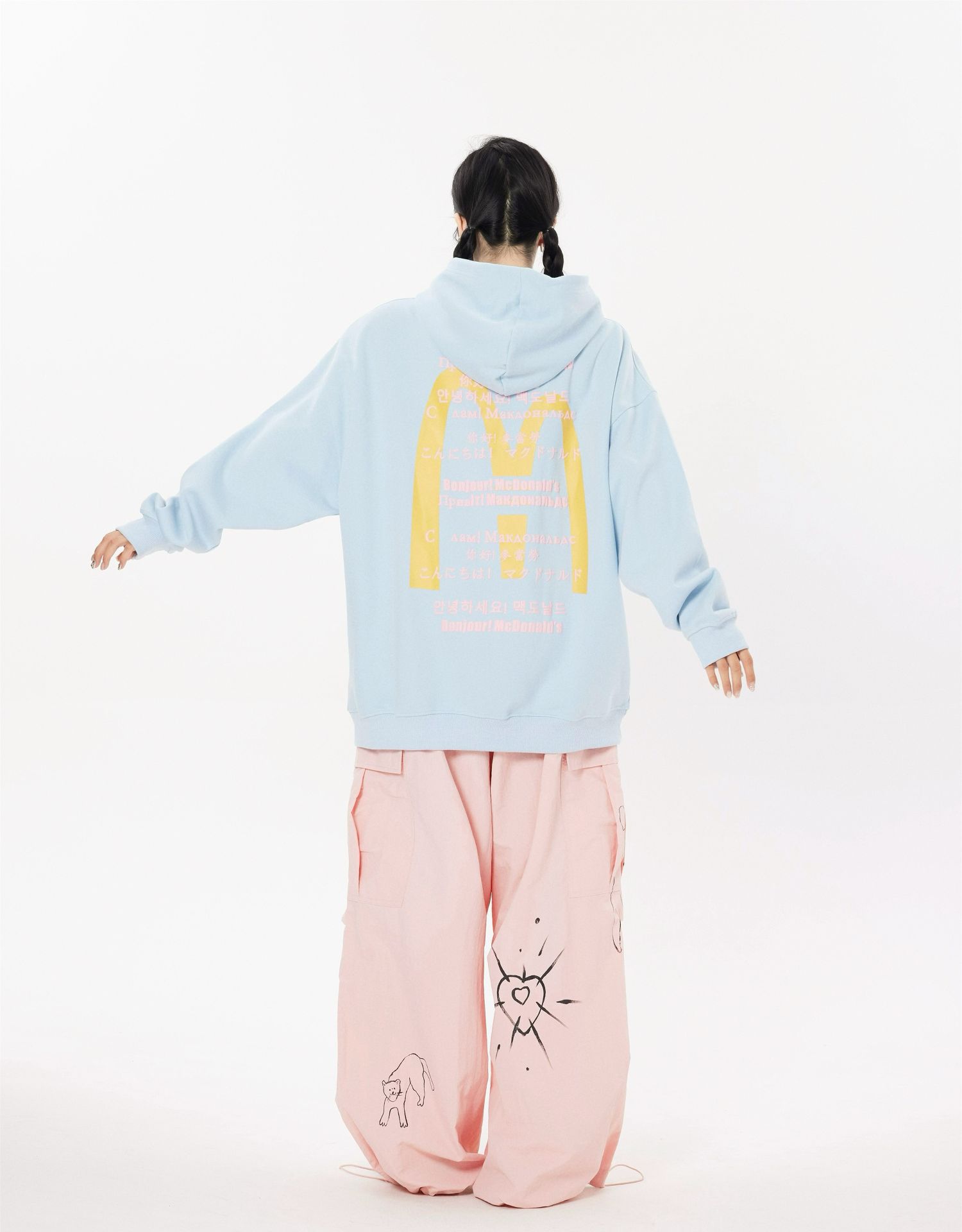 珍珍很懶 原創麥當勞M字母印花連帽運動衫男女春秋美式重磅寬鬆外套