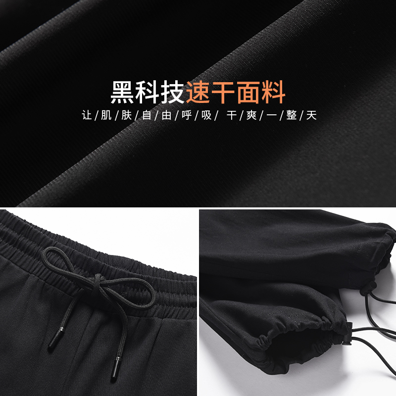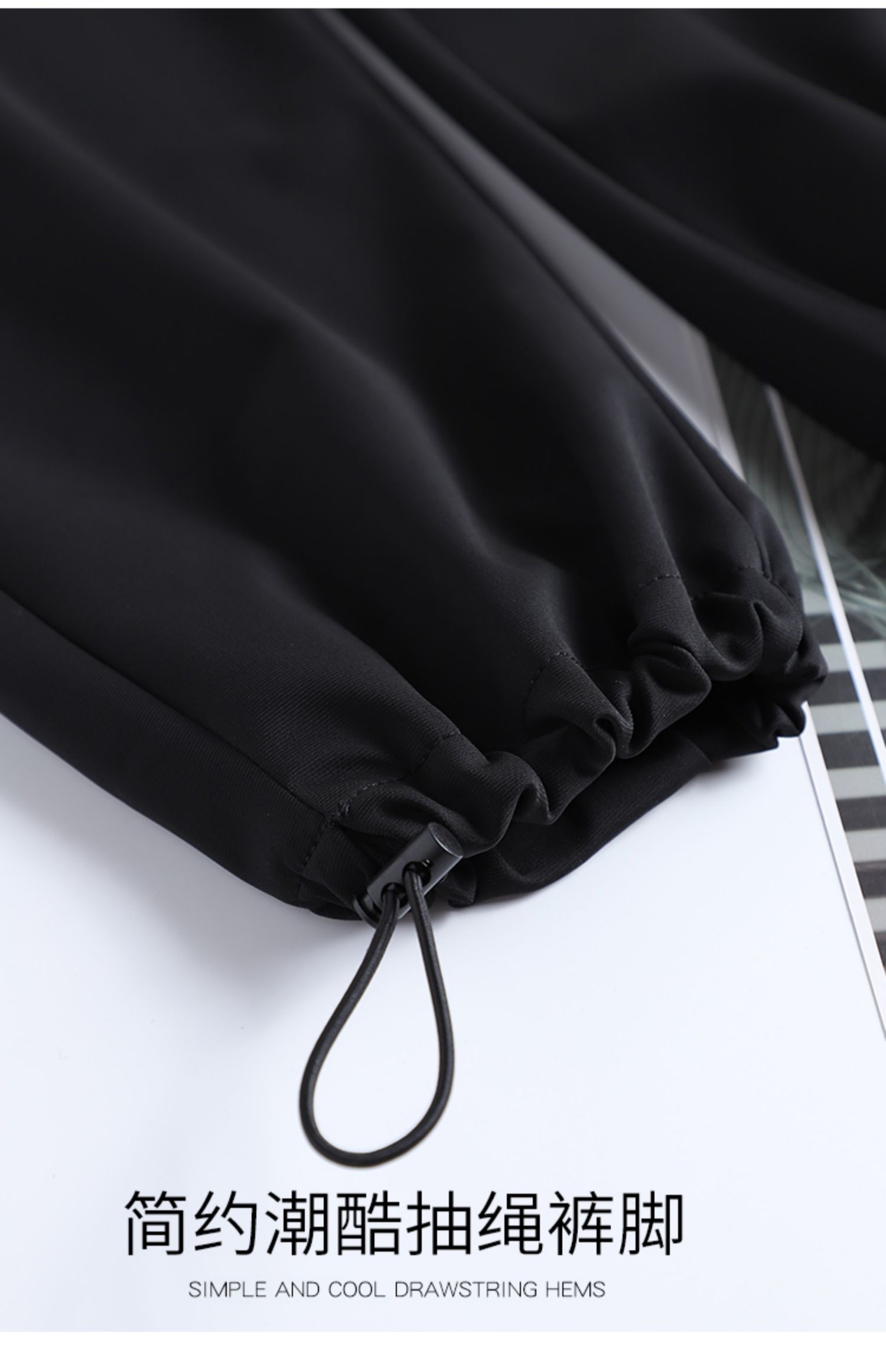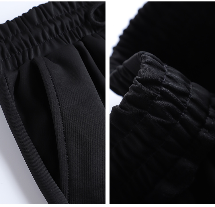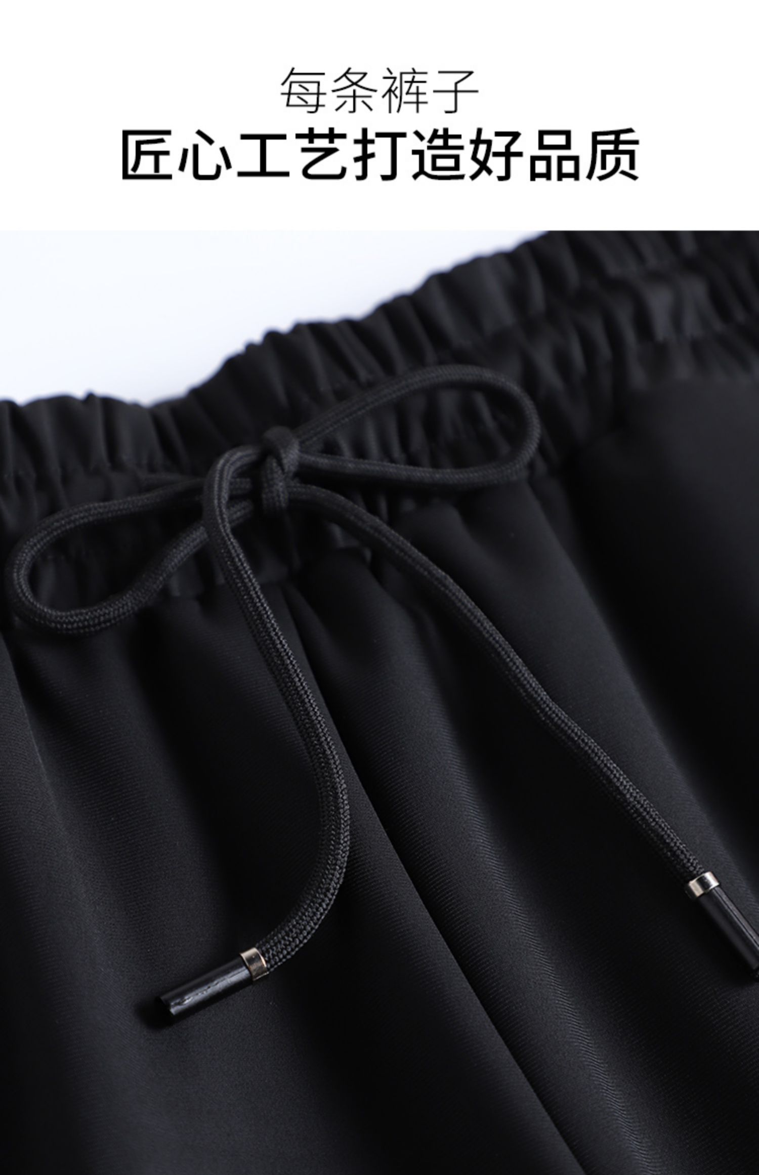 美式束腳工裝褲女春秋2023新款抽繩高腰寬鬆顯瘦黑色加長休閒直筒