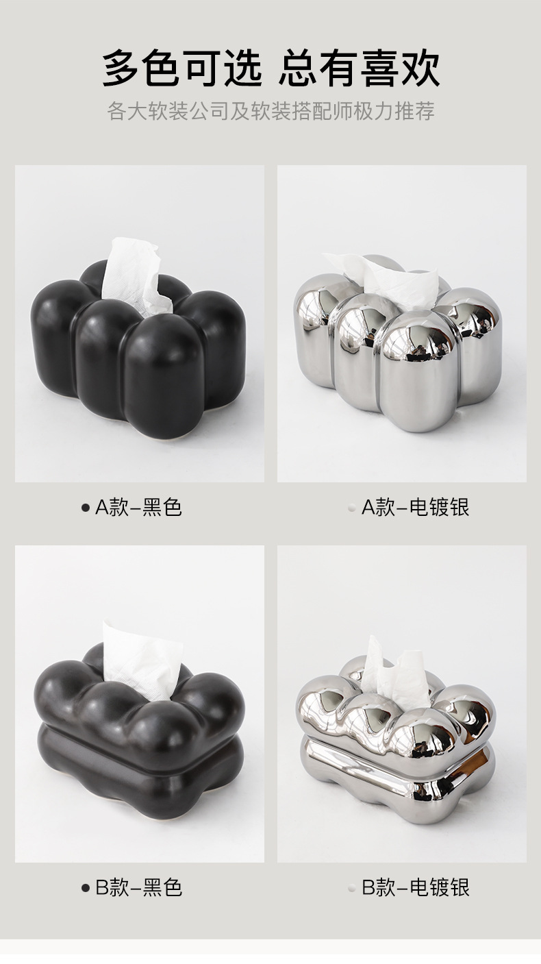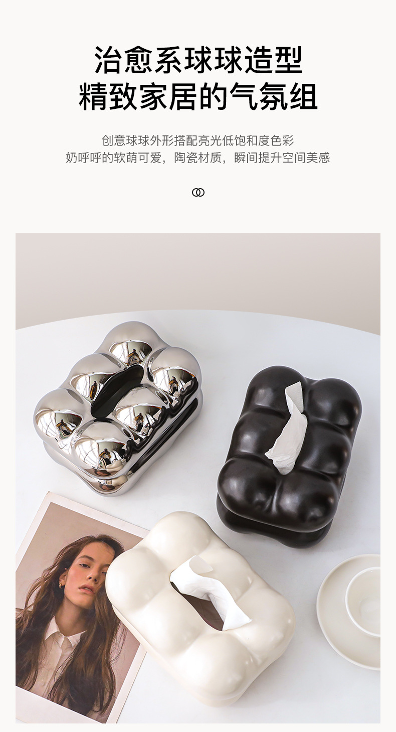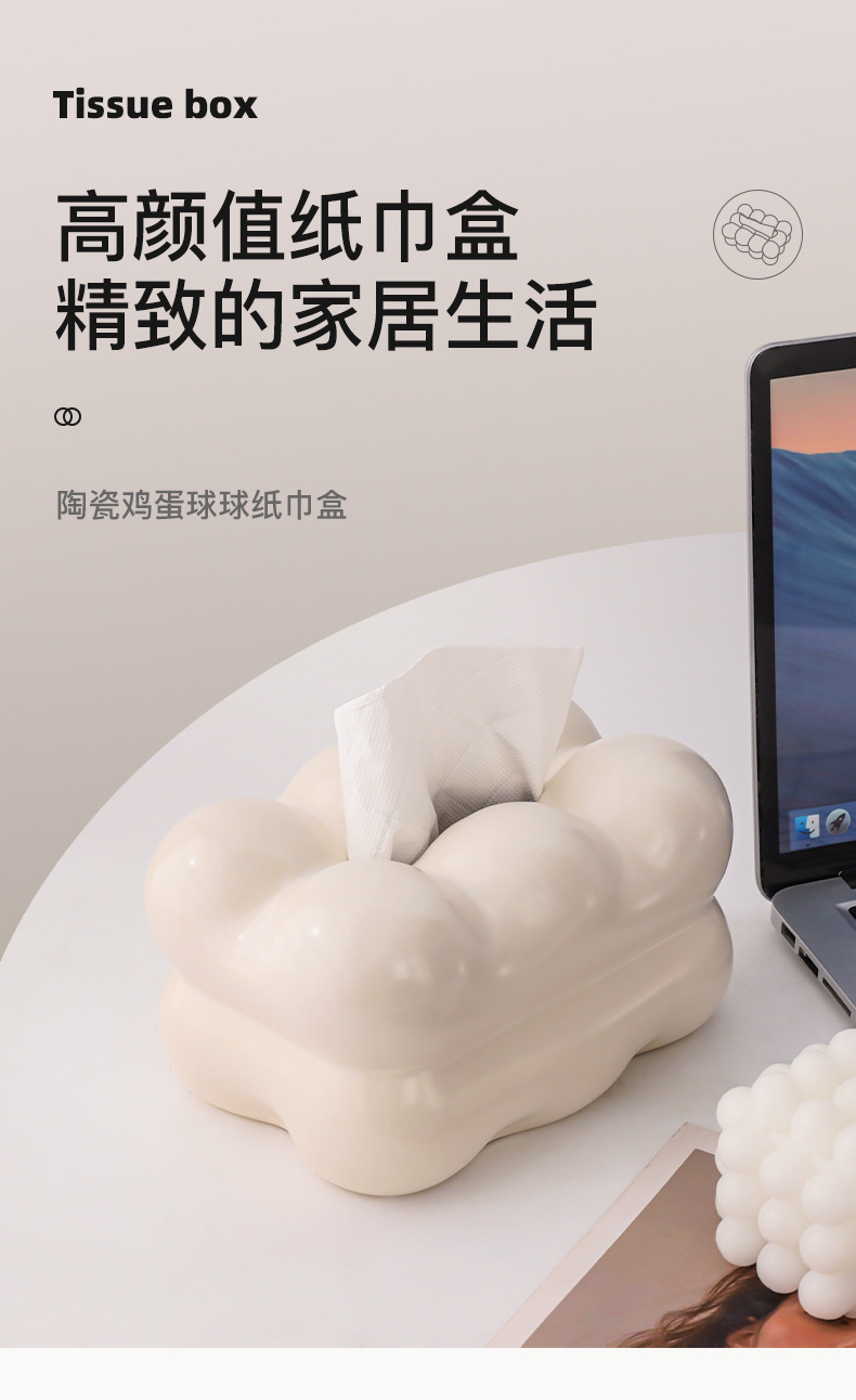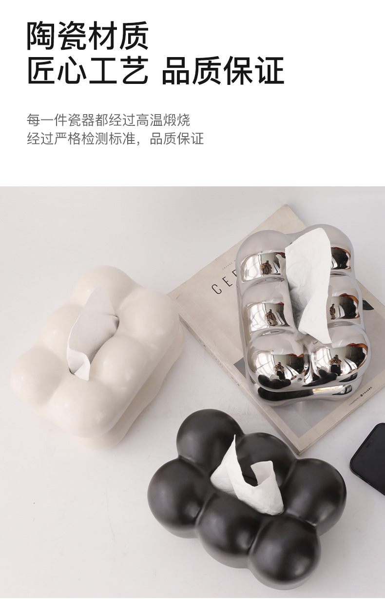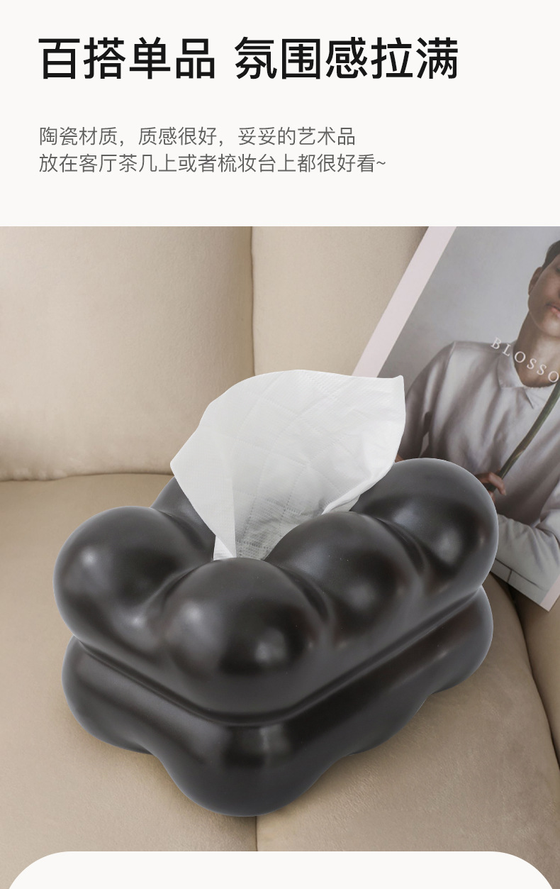 北欧创意陶瓷棉花糖纸巾盒客厅床头纸巾收纳盒小众设计纸抽盒摆件