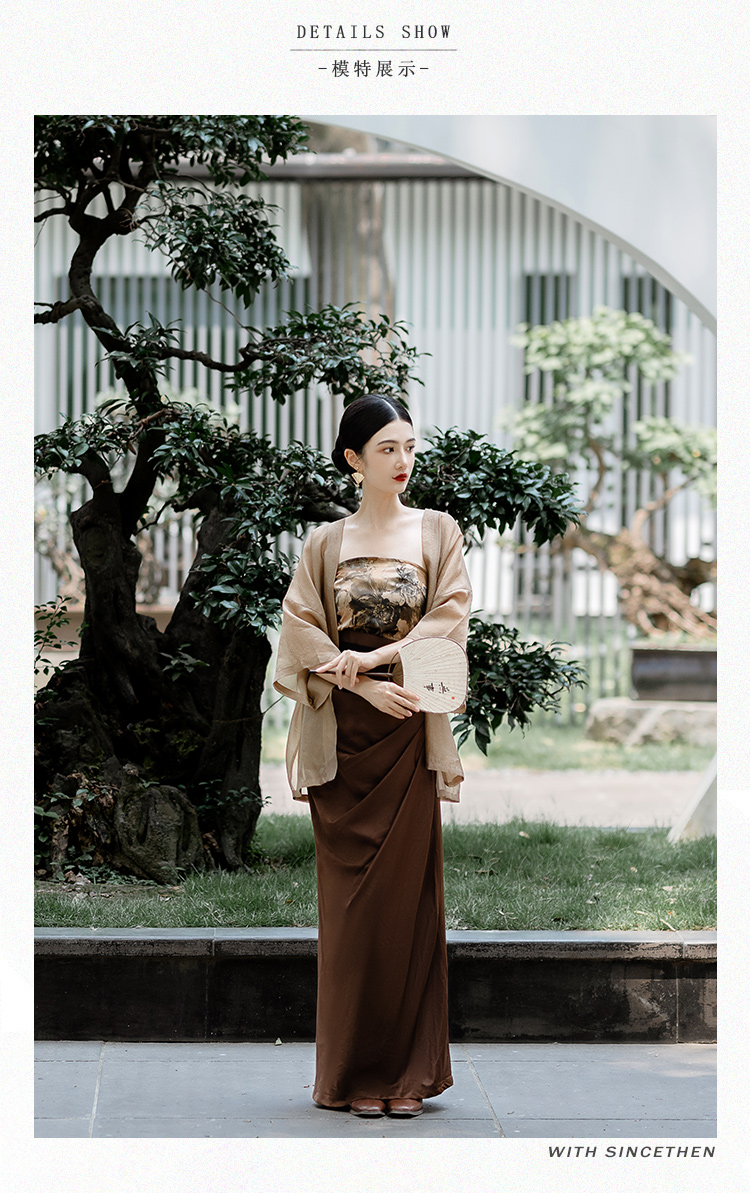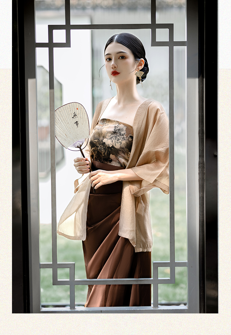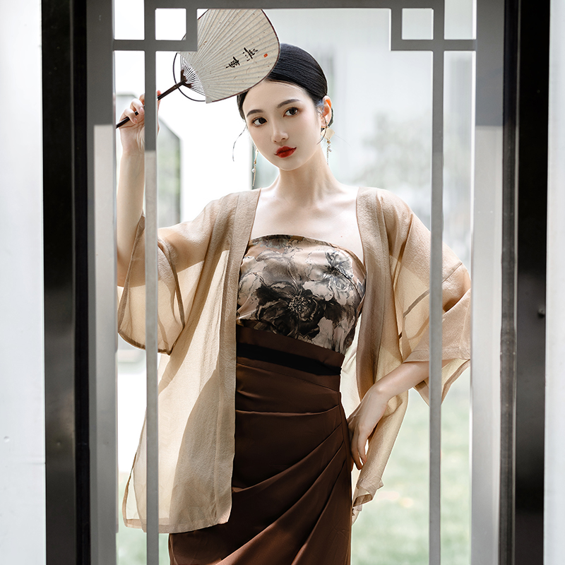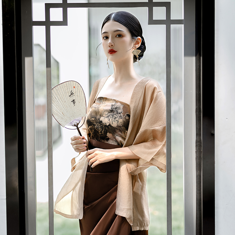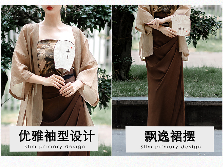 國風新中式防曬開衫漢服套裝日常通勤背心宋制長旋裙漢元素洋裝
