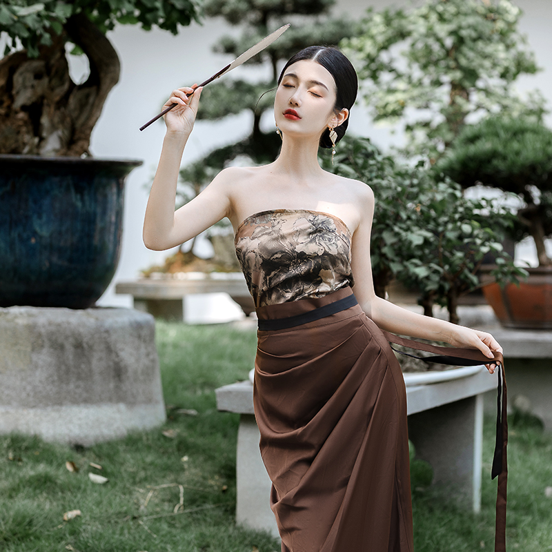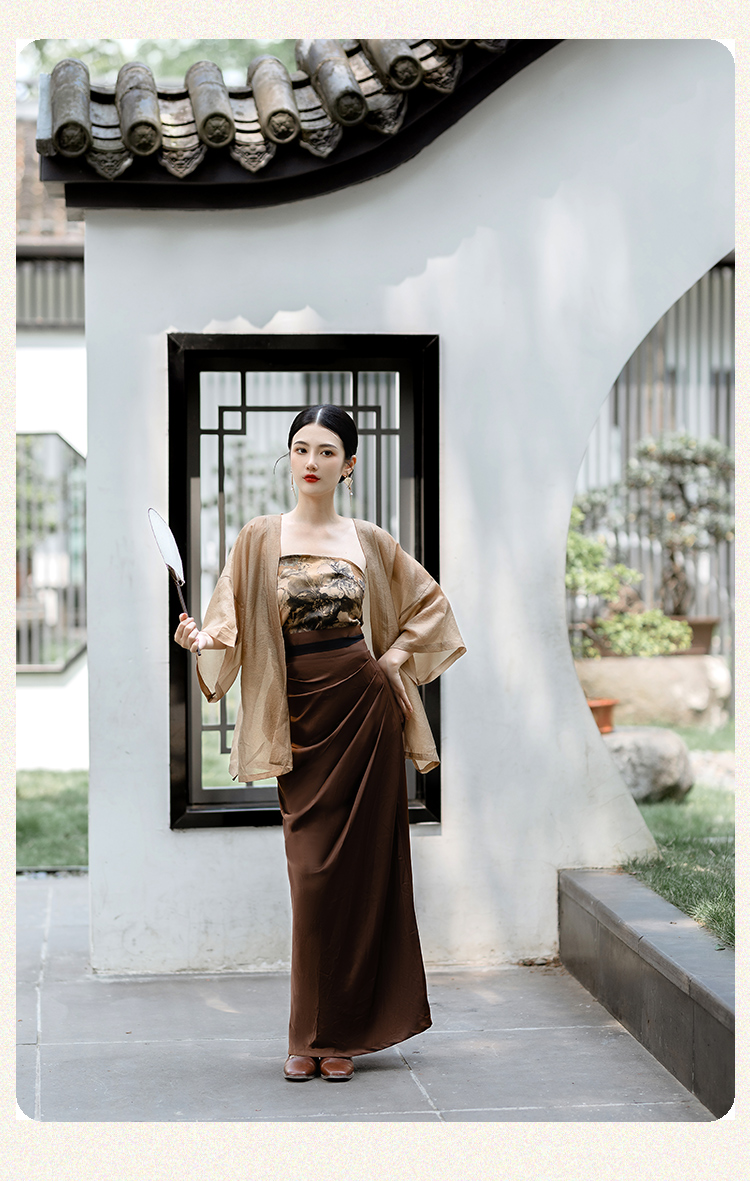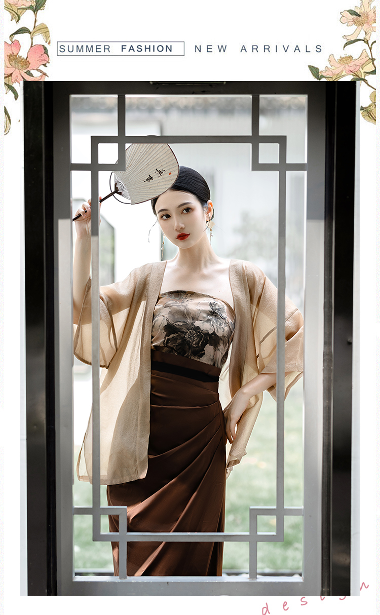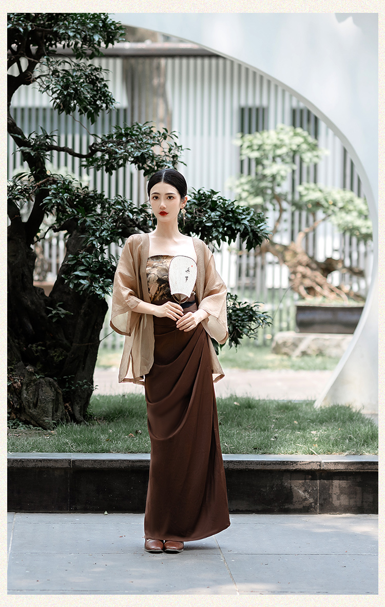 國風新中式防曬開衫漢服套裝日常通勤背心宋制長旋裙漢元素洋裝