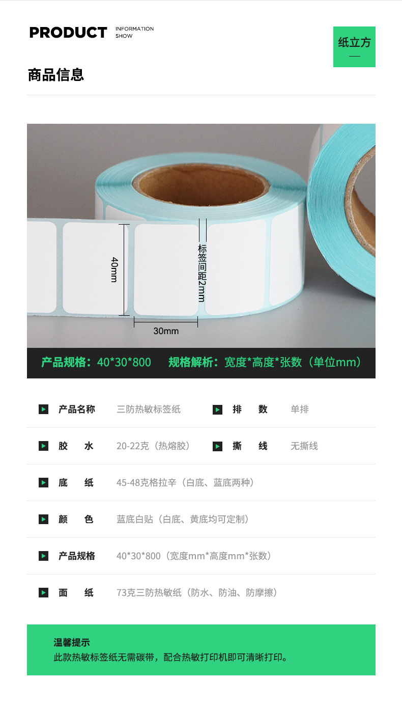 厂家批发三防热敏纸40*30*700热敏不干胶标签纸40x30x700打印贴纸