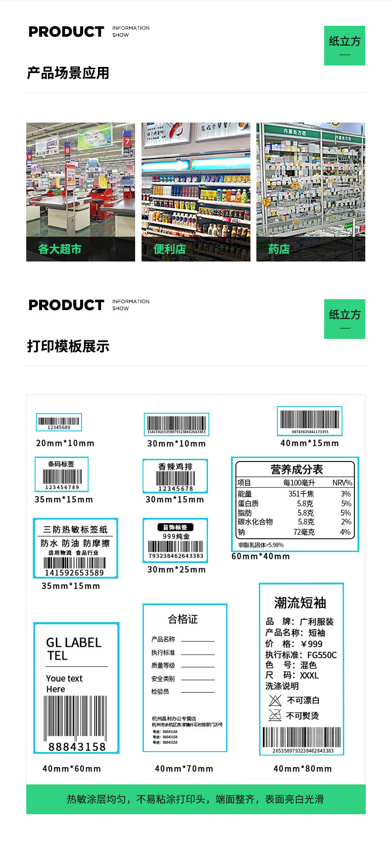材质 热敏纸不干胶