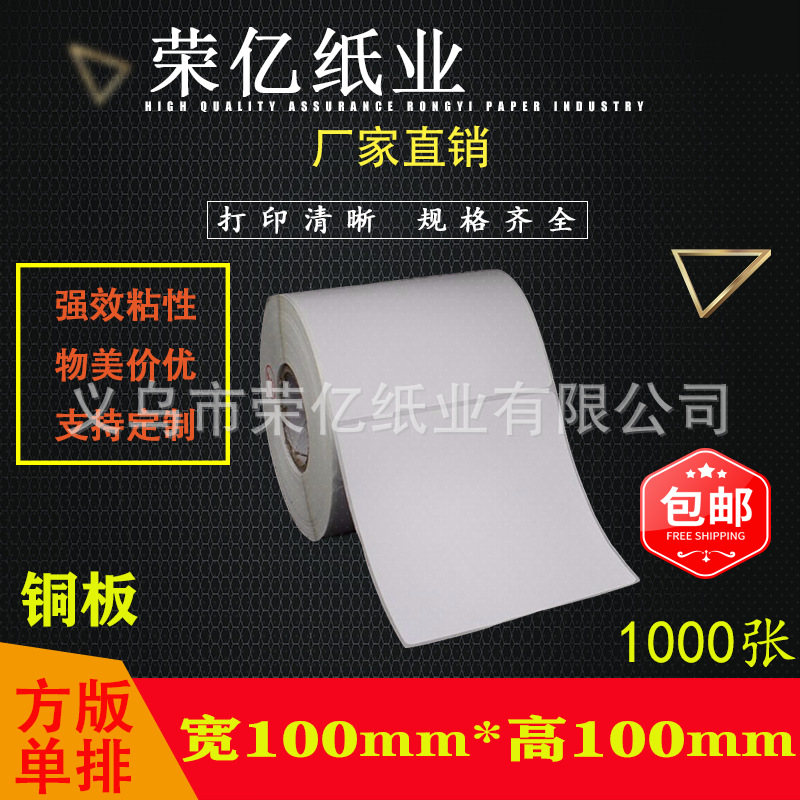 铜版纸不干胶标签打印纸 100*100*500张带撕裂线*1000张 足张包粘