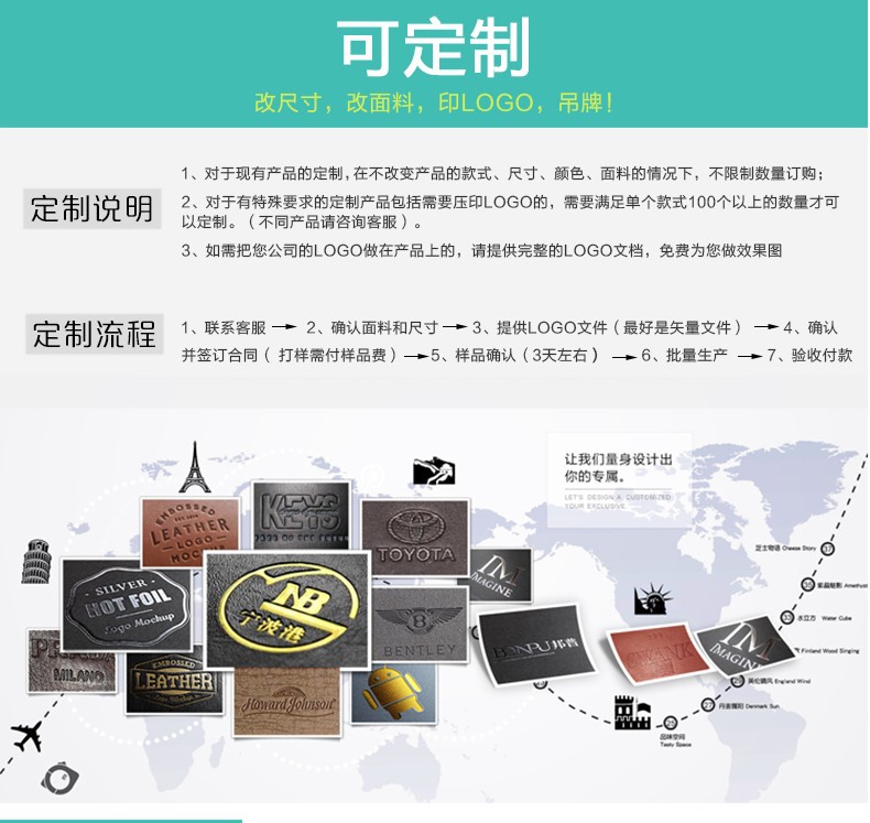 【定制说明】:酒店、家居、办公、礼品包装等皮艺产品都可以定制,打样一般2-7天,免费打样(下单后退还样板费),大货一般15天,特殊情况可以提前或延后。