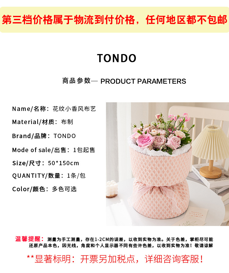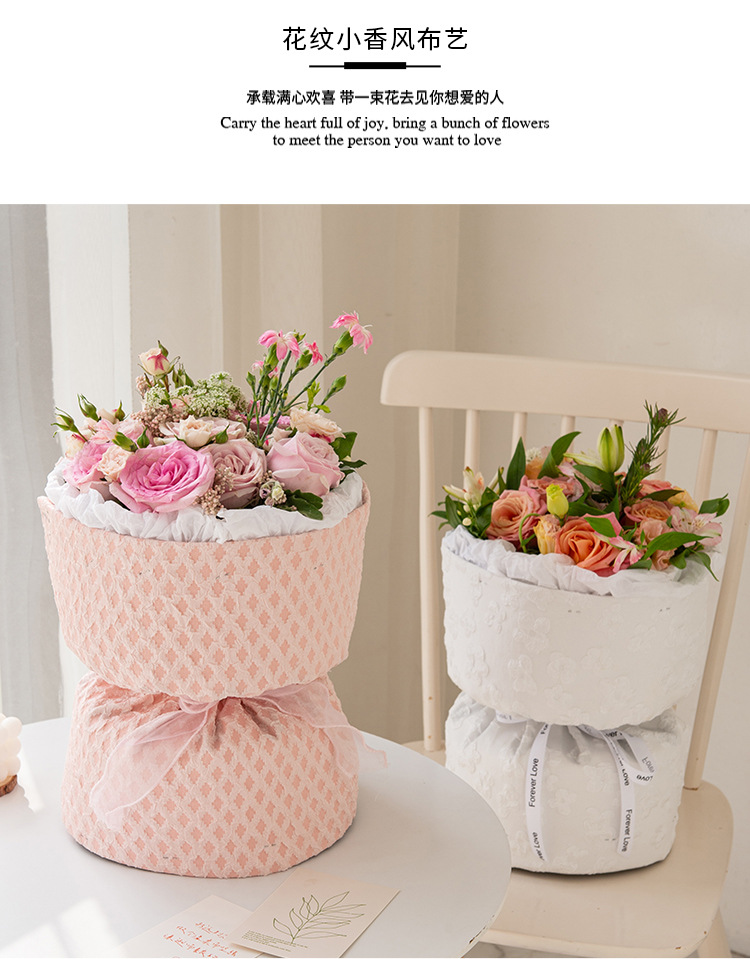 唐德 情人节布艺刺绣花纹小香风包装材料订婚花束包装材料