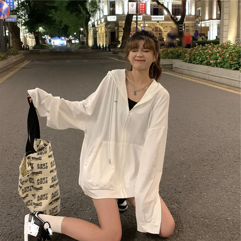 冰絲防曬衣女款2023新款夏季薄款運動連帽外套小個子白色開衫上衣