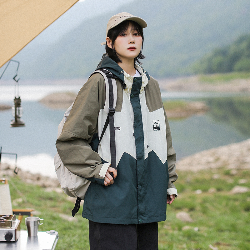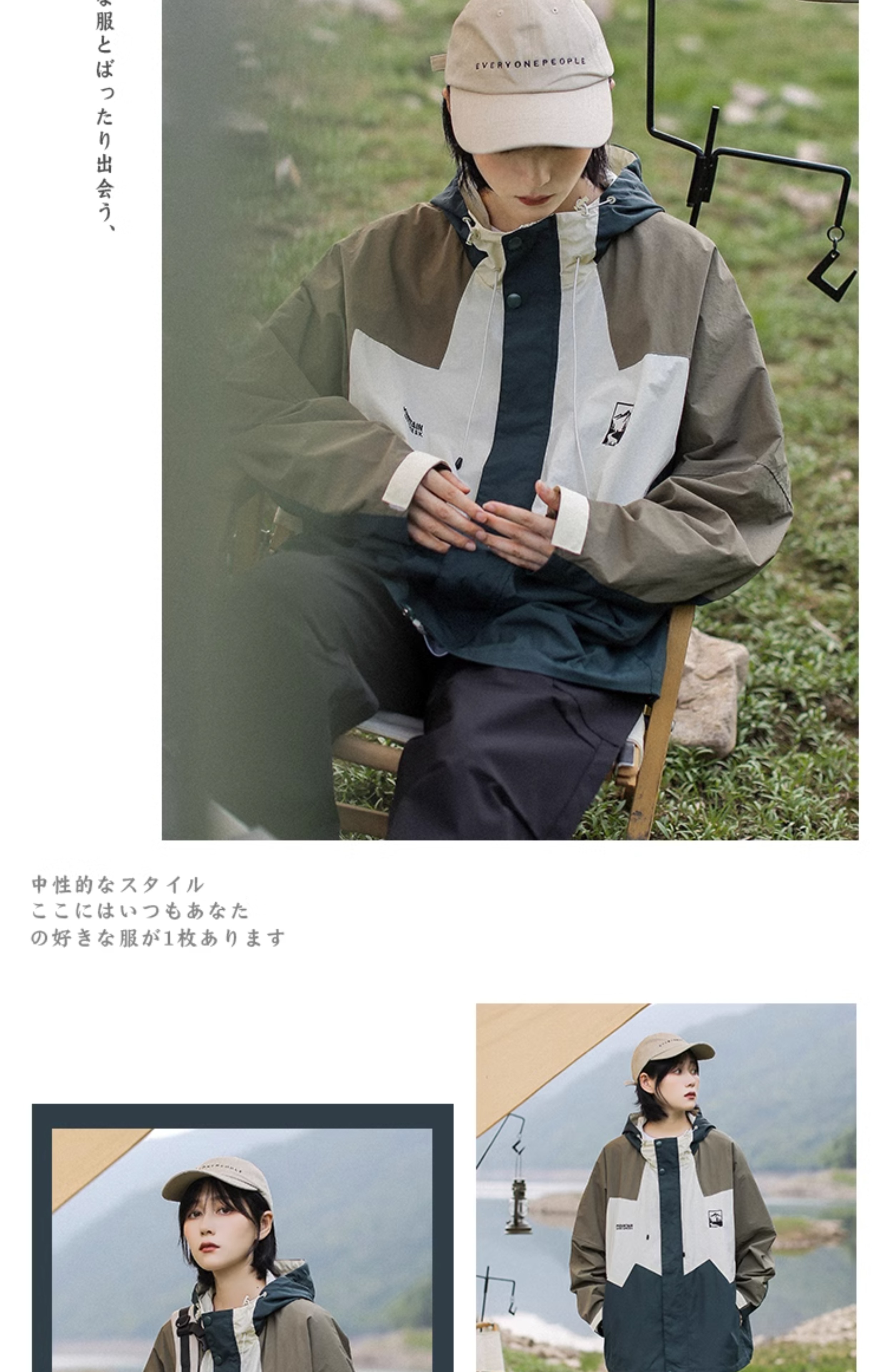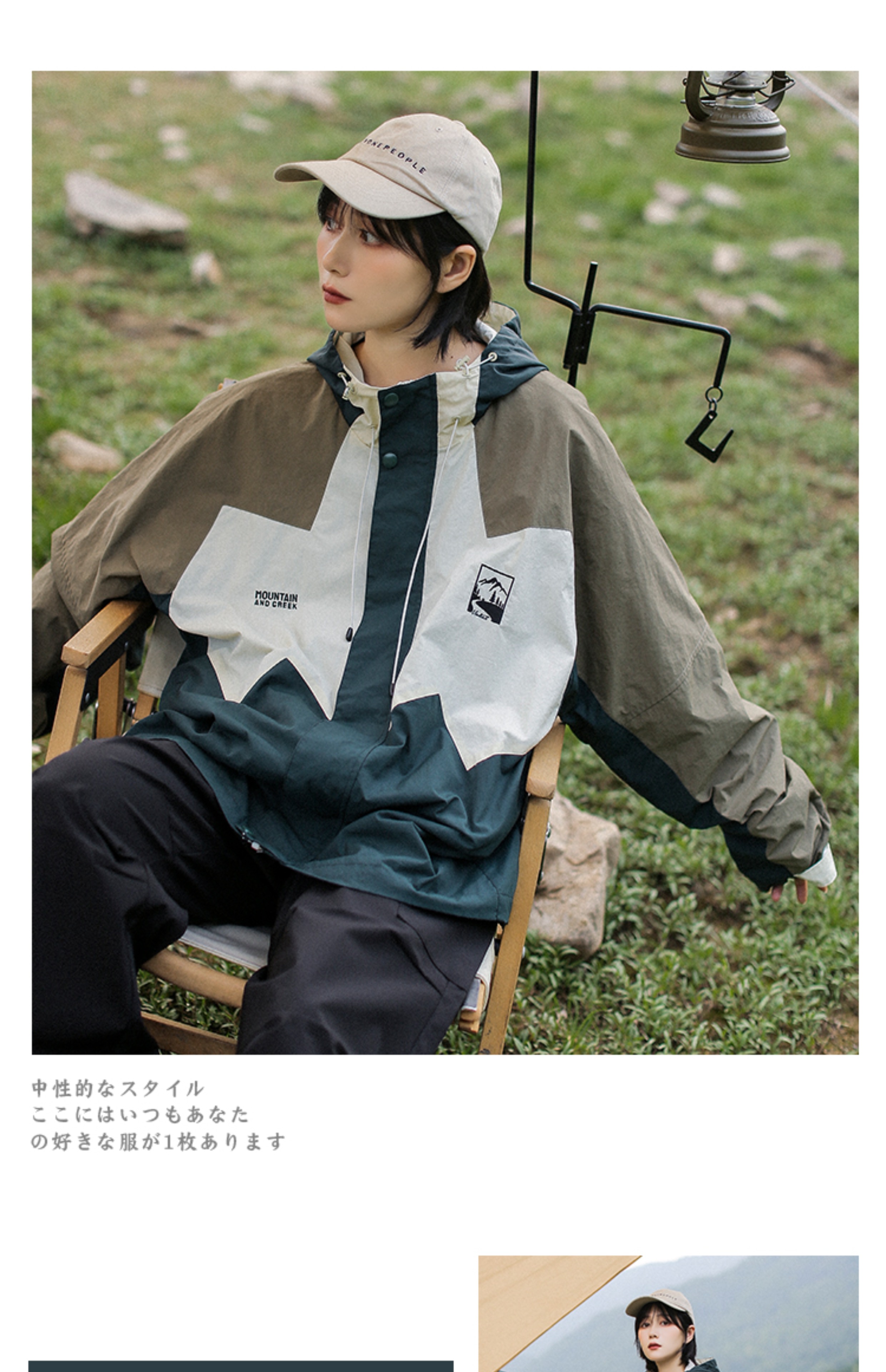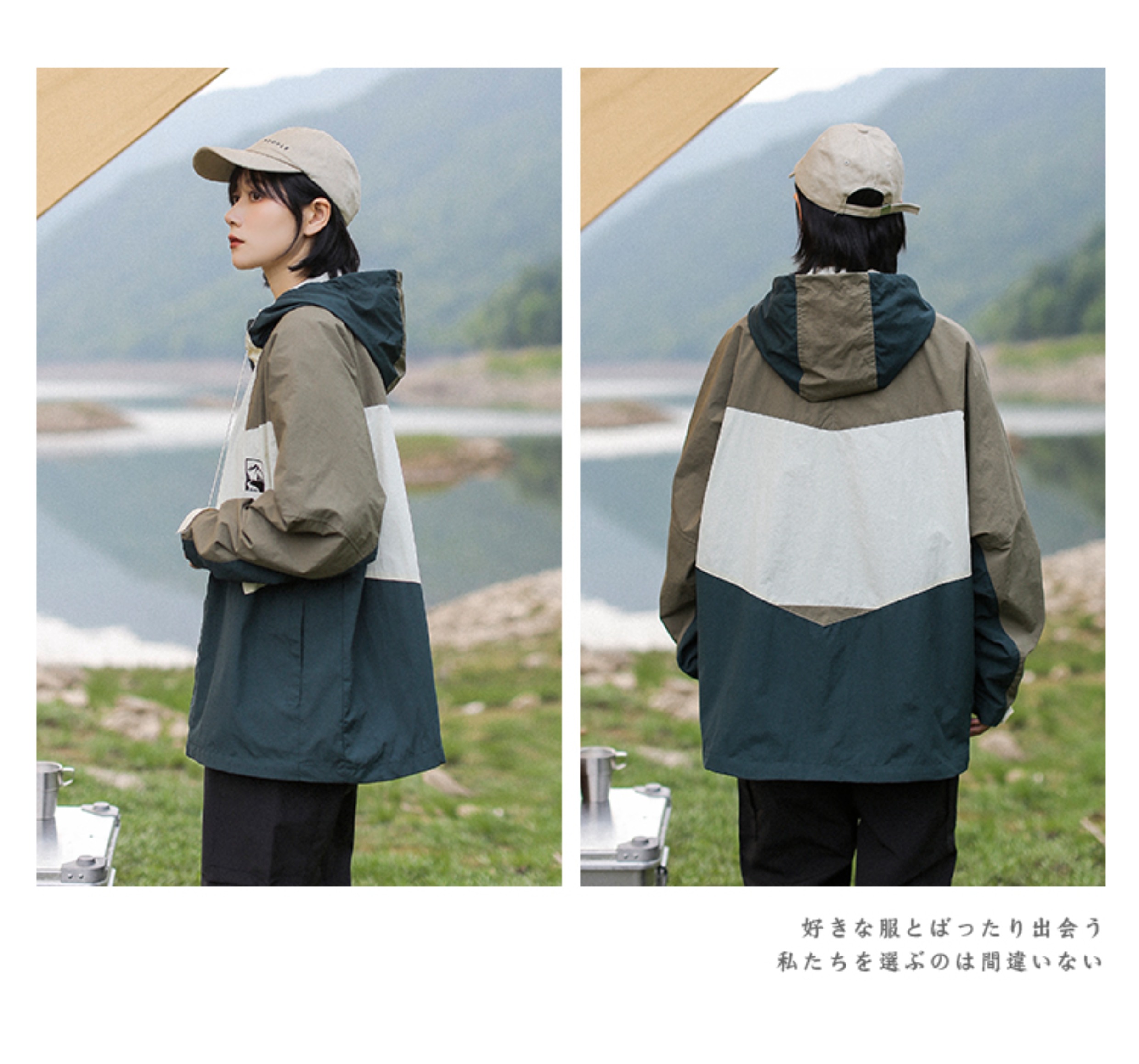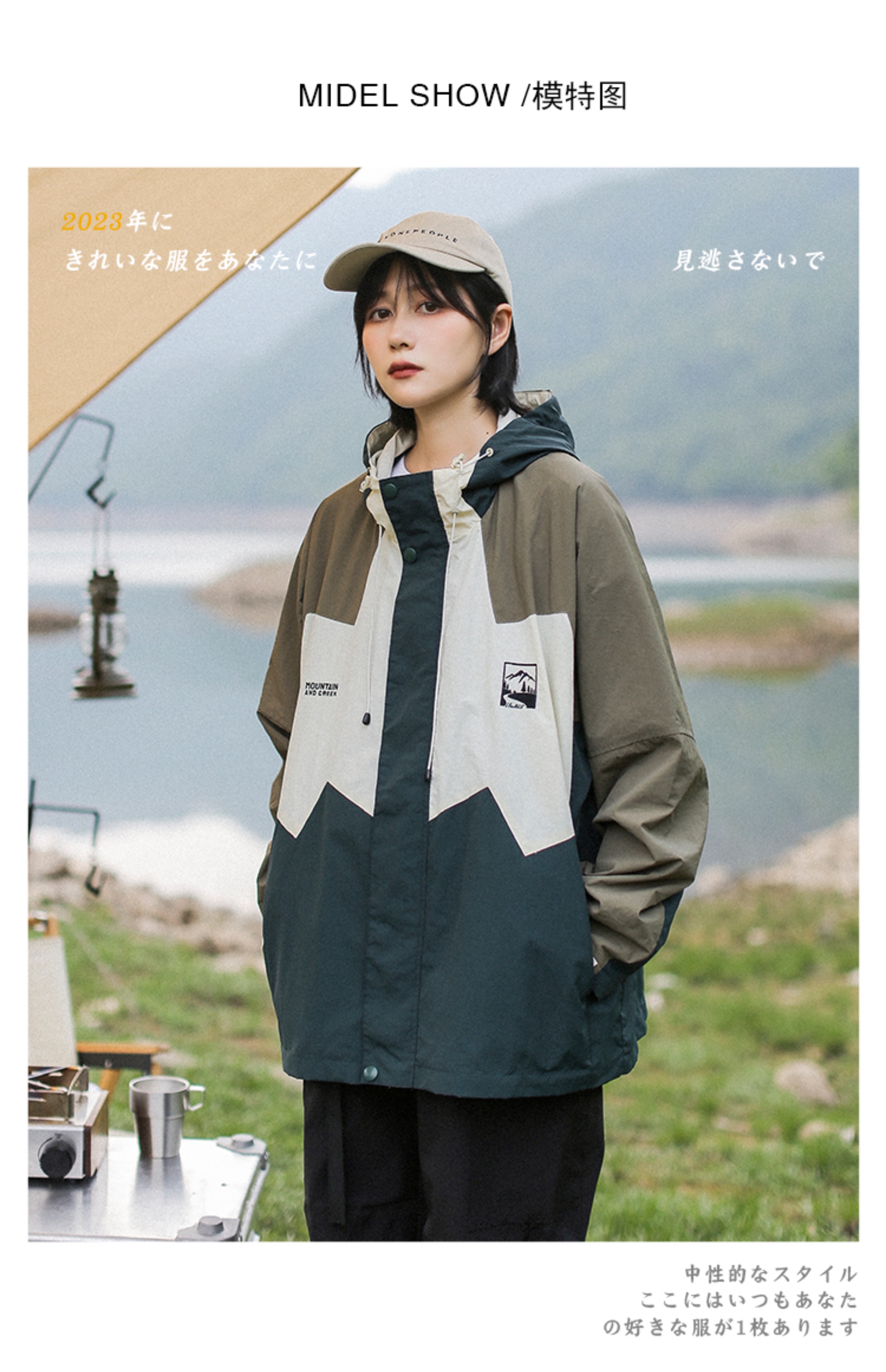 漫渡戶外撞色機能風衝鋒衣女春秋情侶防風單層拼色設計感外套男