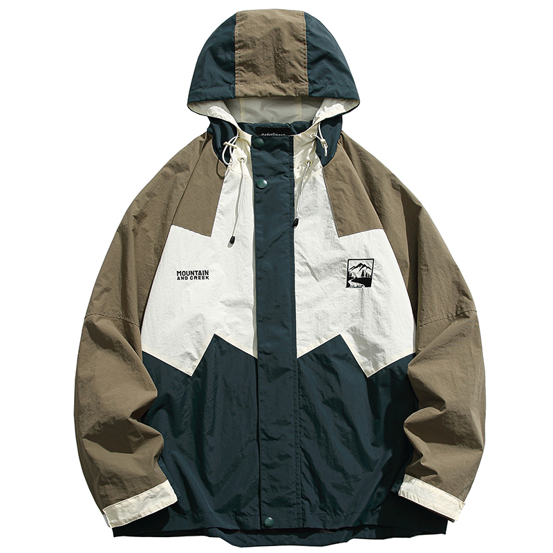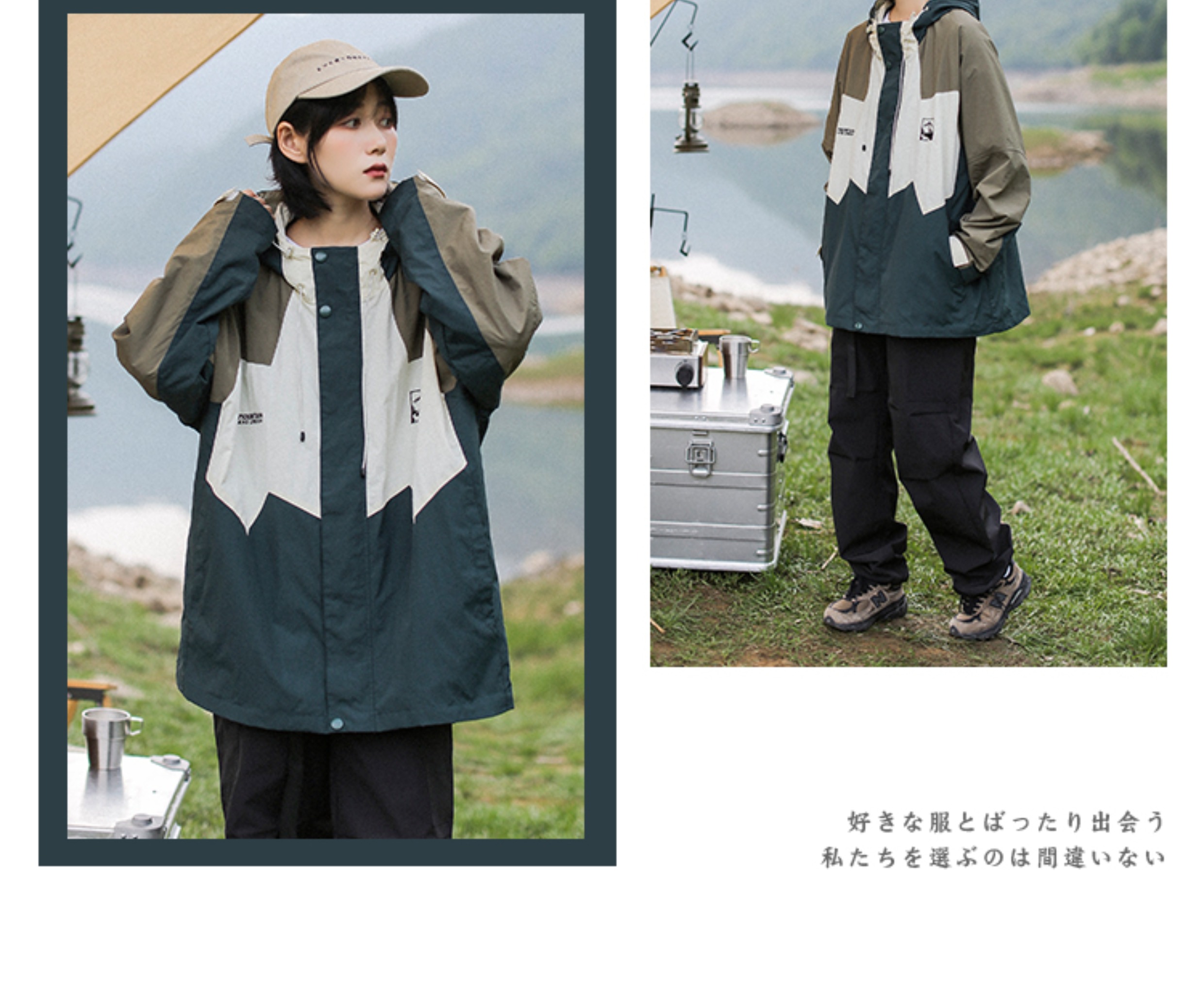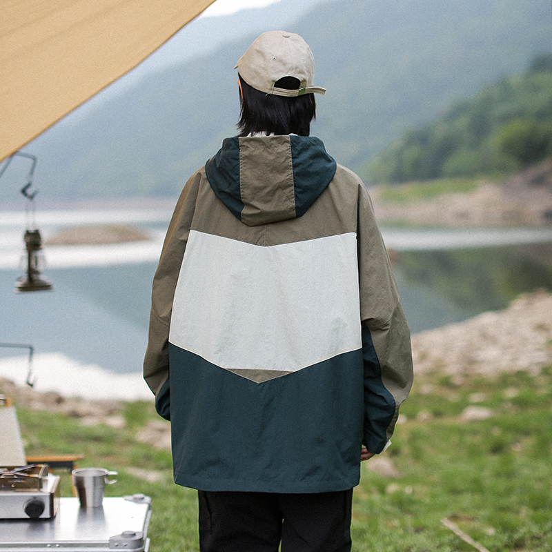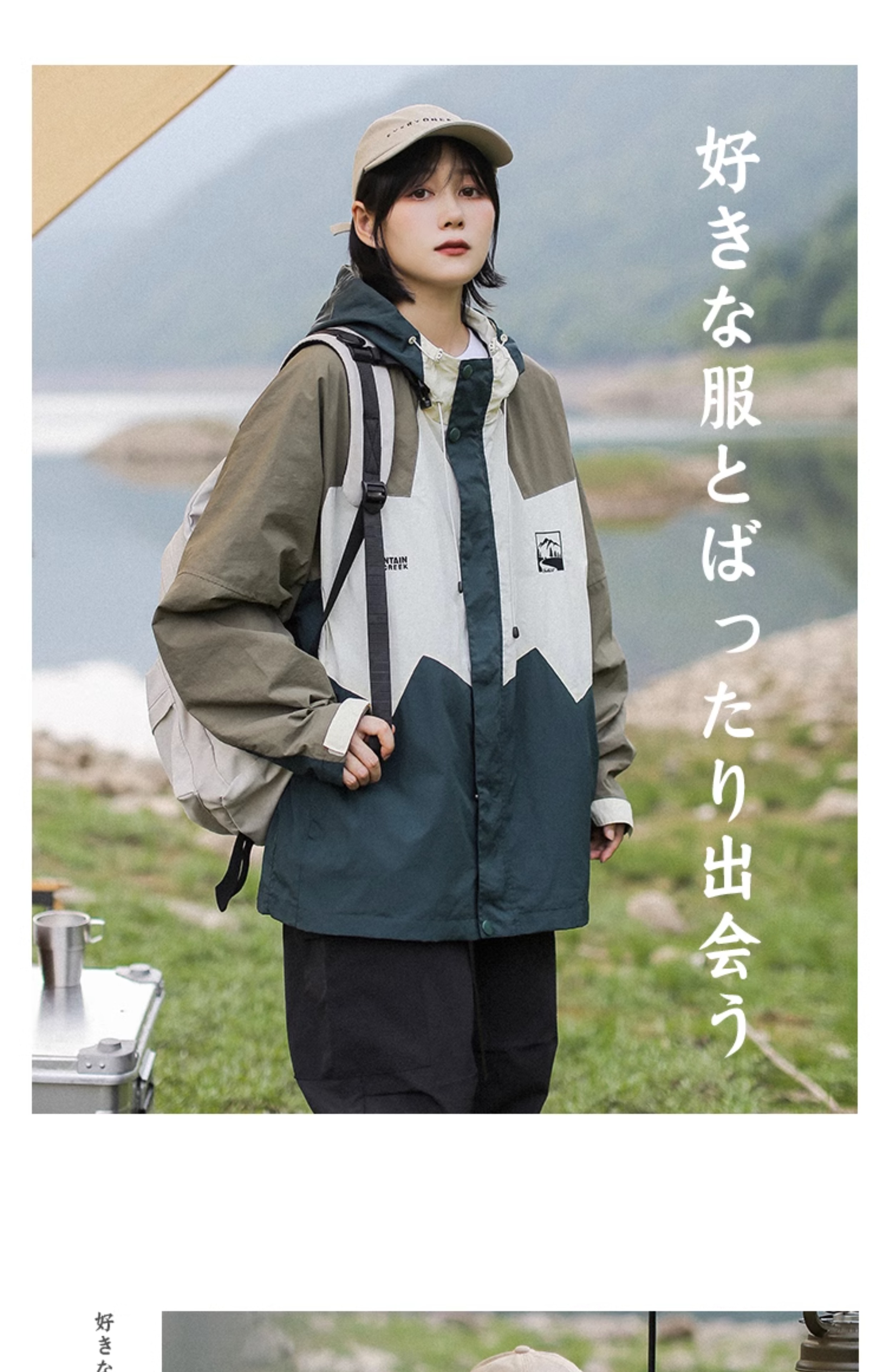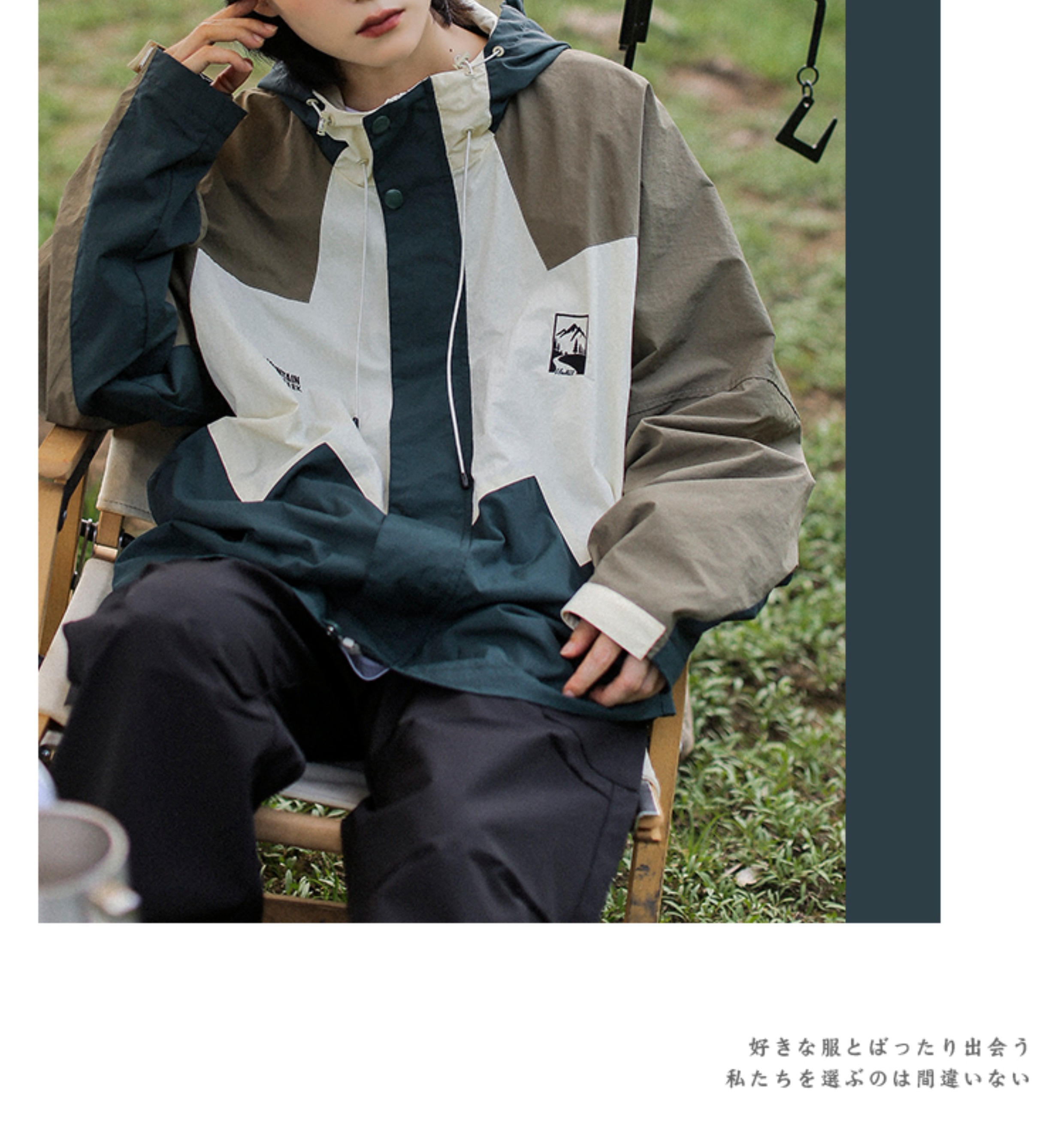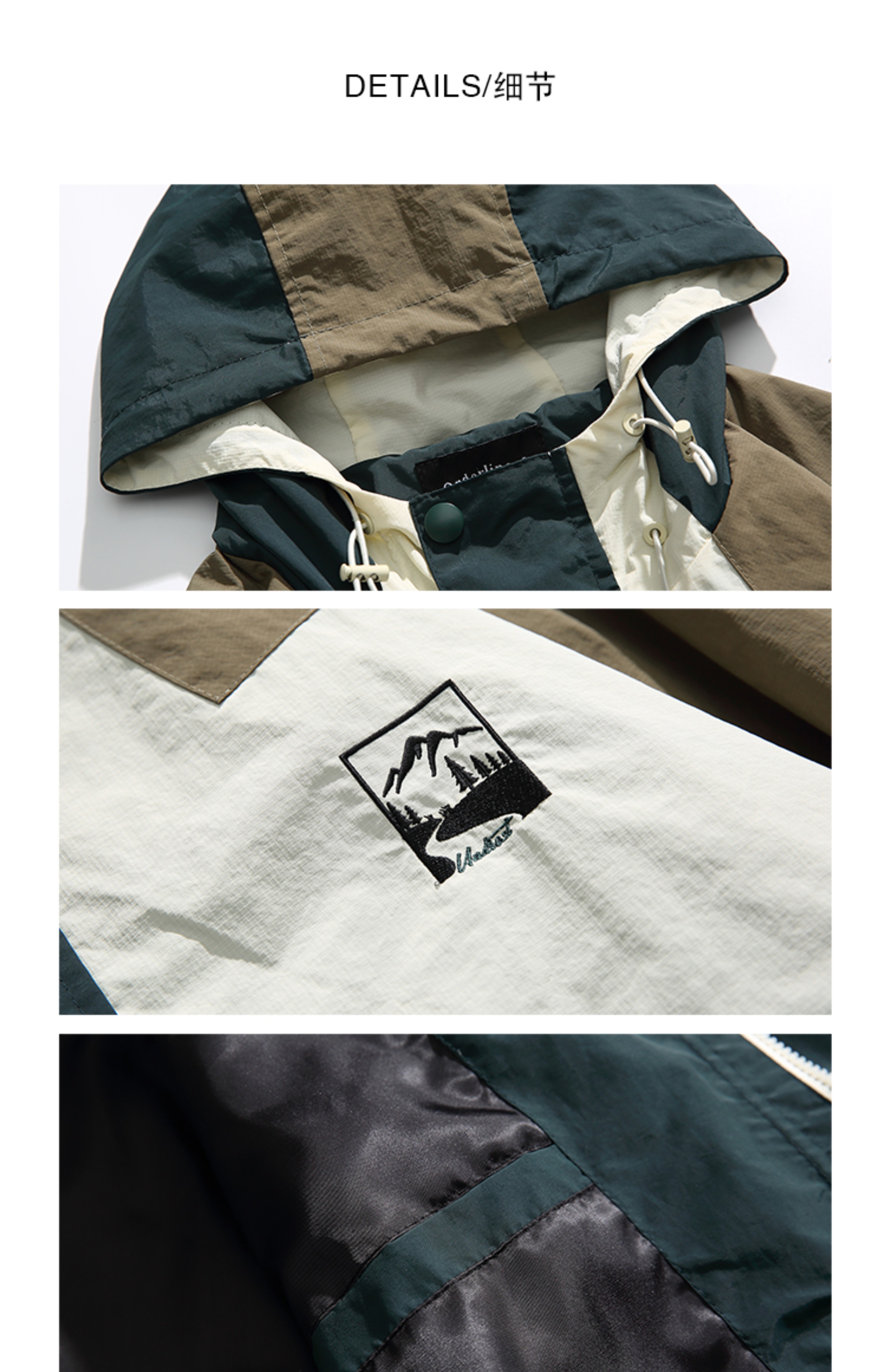漫渡戶外撞色機能風衝鋒衣女春秋情侶防風單層拼色設計感外套男