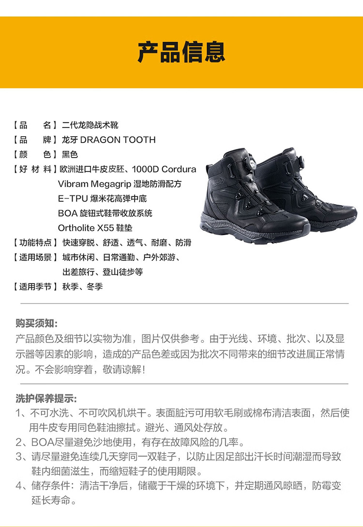 龍牙二代龍隱戰術靴中筒戶外登山徒步靴作戰訓練工裝戶外特戰鞋男