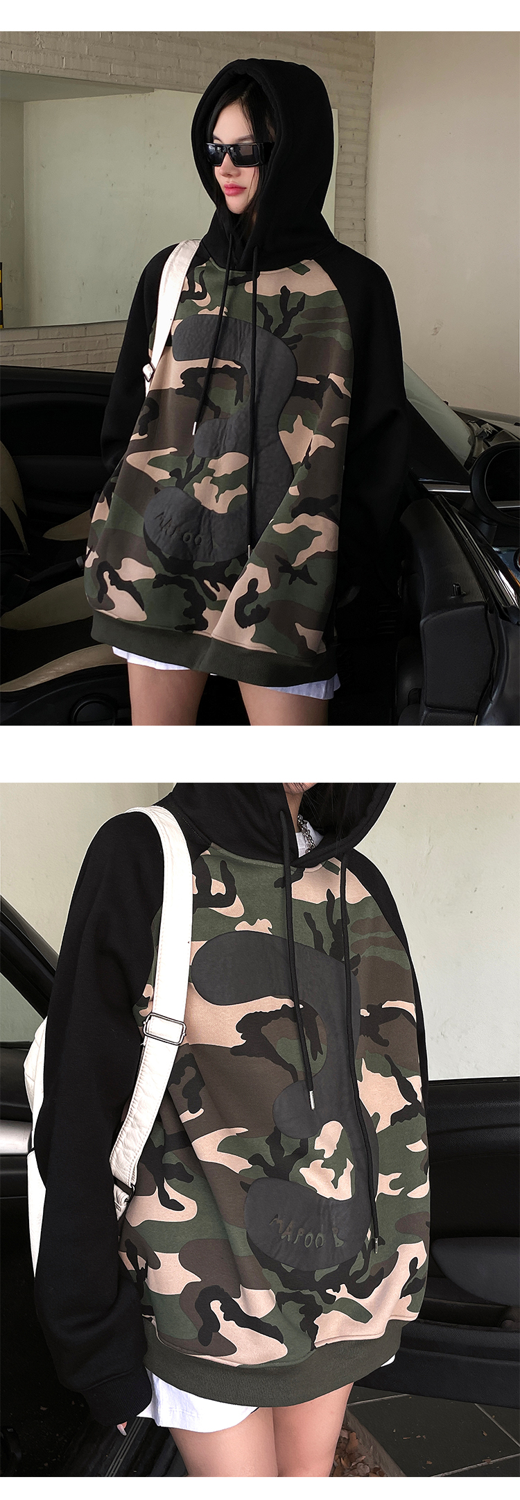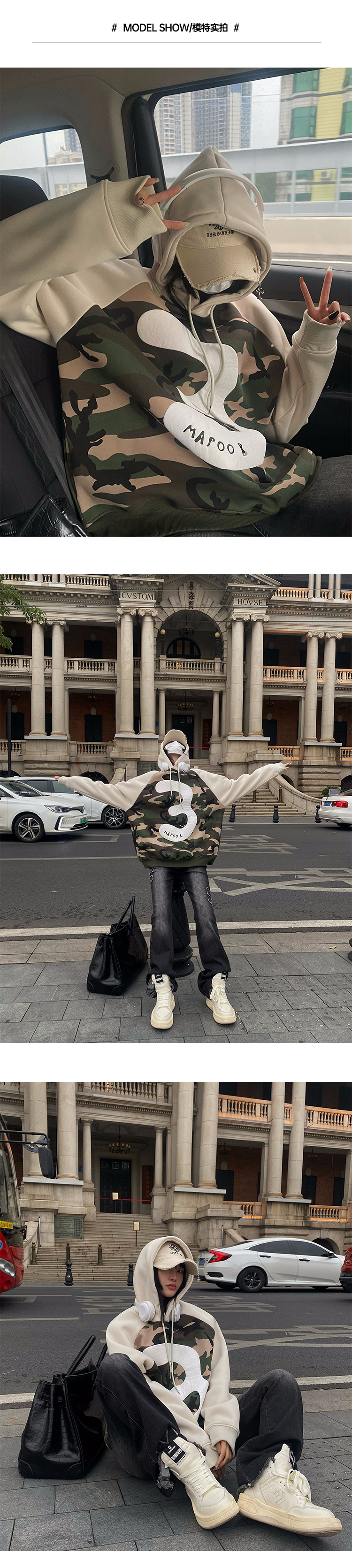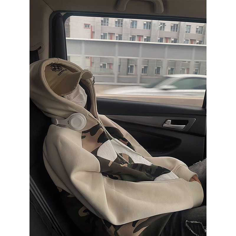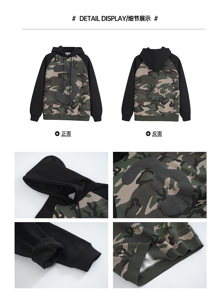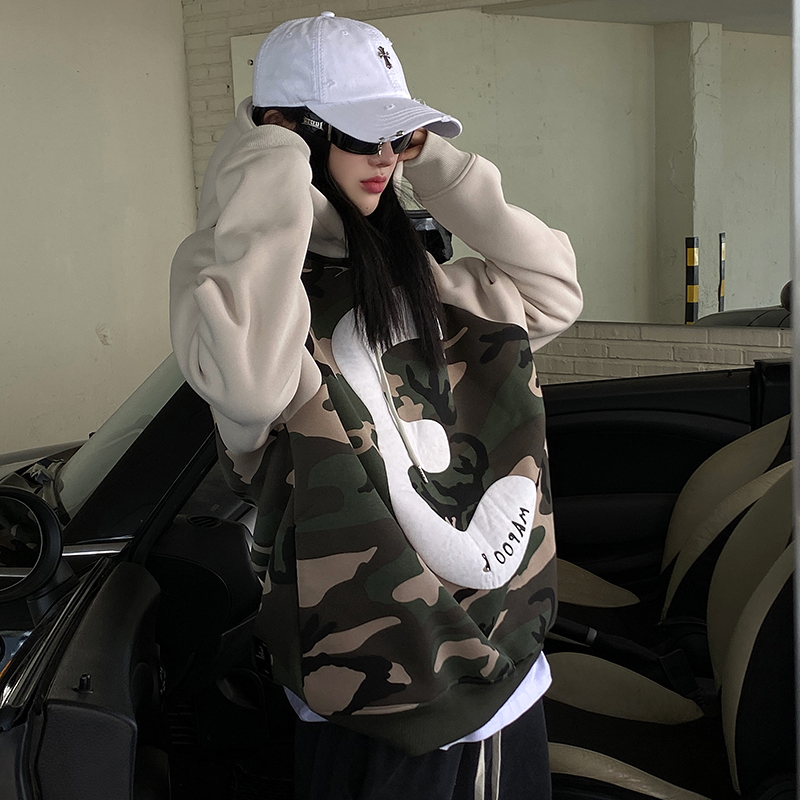 迷彩連帽加絨衛衣女2023新款秋冬oversize潮牌加厚外套美式上衣