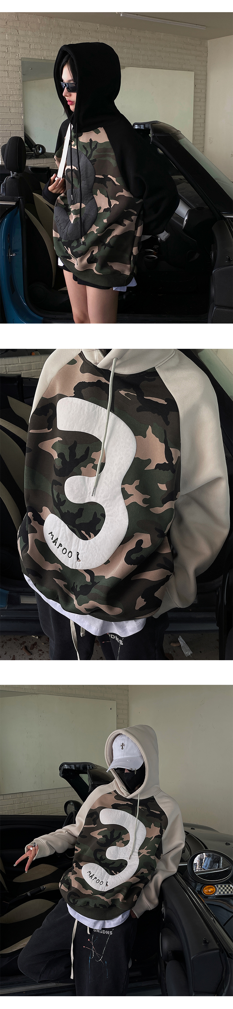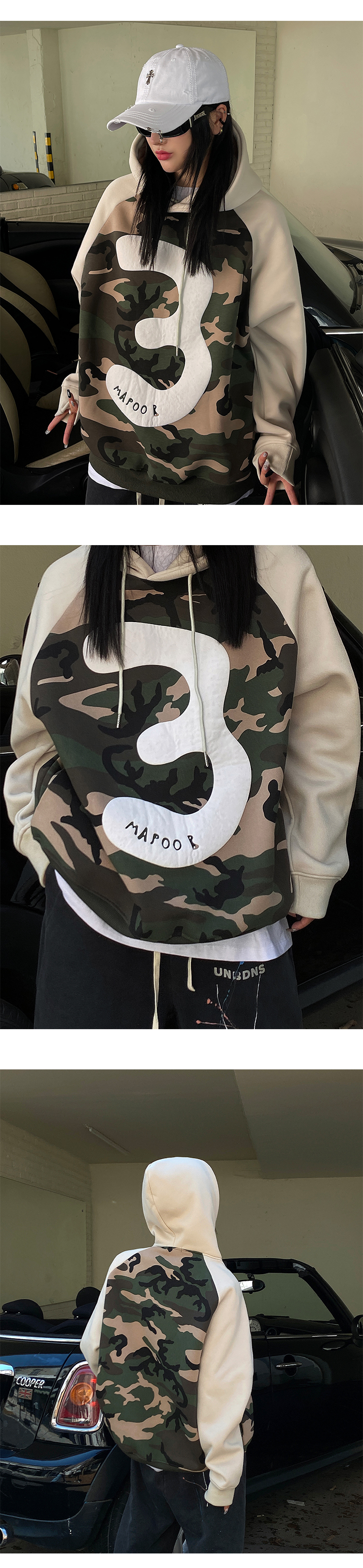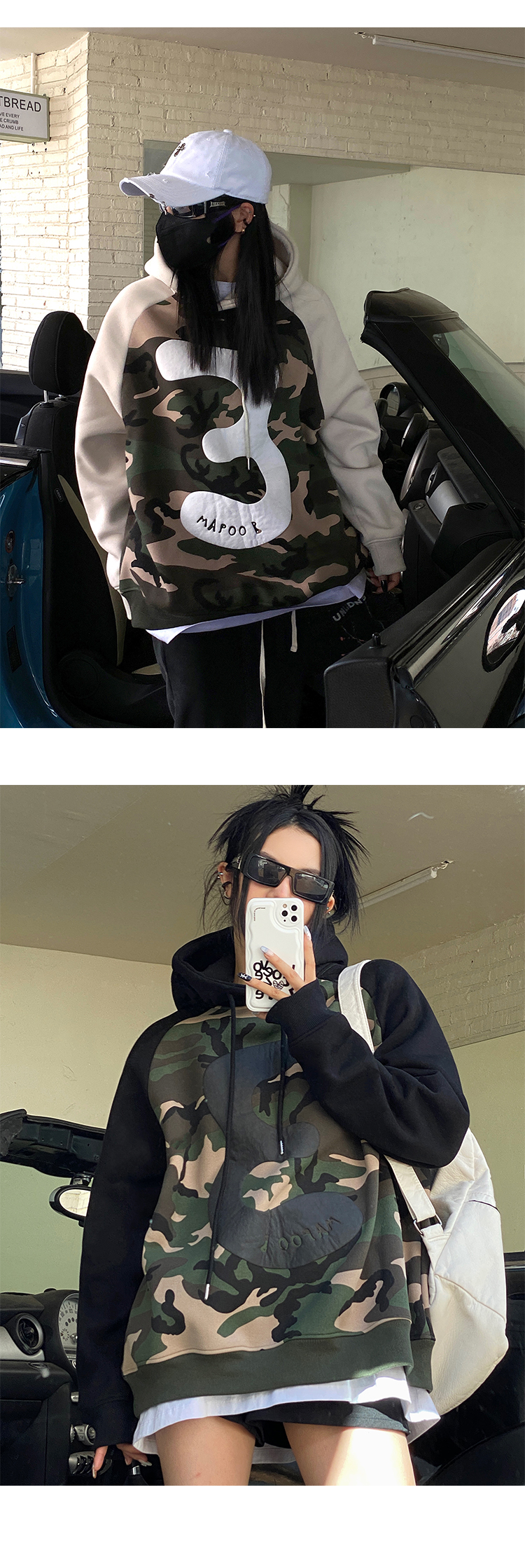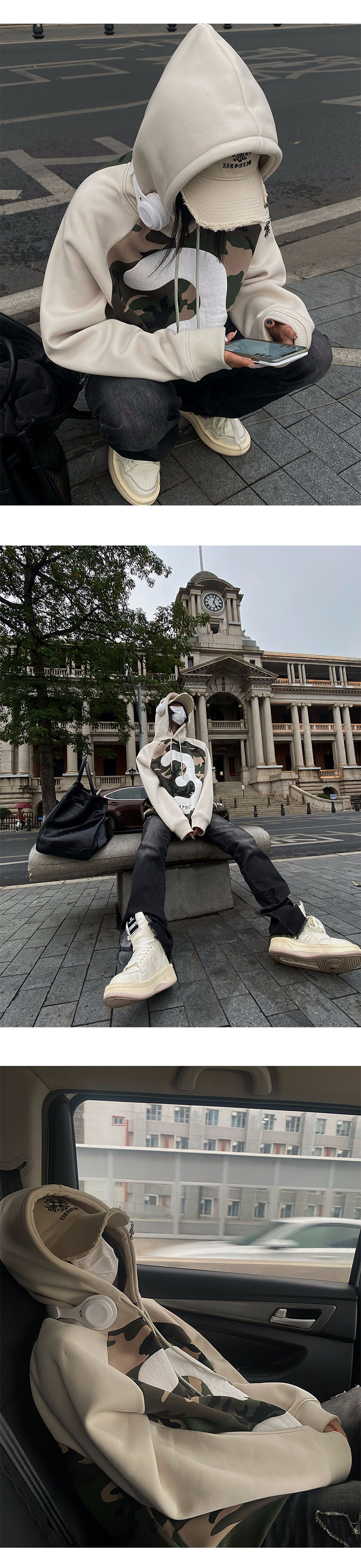迷彩連帽加絨衛衣女2023新款秋冬oversize潮牌加厚外套美式上衣