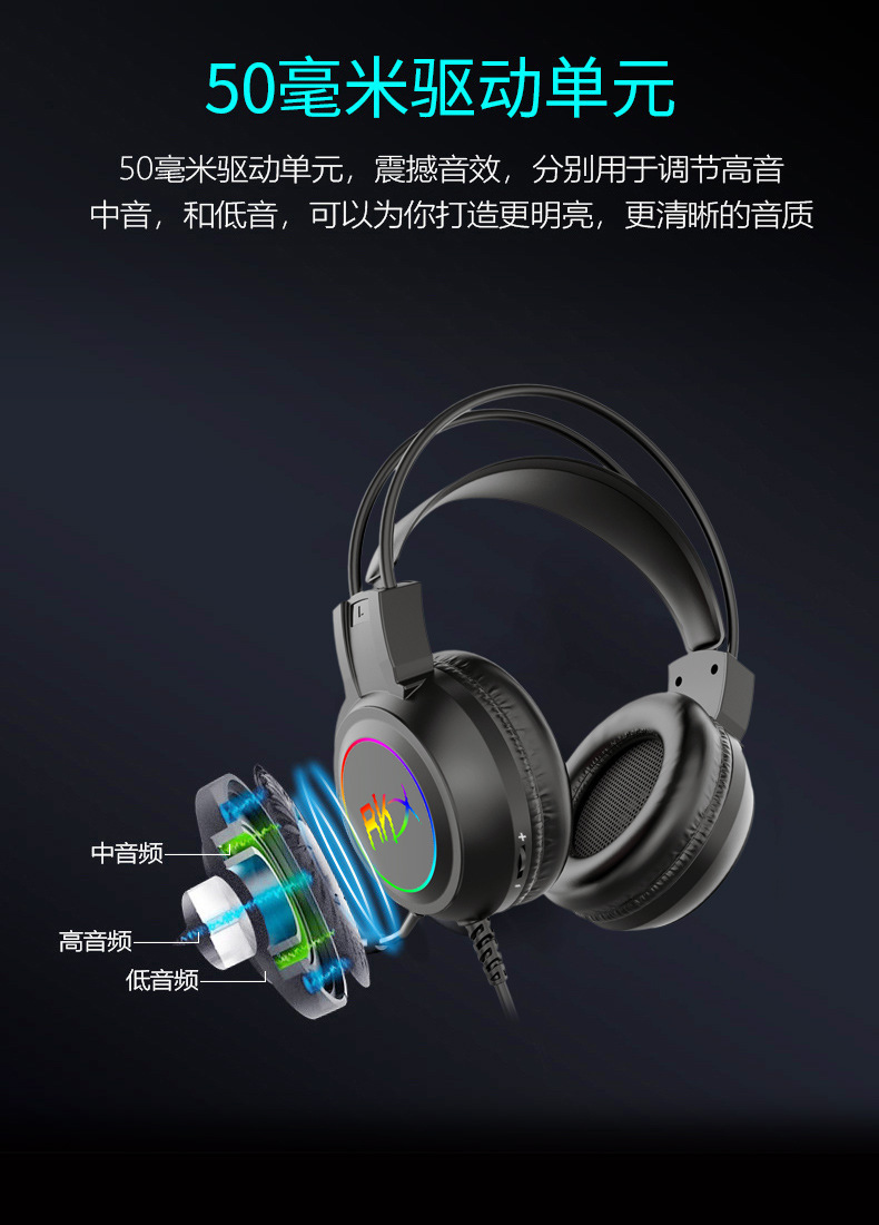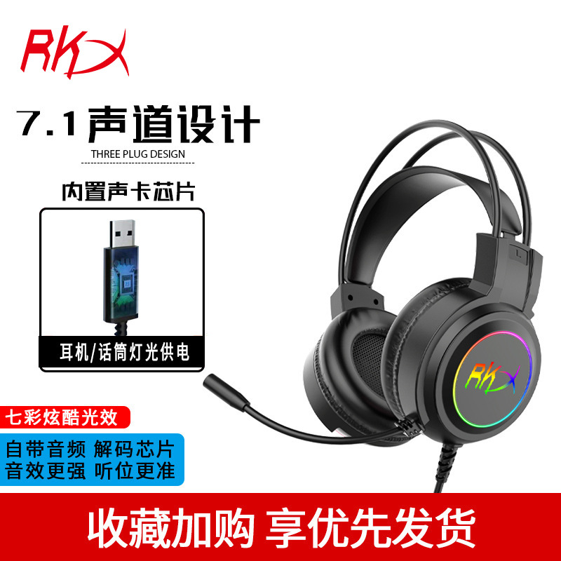 跨境X1头戴式学生有线耳麦电竞游戏RGB耳机7.1声道重低音电脑手机