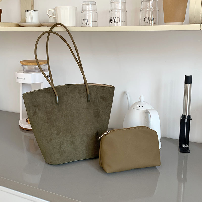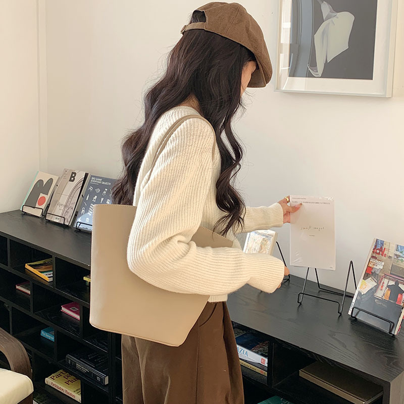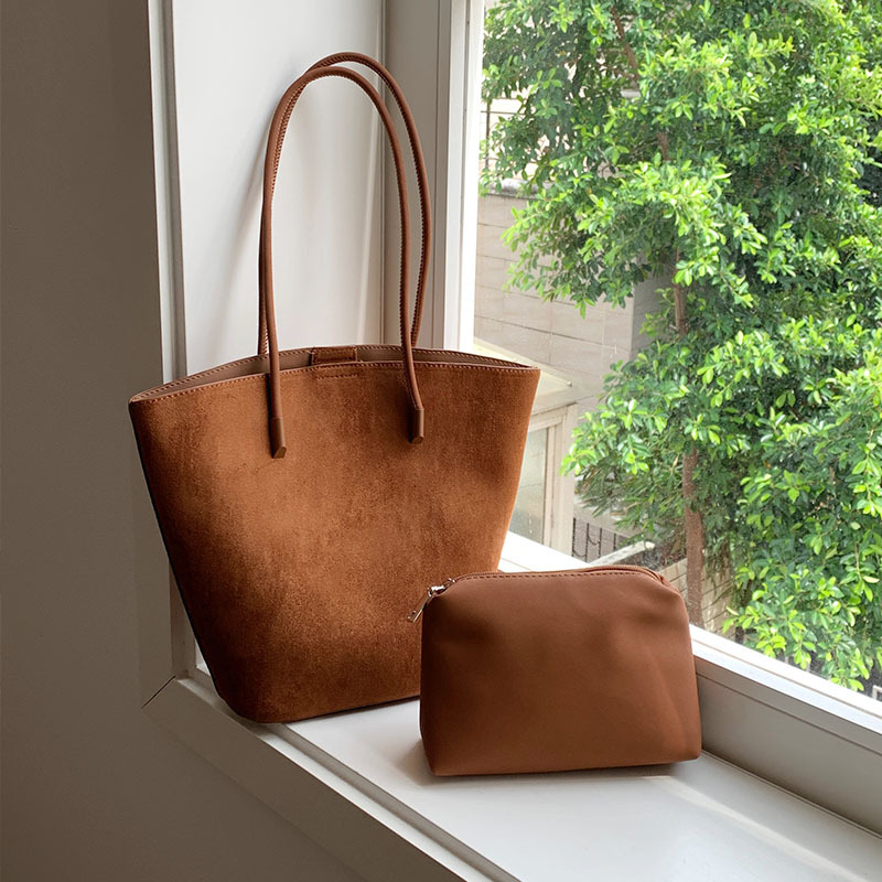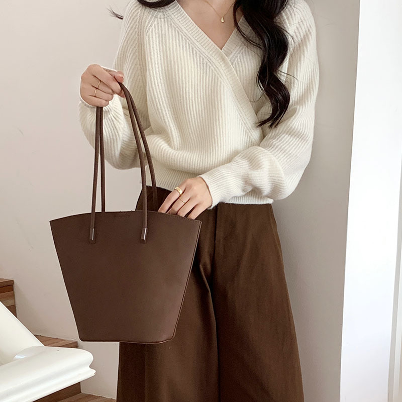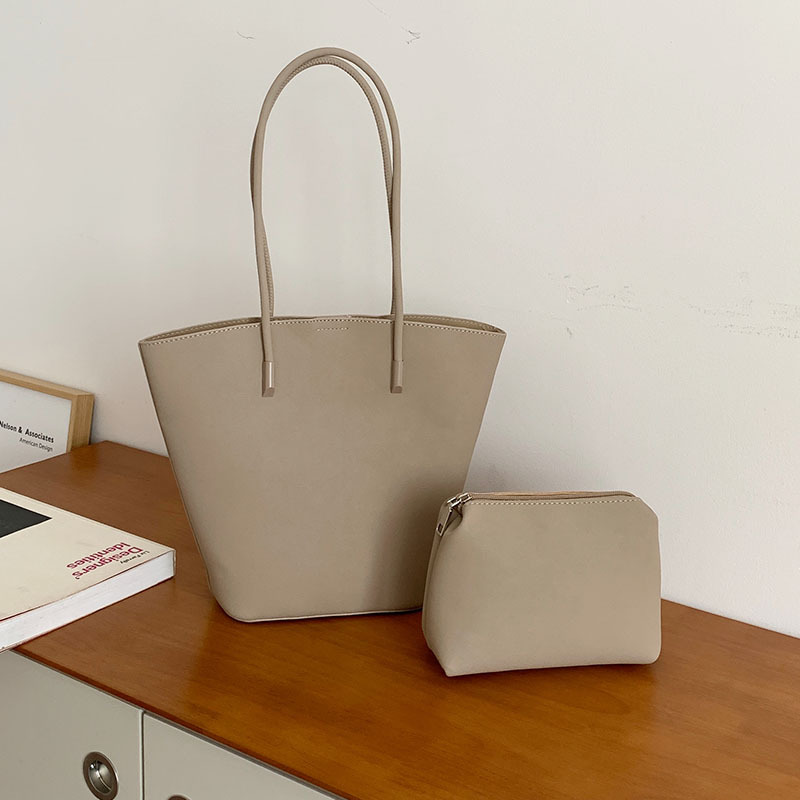 高级质感复古时尚单肩水桶包包女2023新款韩版百搭子母手提托特包