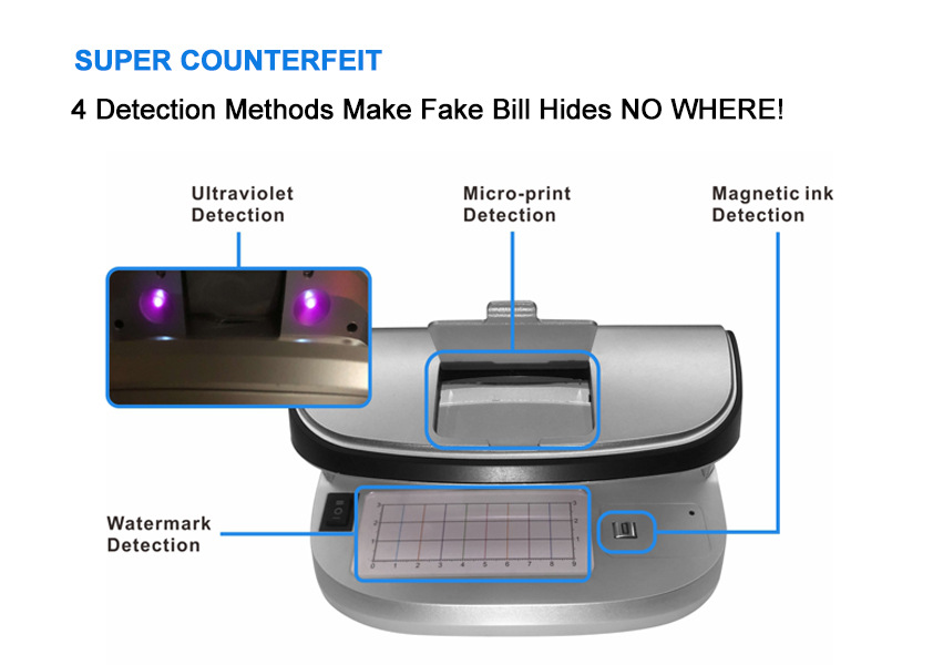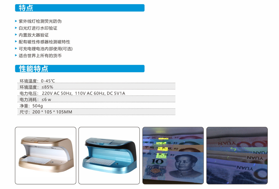 高科技紫外线显示隐藏的紫外线符号,适用于各国货币、支票、护照、信用卡等。