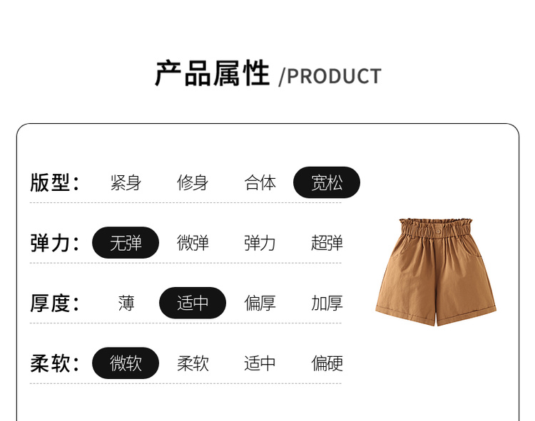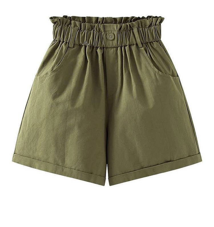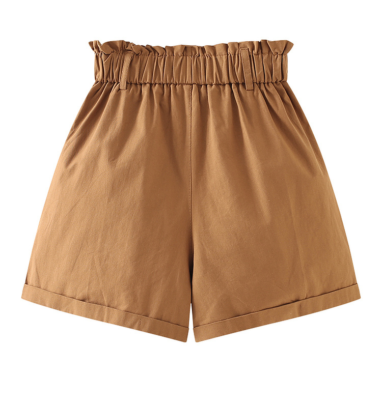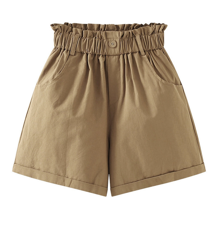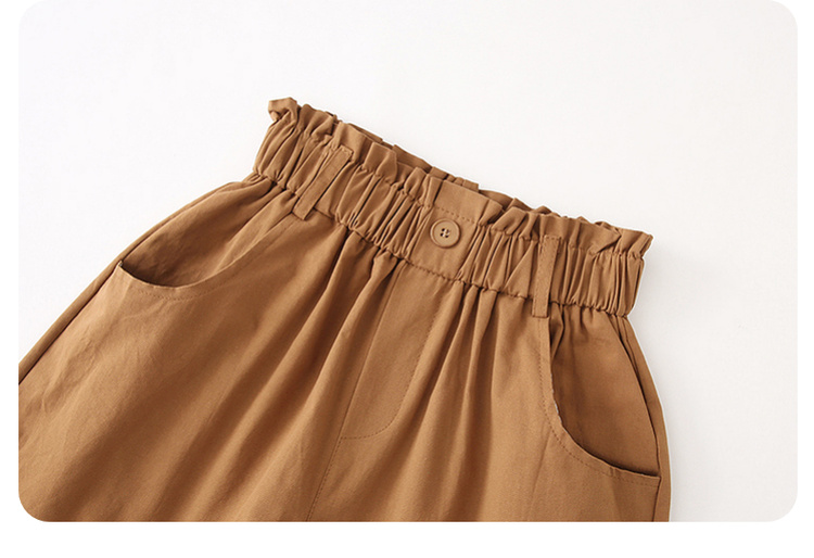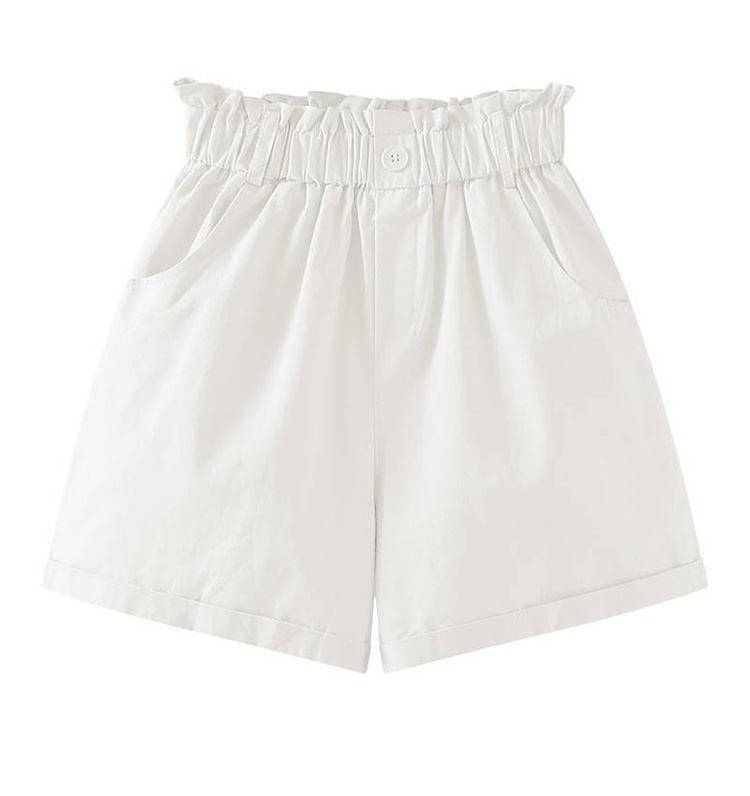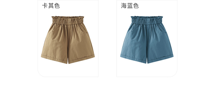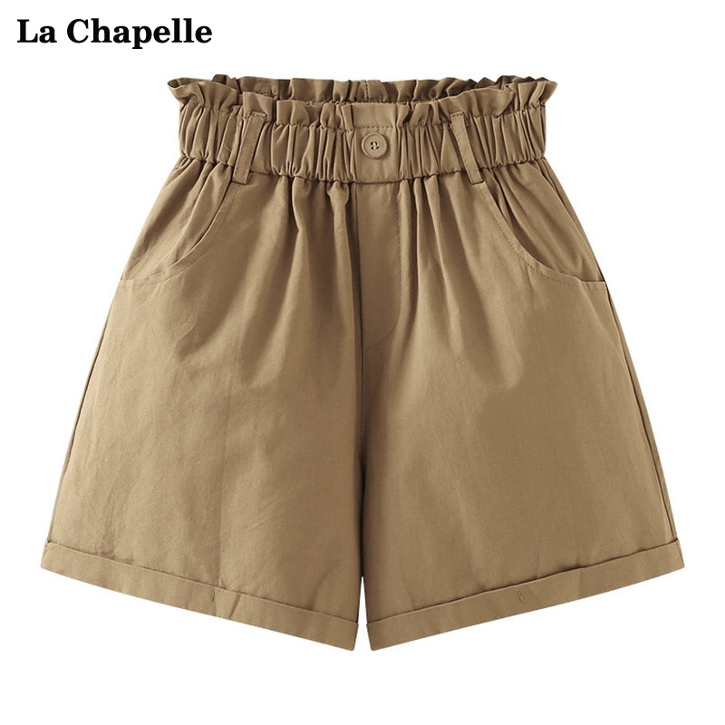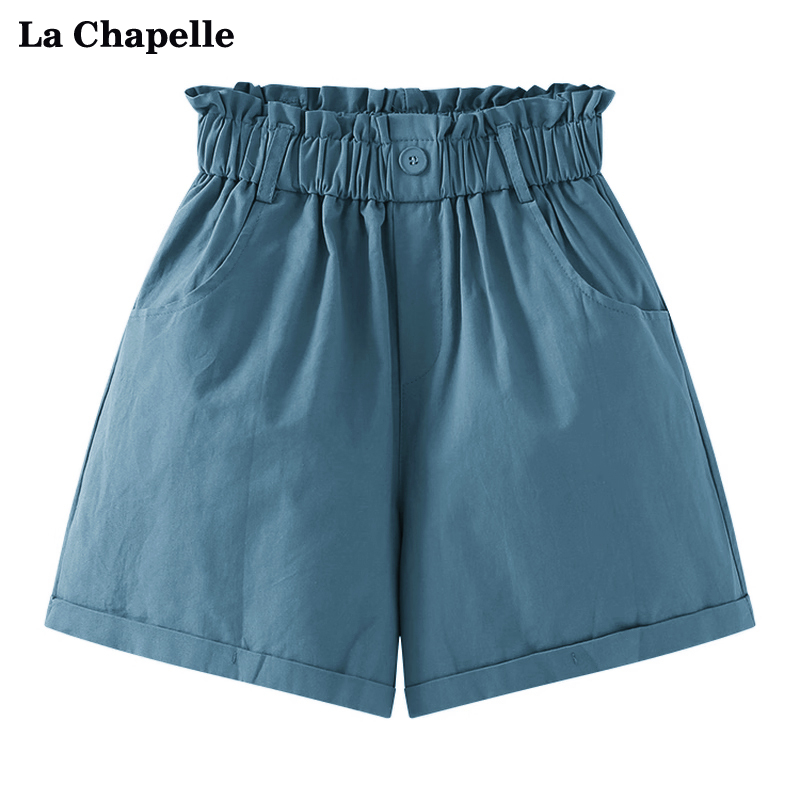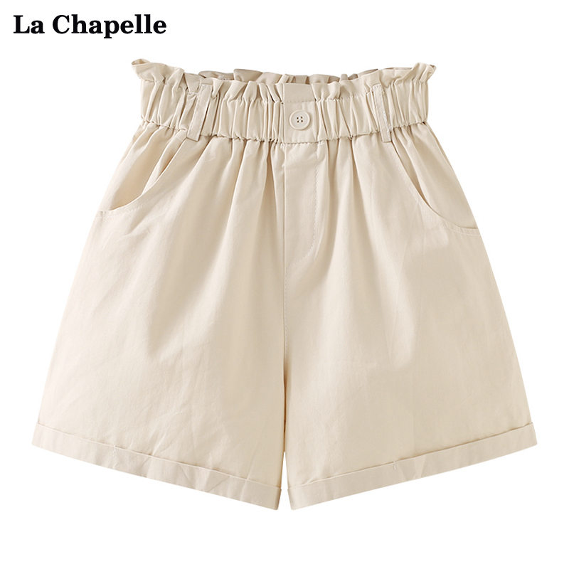 拉夏貝爾/La Chapelle花苞高腰捲邊休閒五分褲闊腿薄款短褲女五分褲