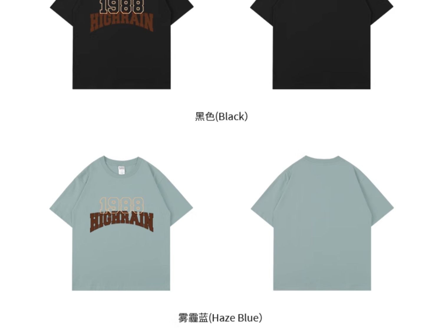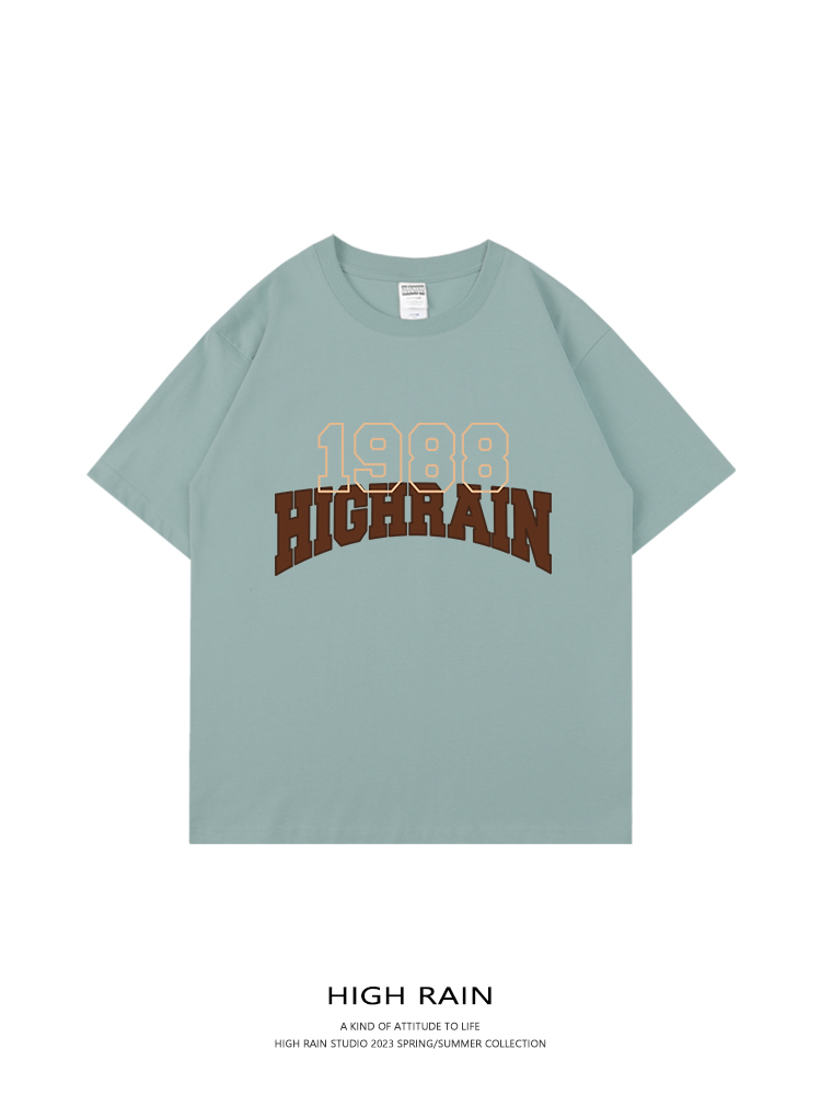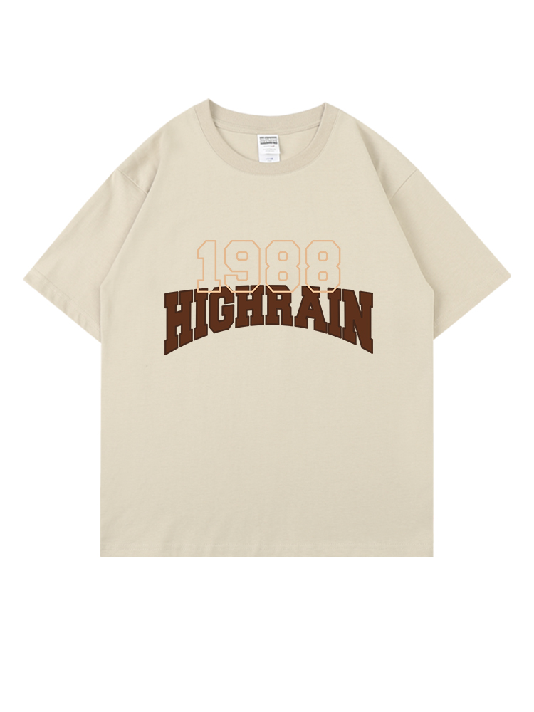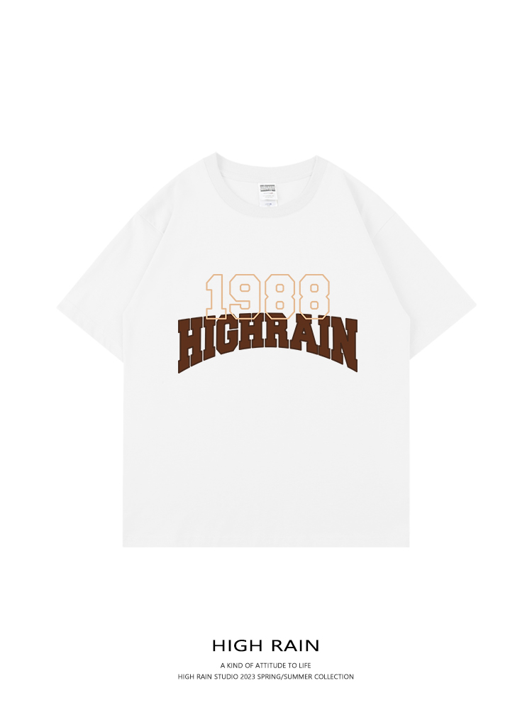 high rain 潮牌1988字母落肩短袖男女oversize風T恤嘻哈情侶上衣