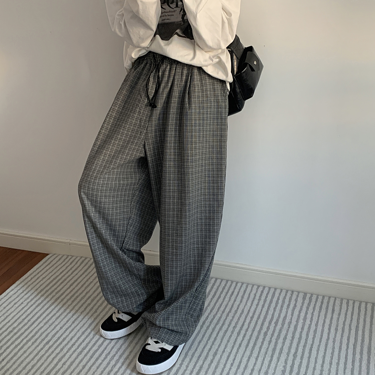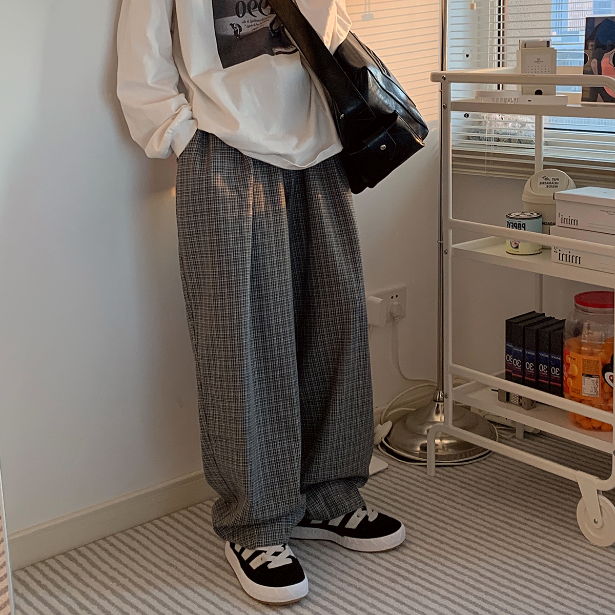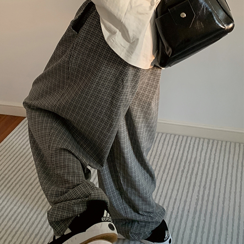 千鳥格褲子oversize設計感小眾闊腿工裝褲男寬鬆日系燈籠褲春秋季