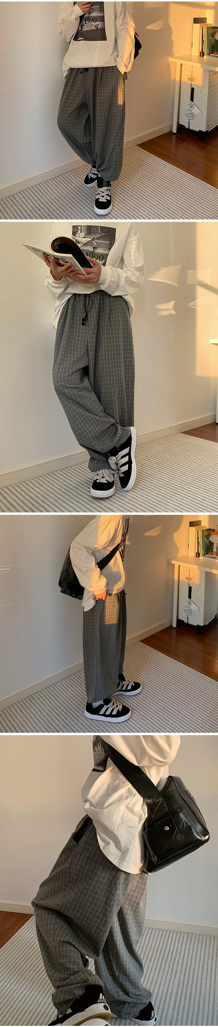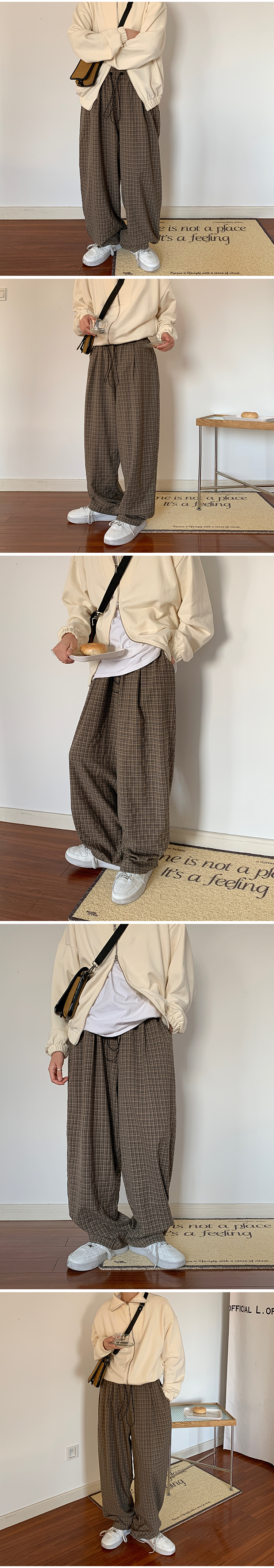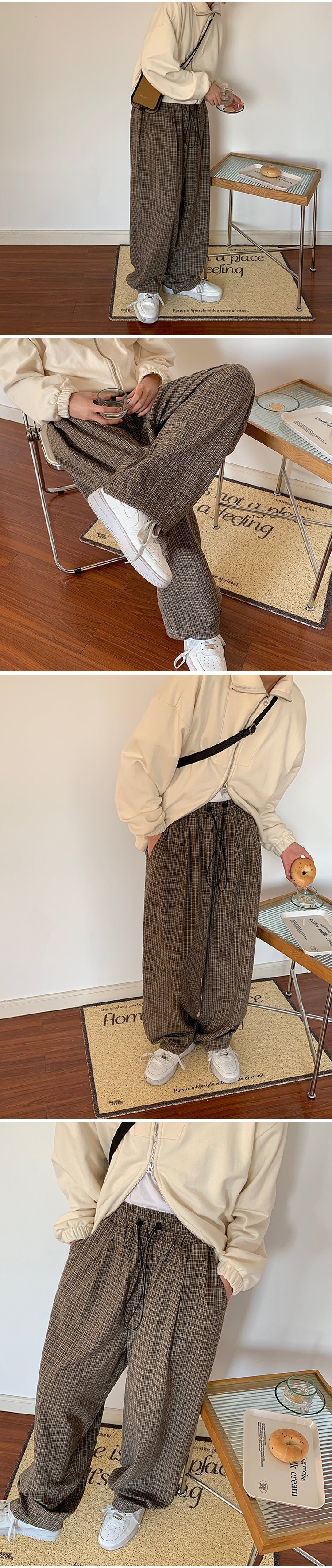 千鳥格褲子oversize設計感小眾闊腿工裝褲男寬鬆日系燈籠褲春秋季