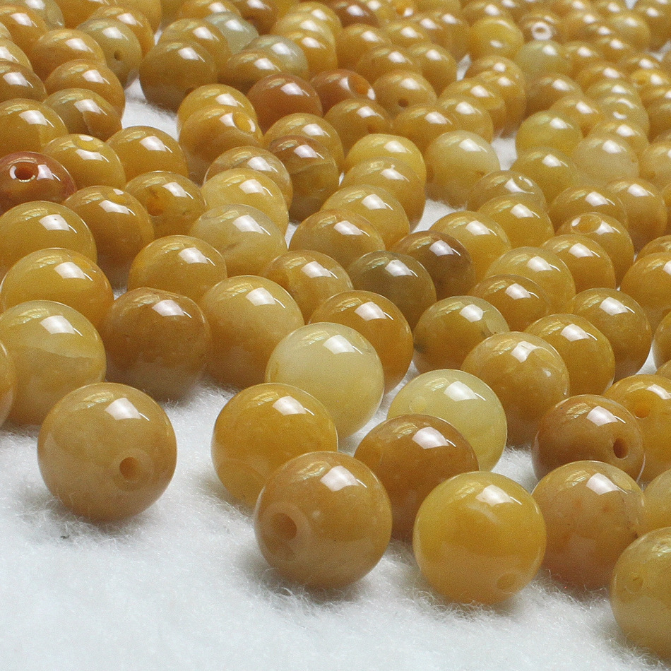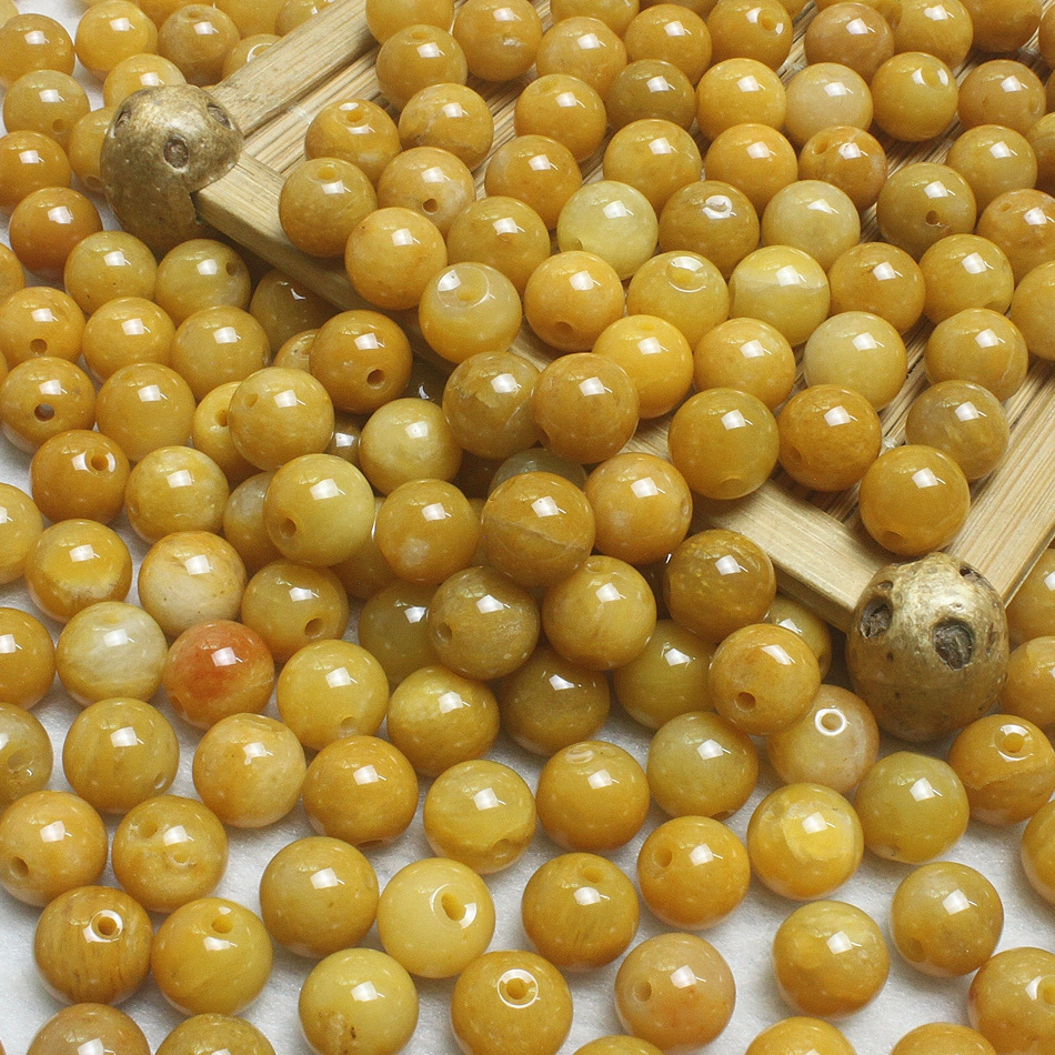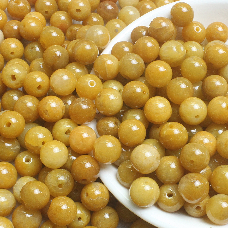 产地直销8mm天然老黄龙玉散珠 玉石DIY饰品配件 黄玉圆珠批发0.23