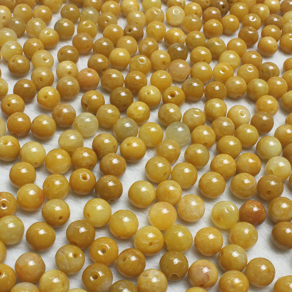 产地直销6mm天然原色黄龙玉散珠 玉石DIY饰品配件 黄玉圆珠批发0.16