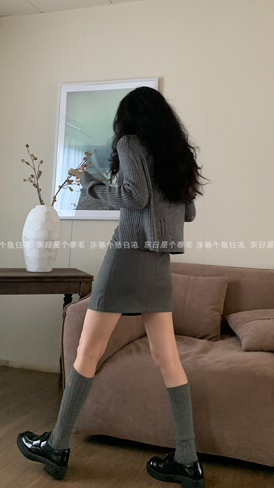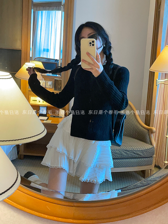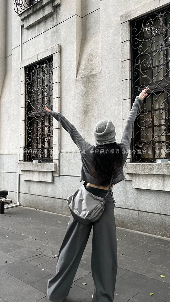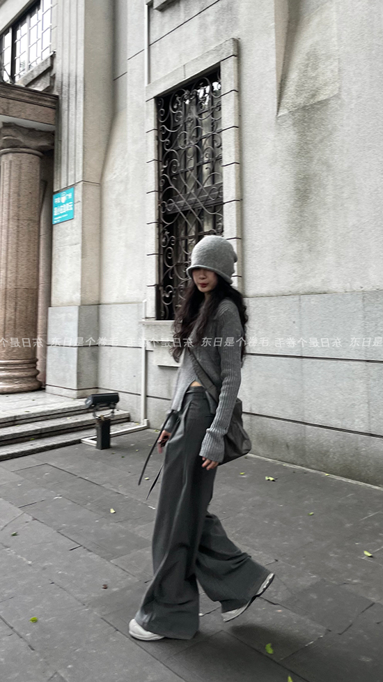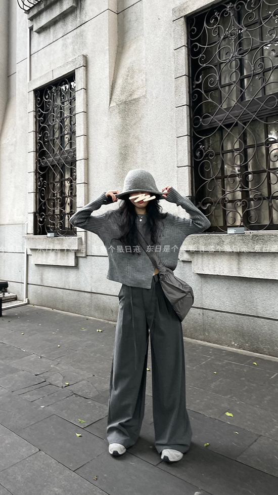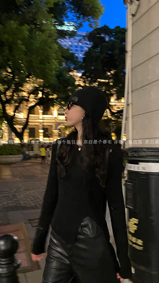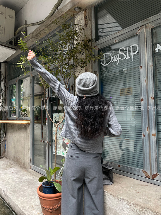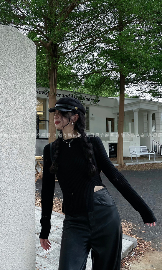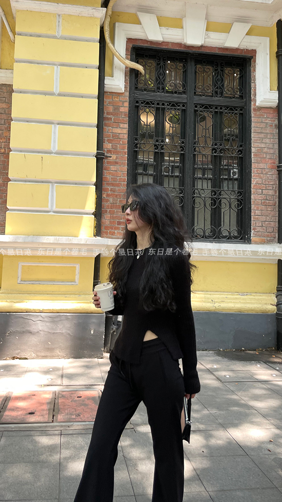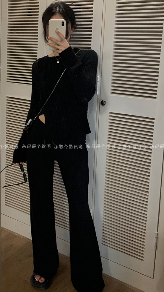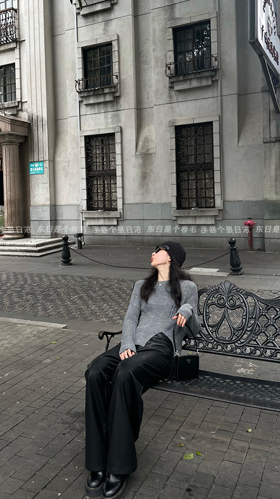 東日是個捲毛 藝術系學姐 圓領設計感毛衣女秋季套頭長袖針織上衣