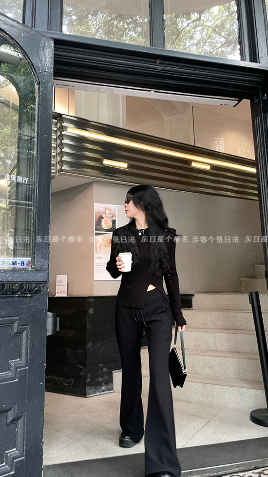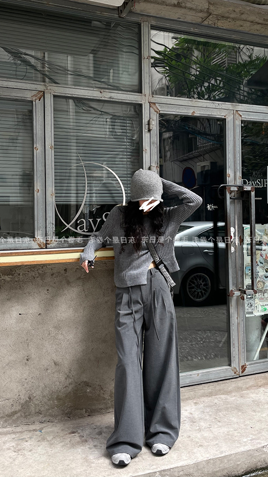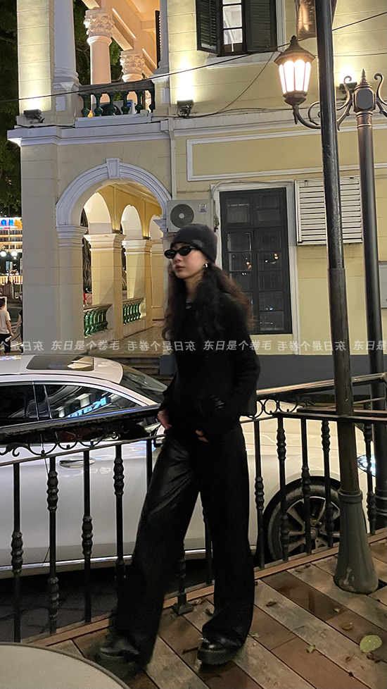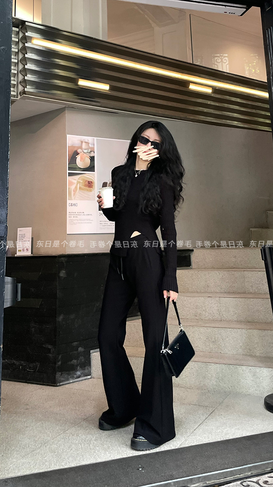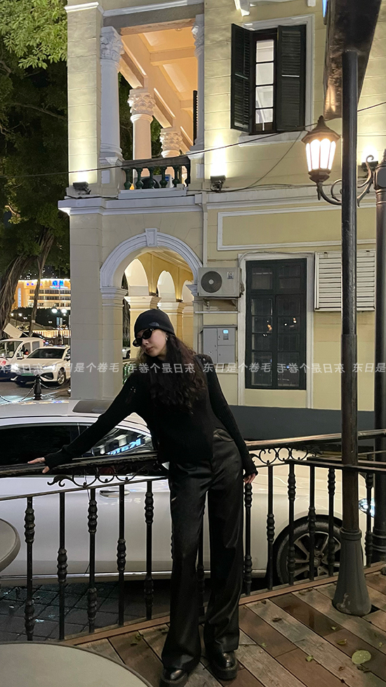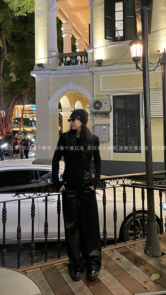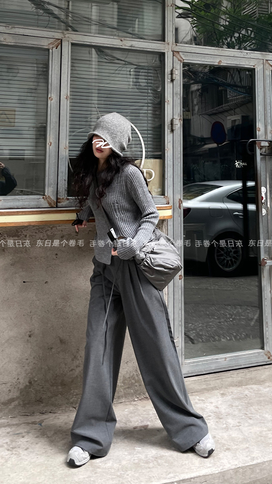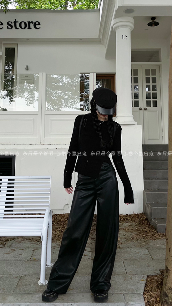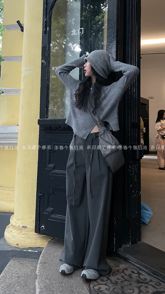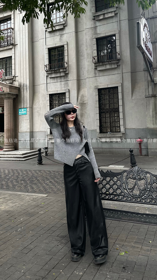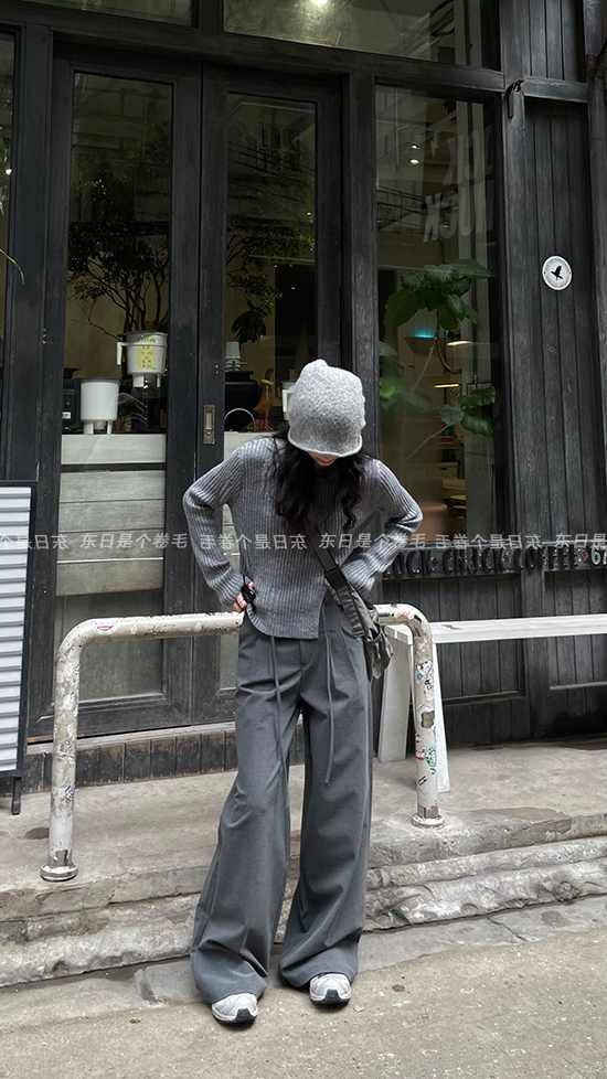 東日是個捲毛 藝術系學姐 圓領設計感毛衣女秋季套頭長袖針織上衣
