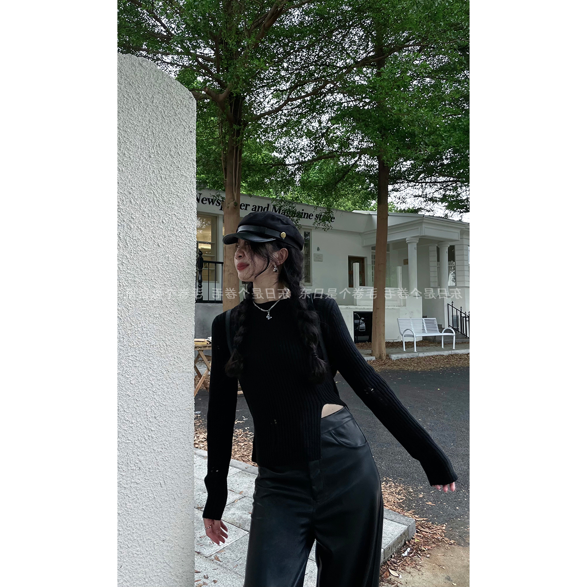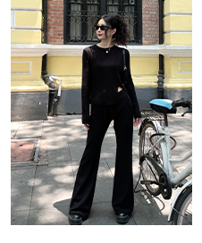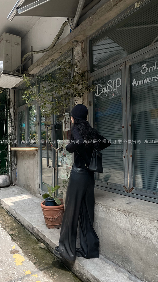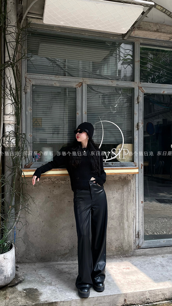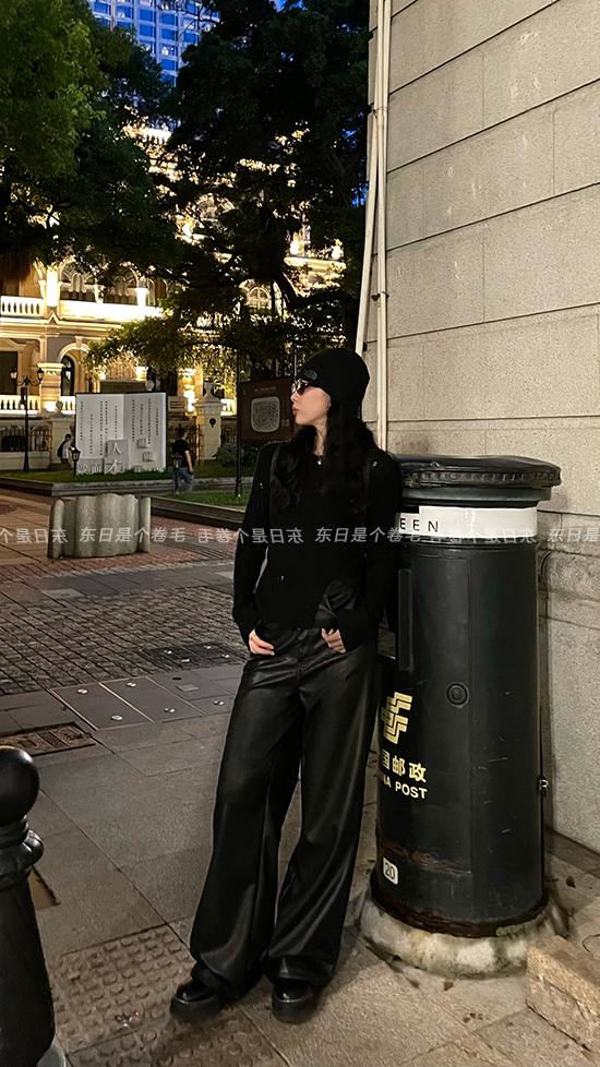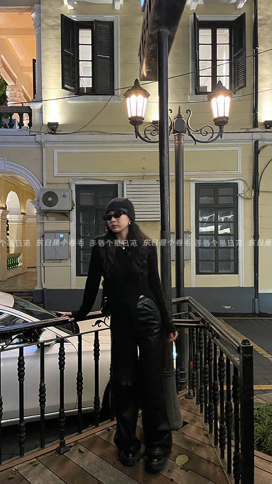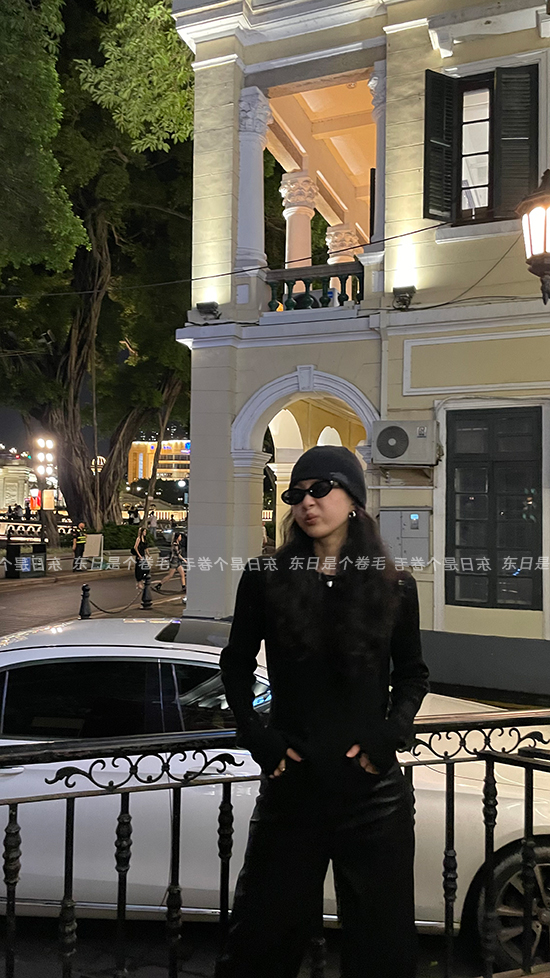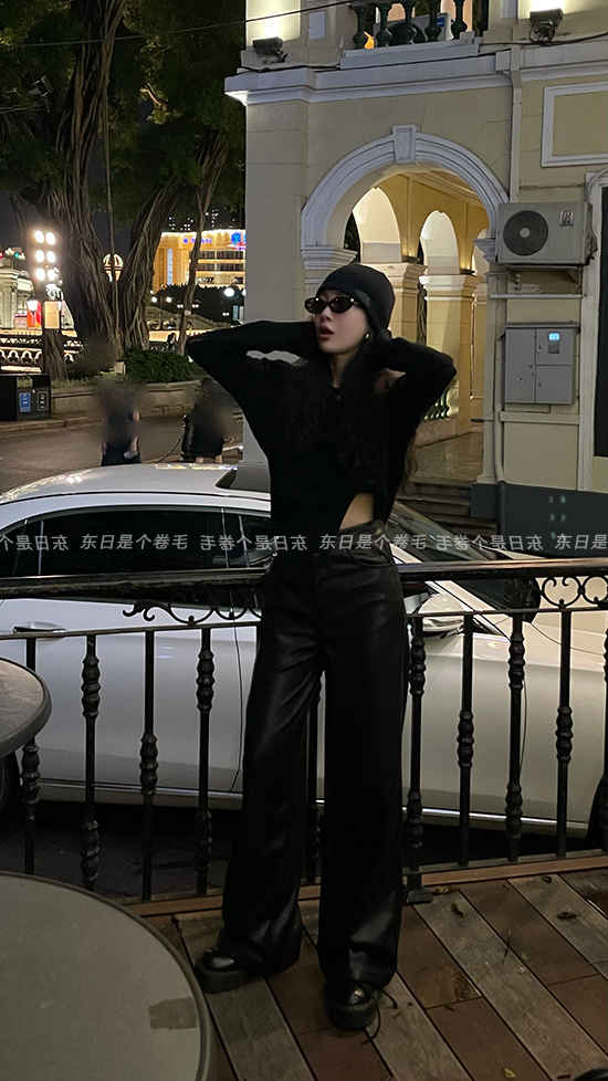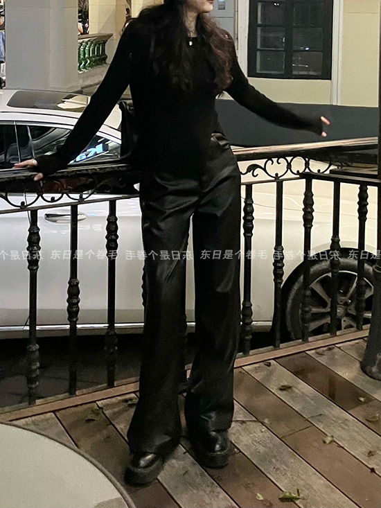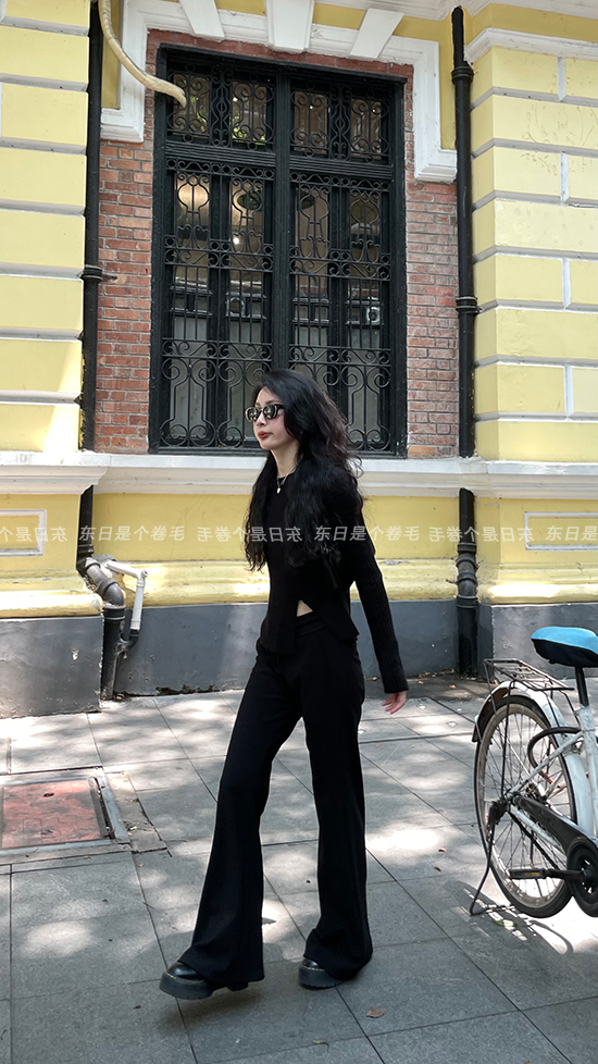 東日是個捲毛 藝術系學姐 圓領設計感毛衣女秋季套頭長袖針織上衣