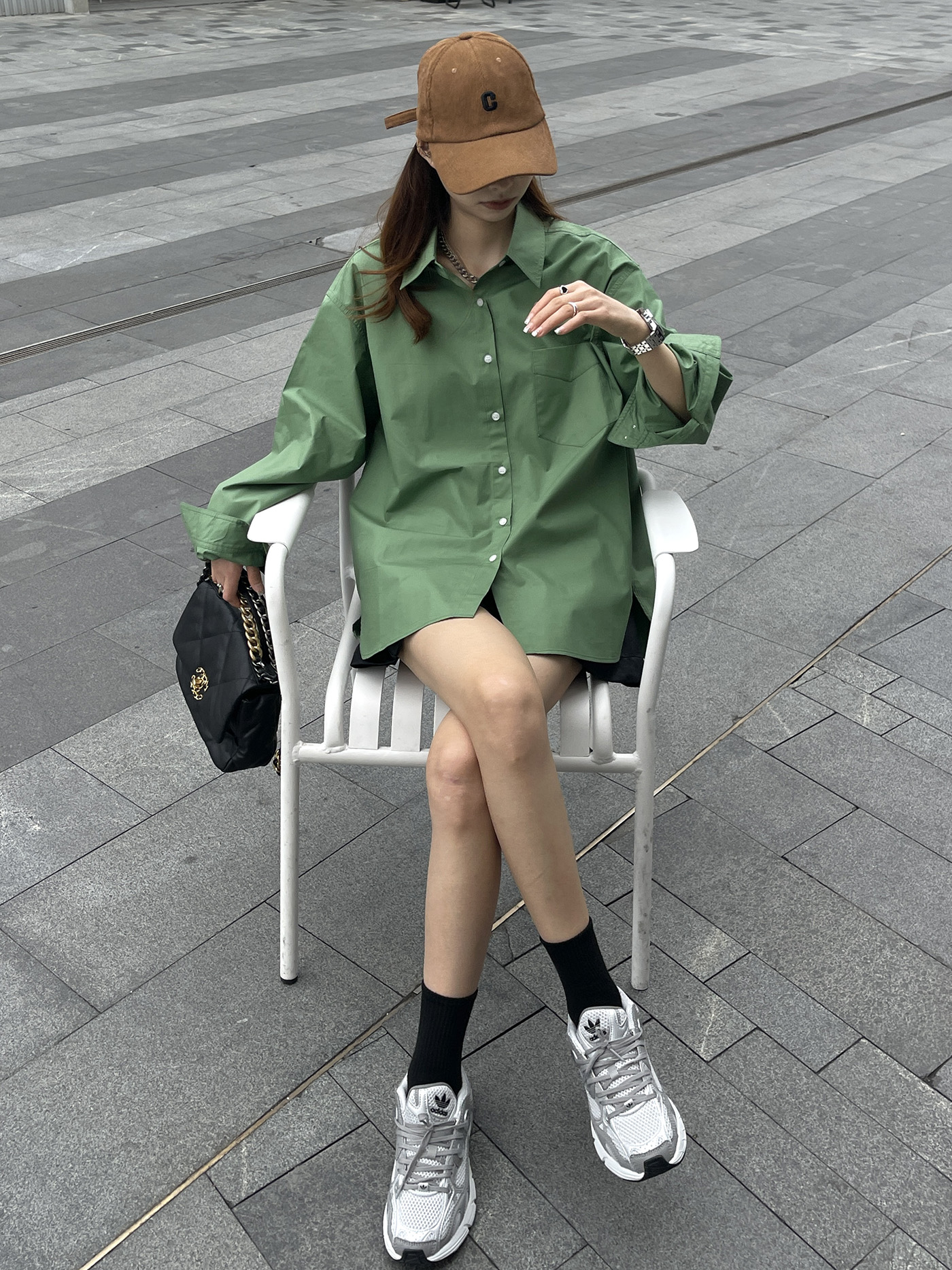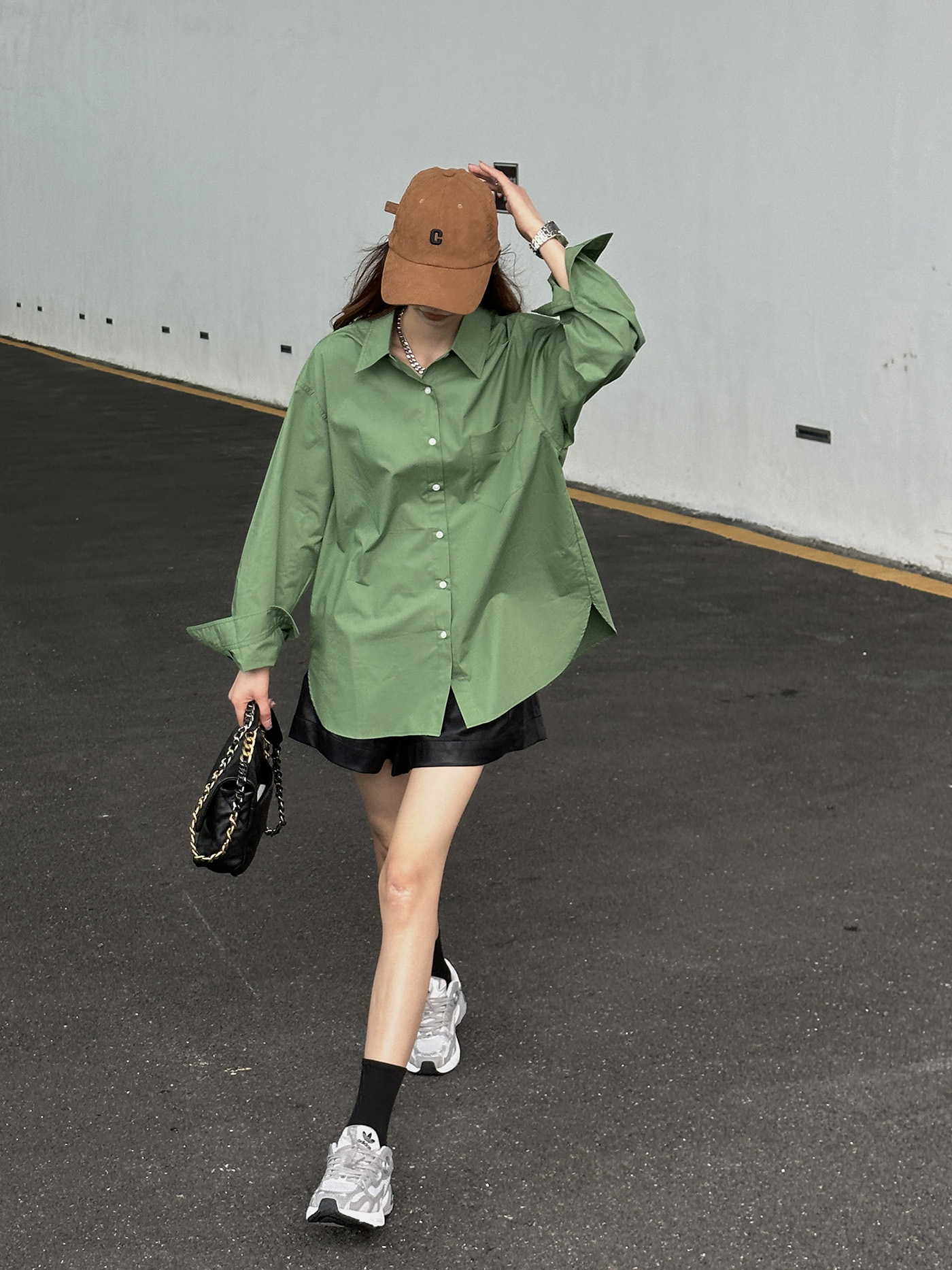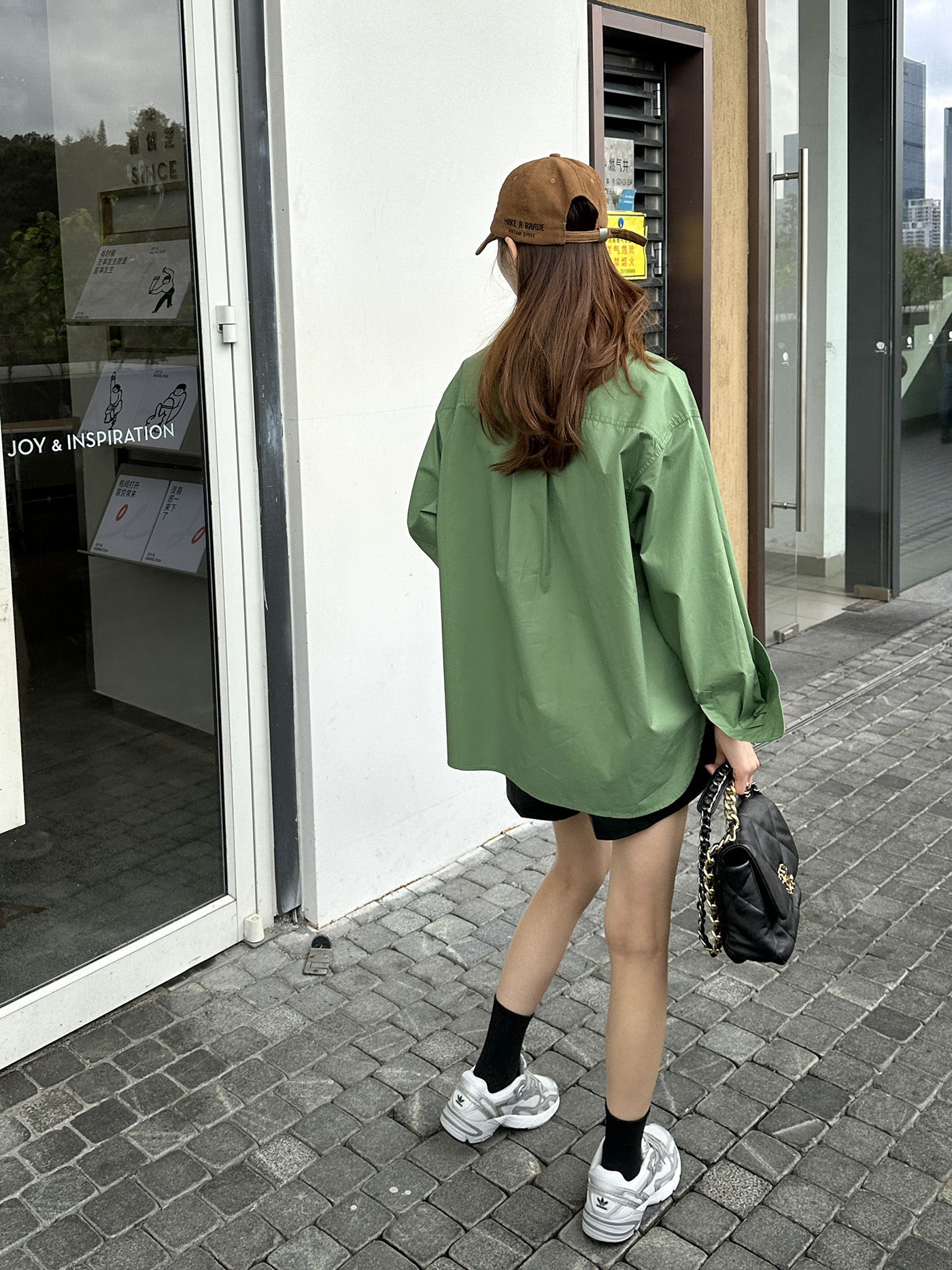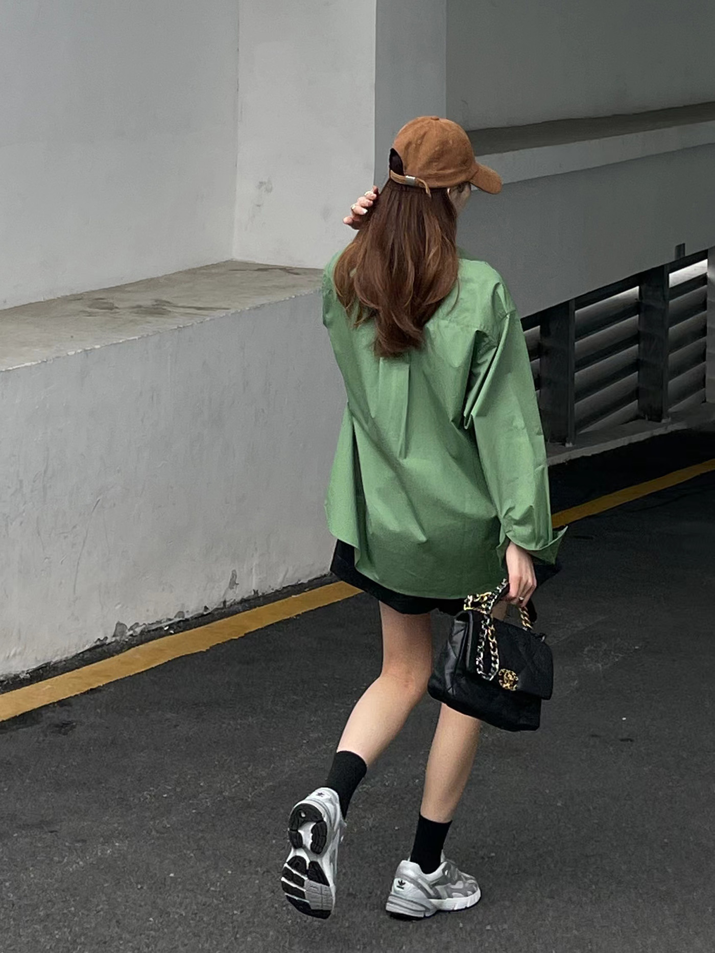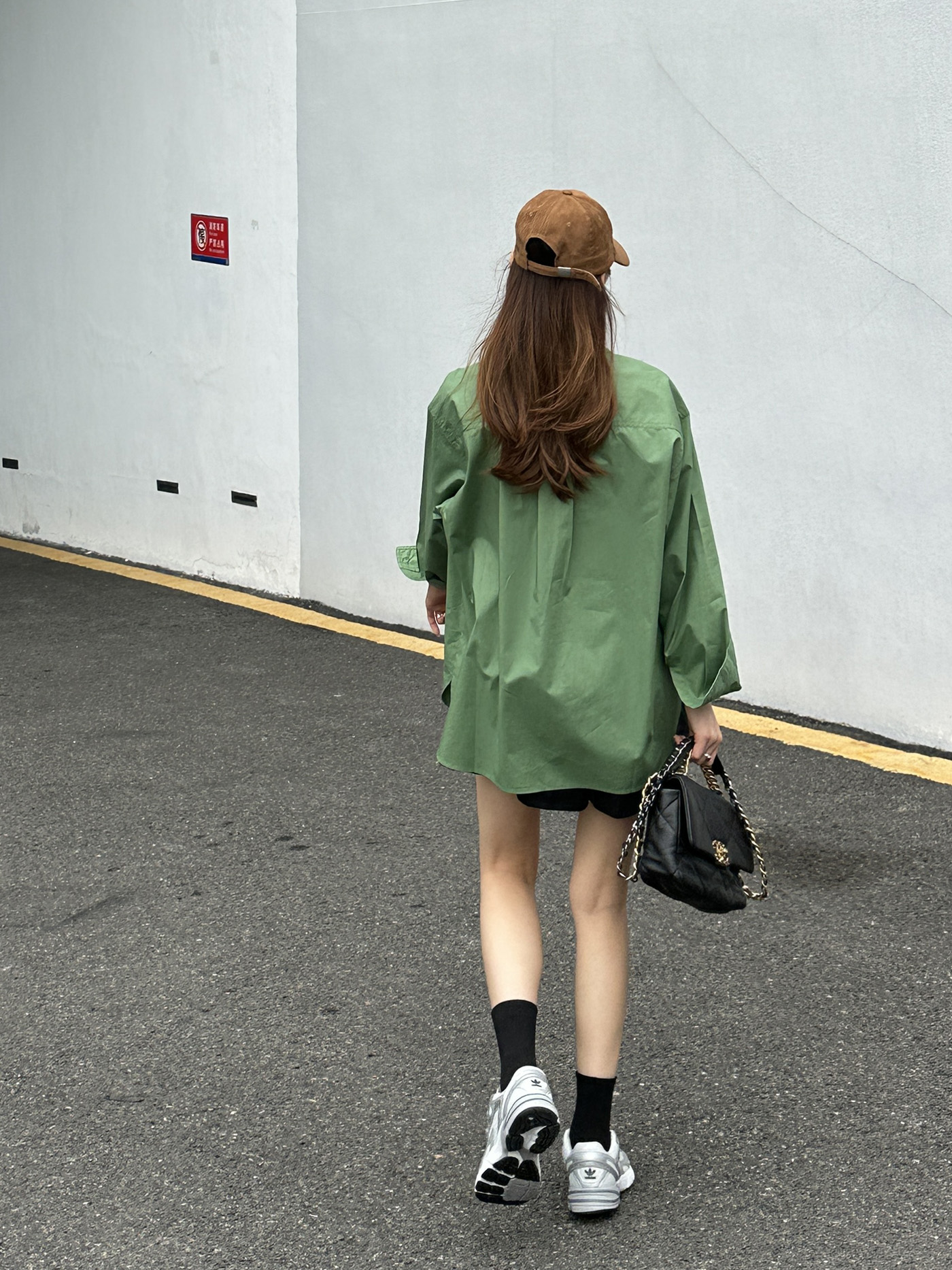 JYCCCCCC綠色休閒長袖襯衫女2023春季新款寬鬆高級感防曬氣質上衣