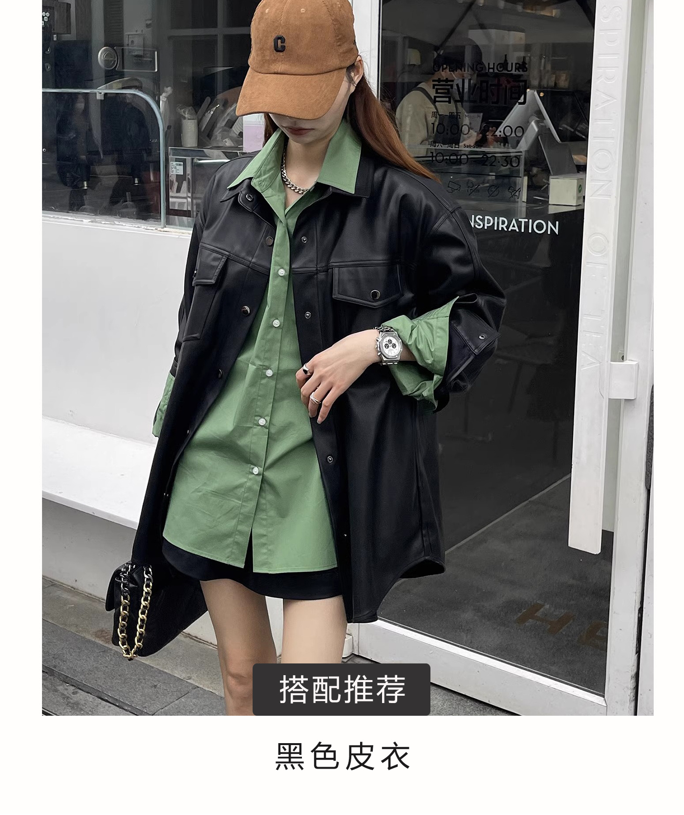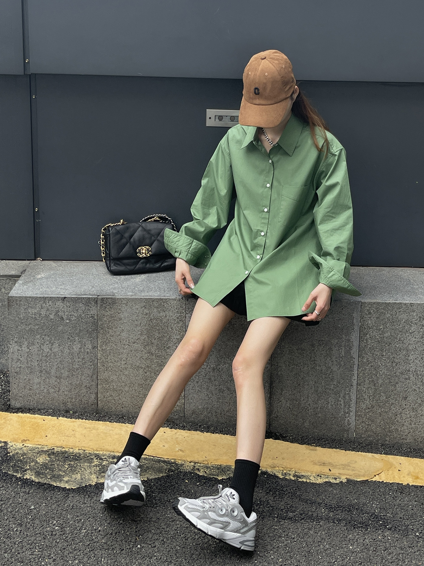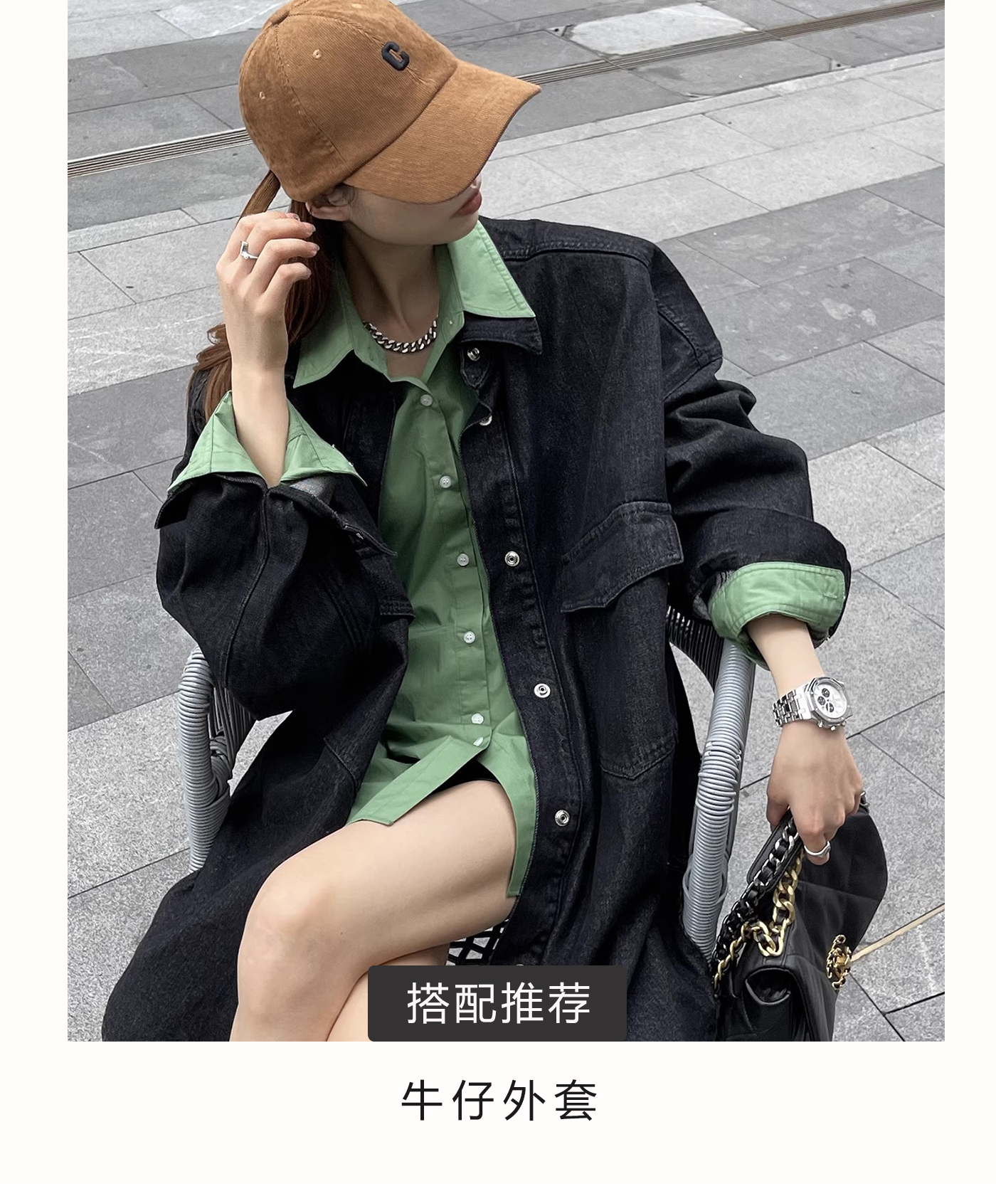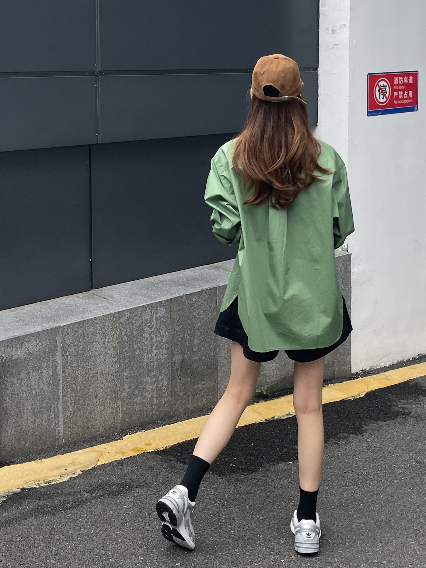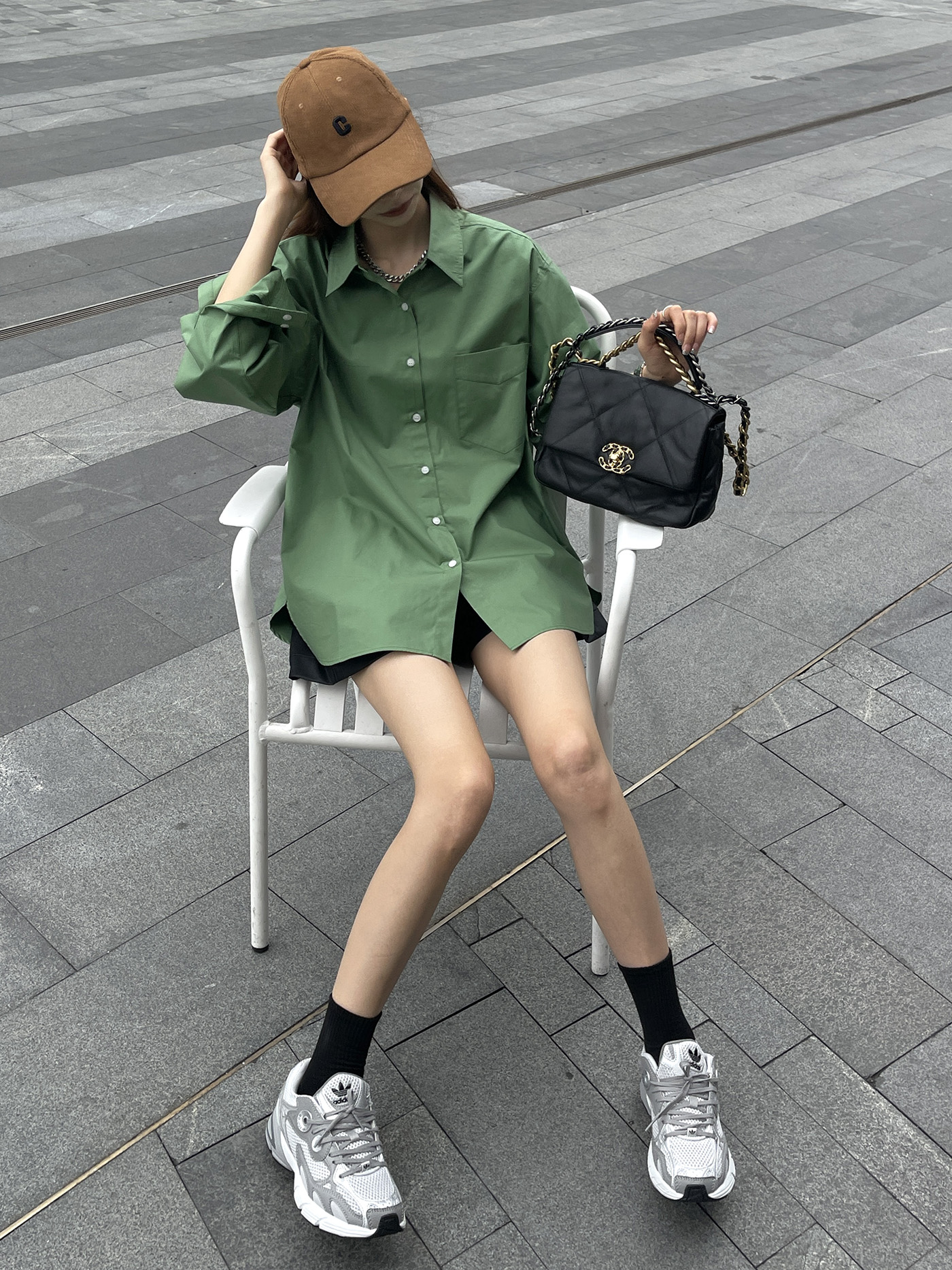 JYCCCCCC綠色休閒長袖襯衫女2023春季新款寬鬆高級感防曬氣質上衣