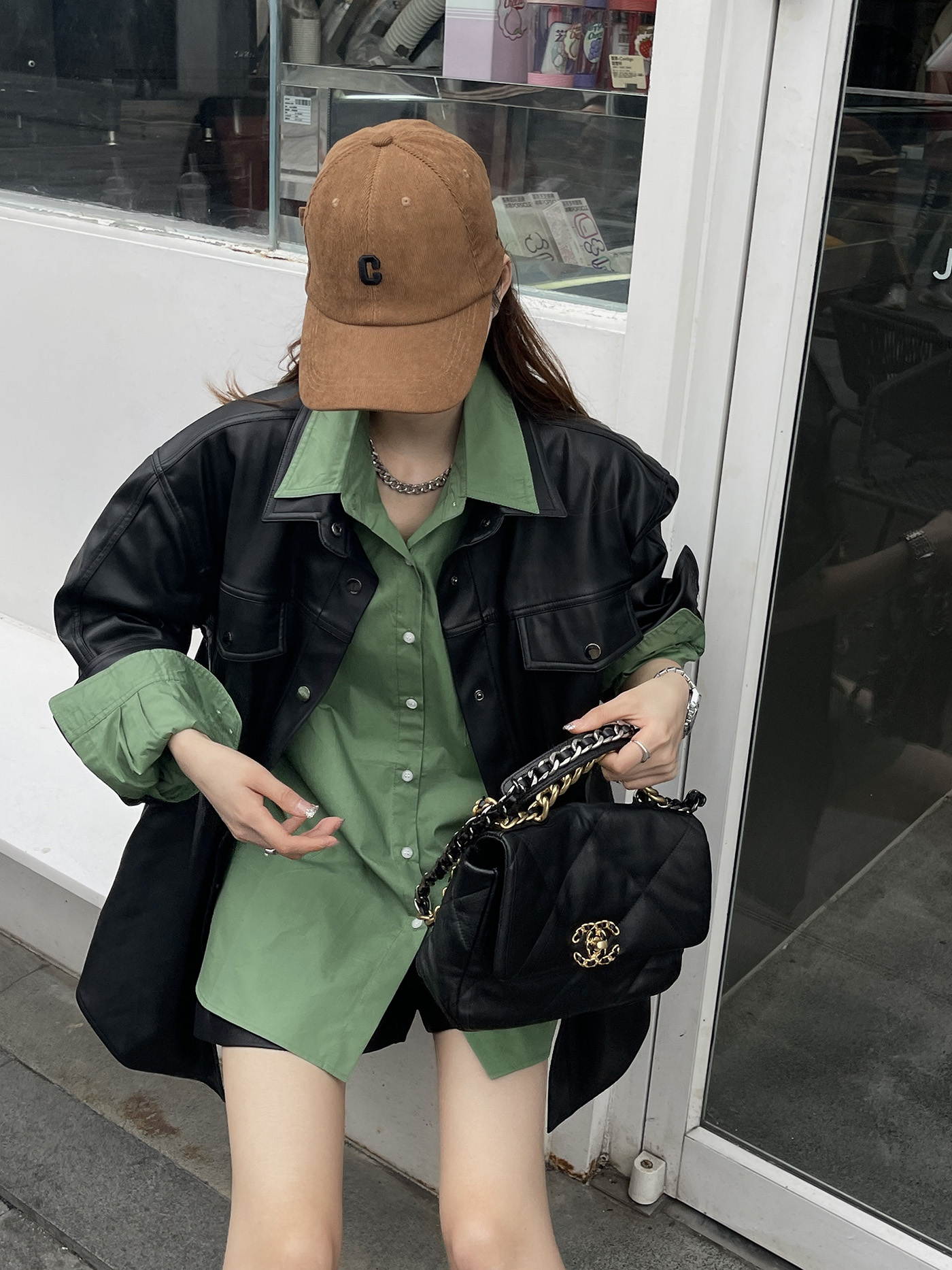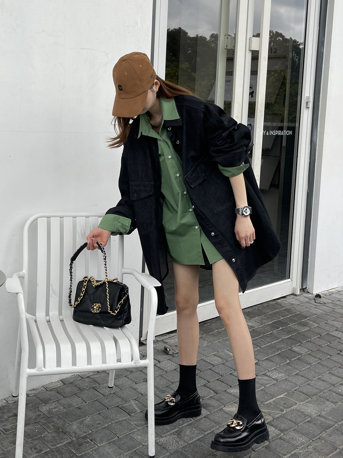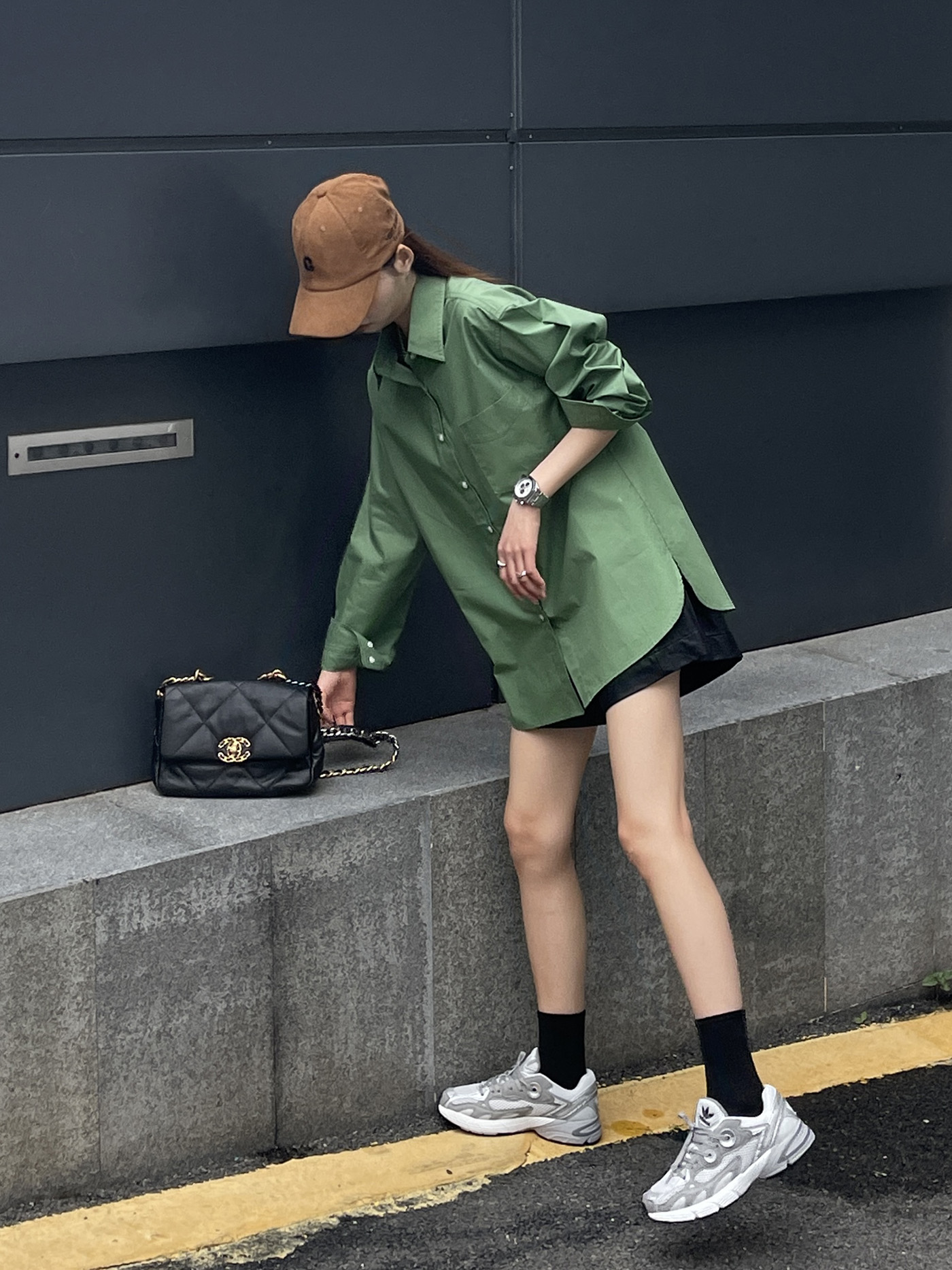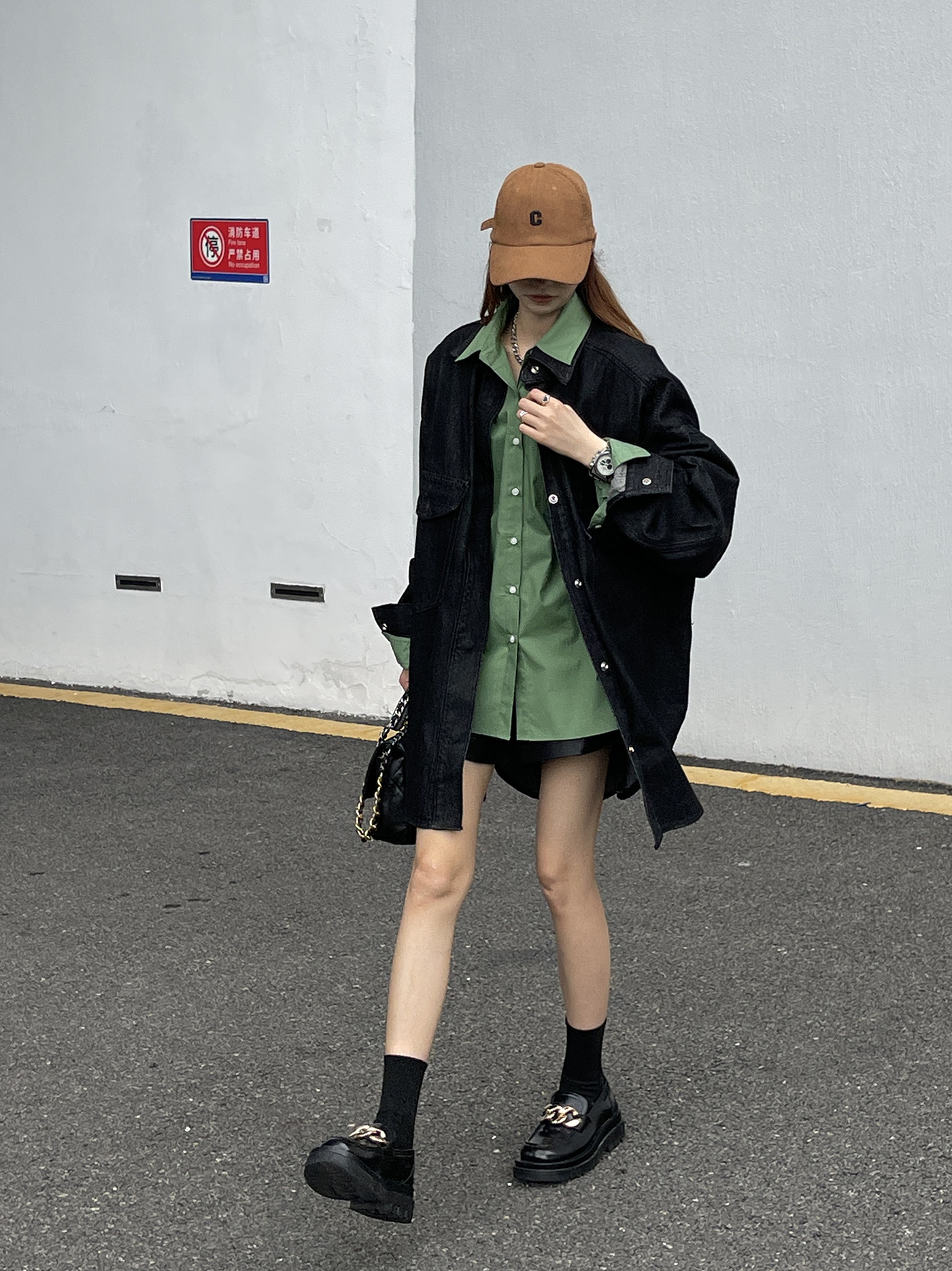 JYCCCCCC綠色休閒長袖襯衫女2023春季新款寬鬆高級感防曬氣質上衣