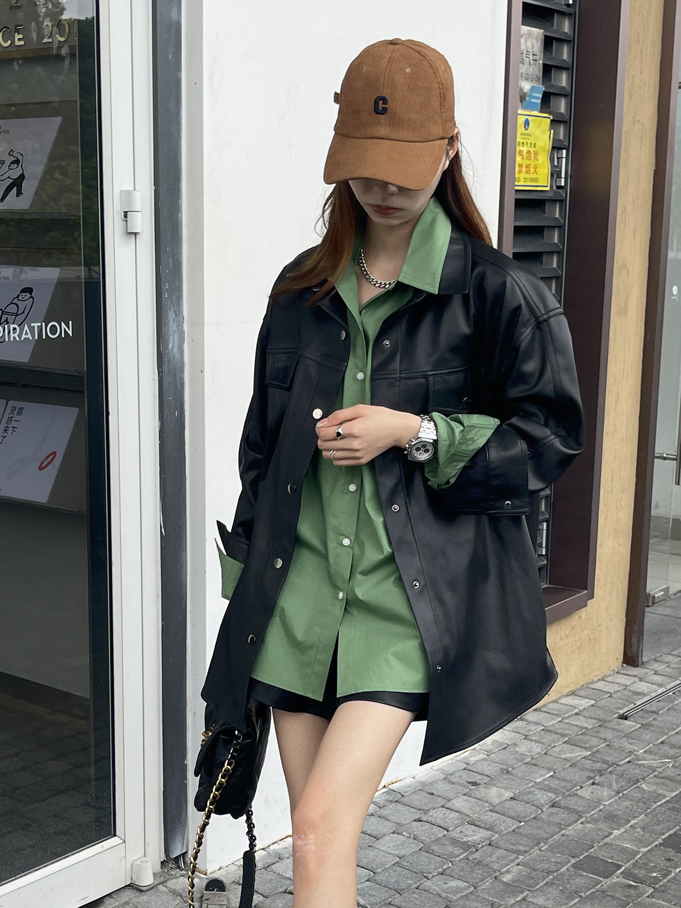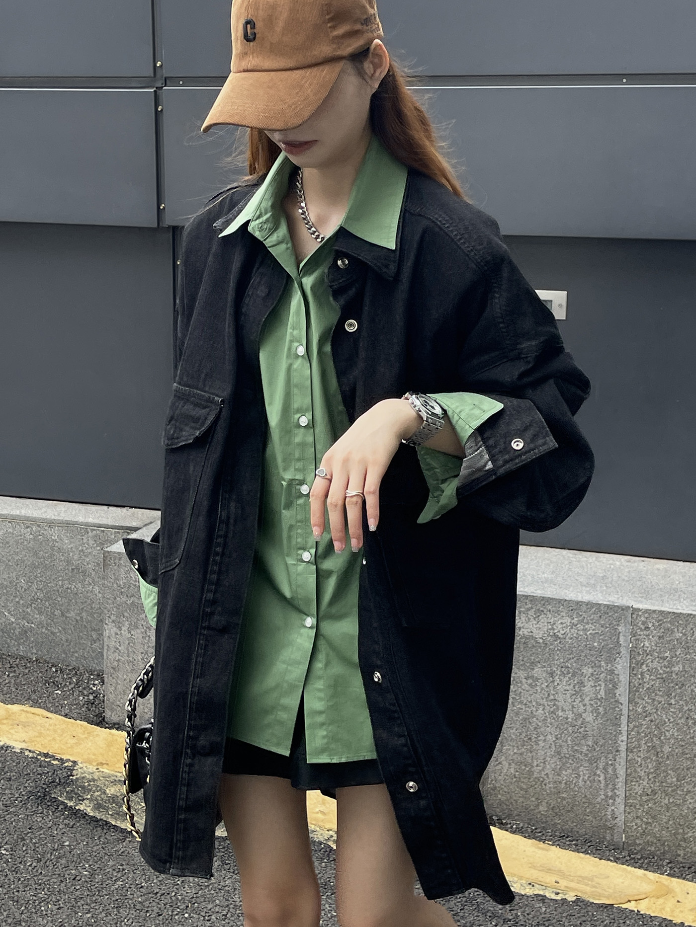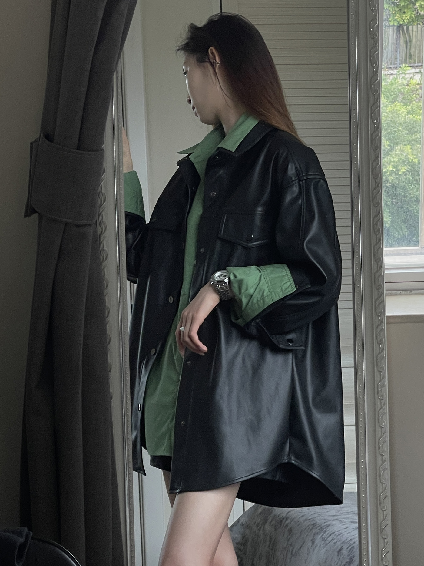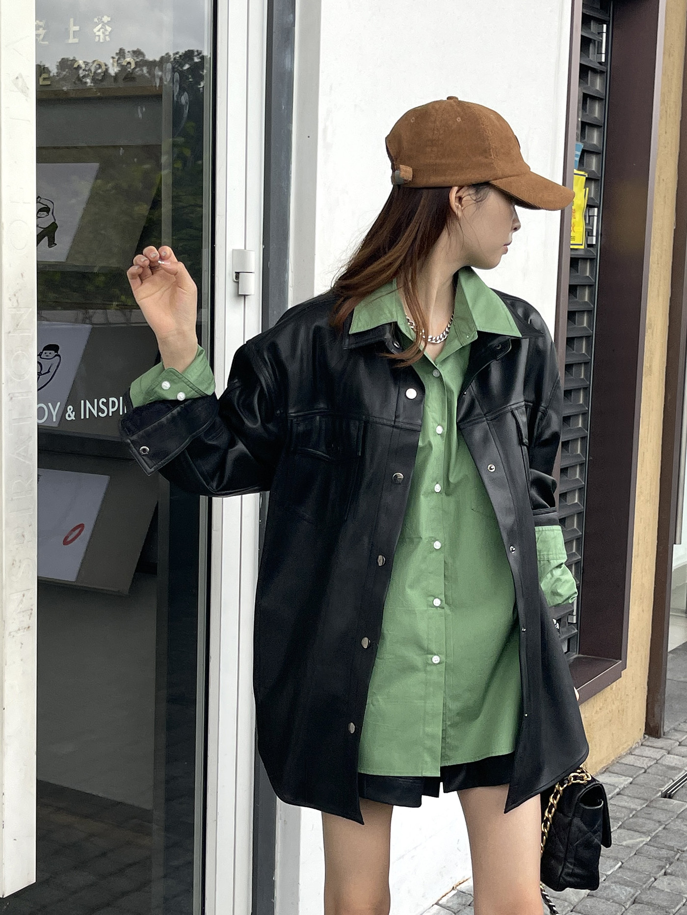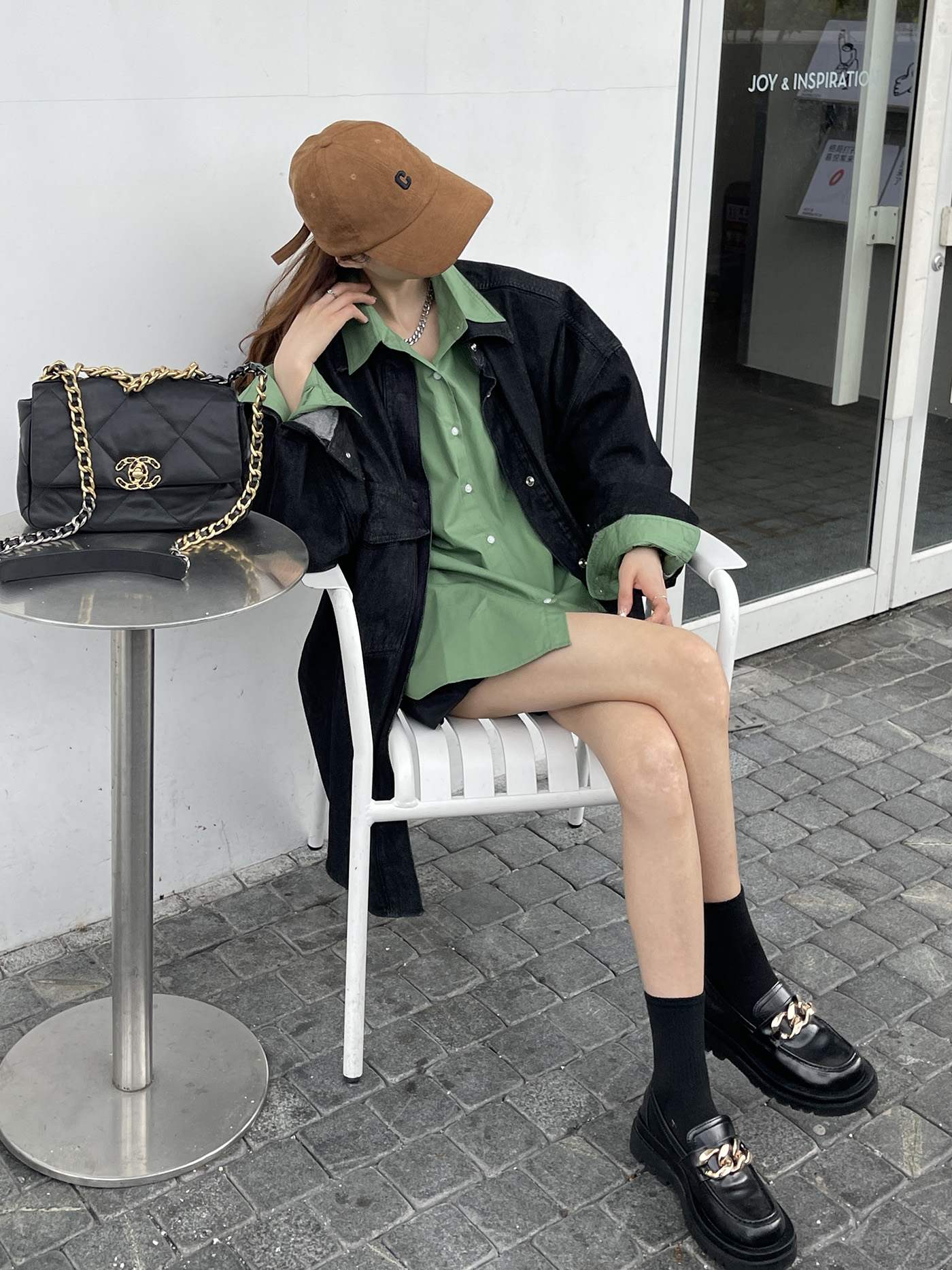 JYCCCCCC綠色休閒長袖襯衫女2023春季新款寬鬆高級感防曬氣質上衣