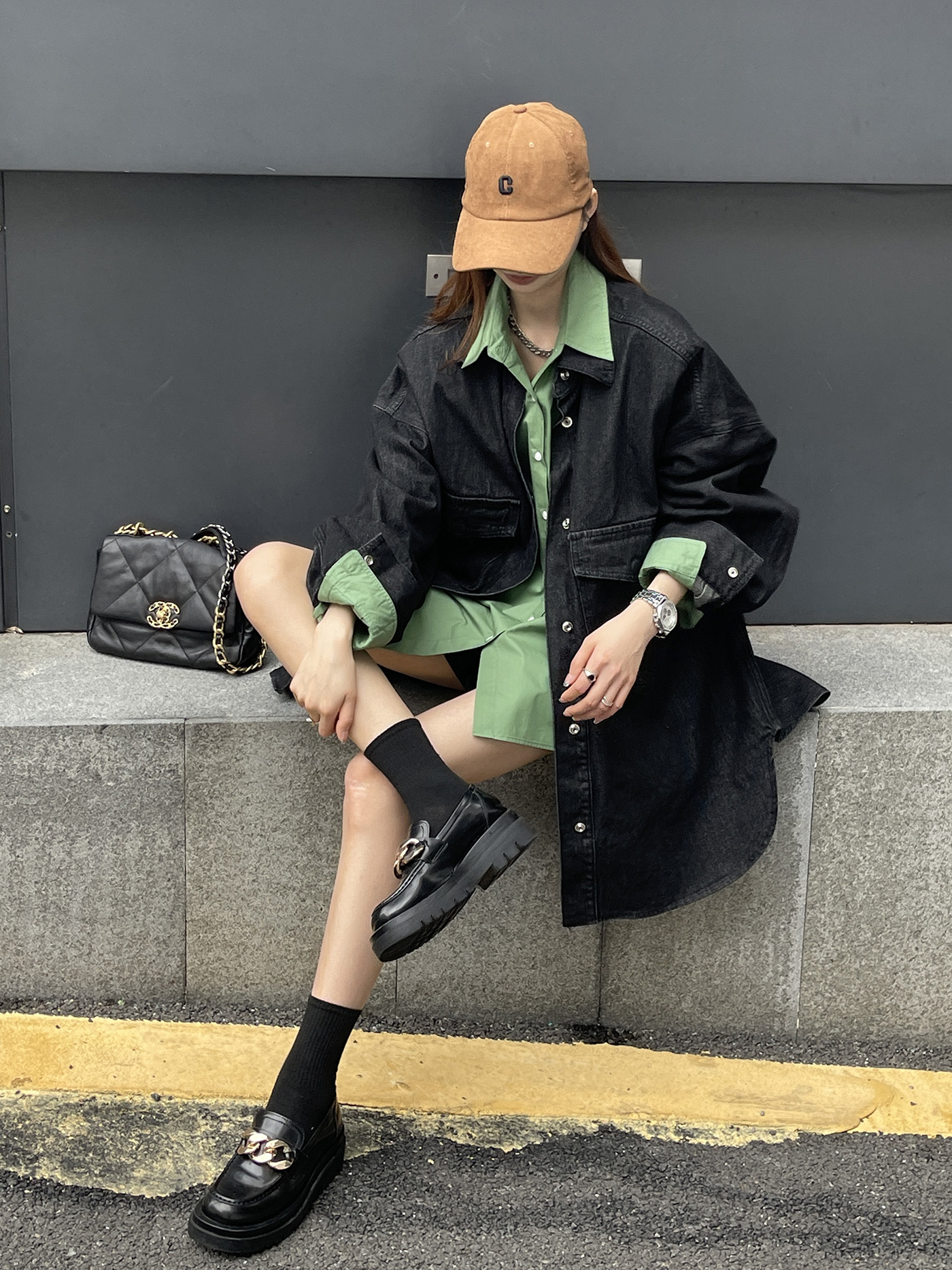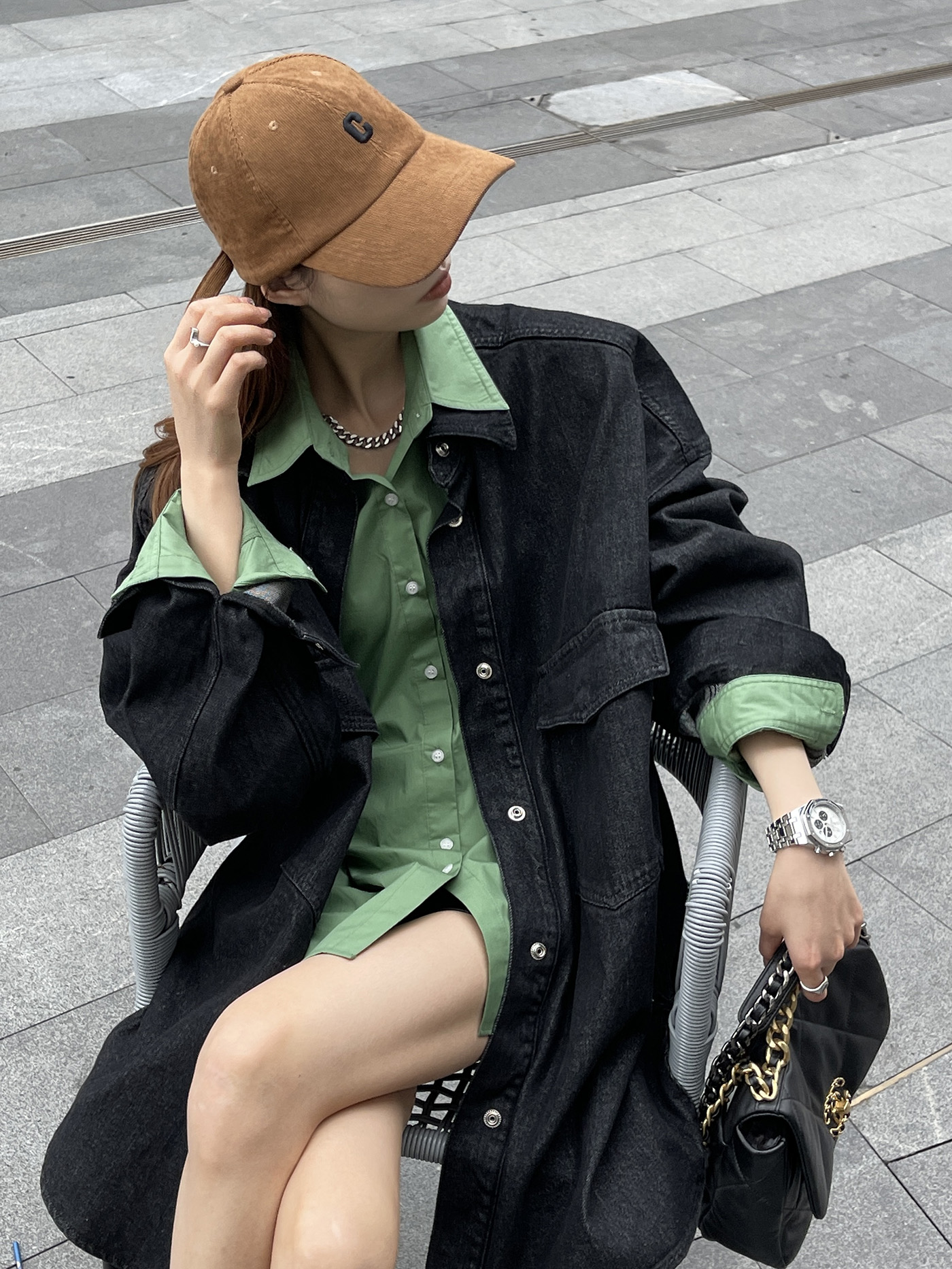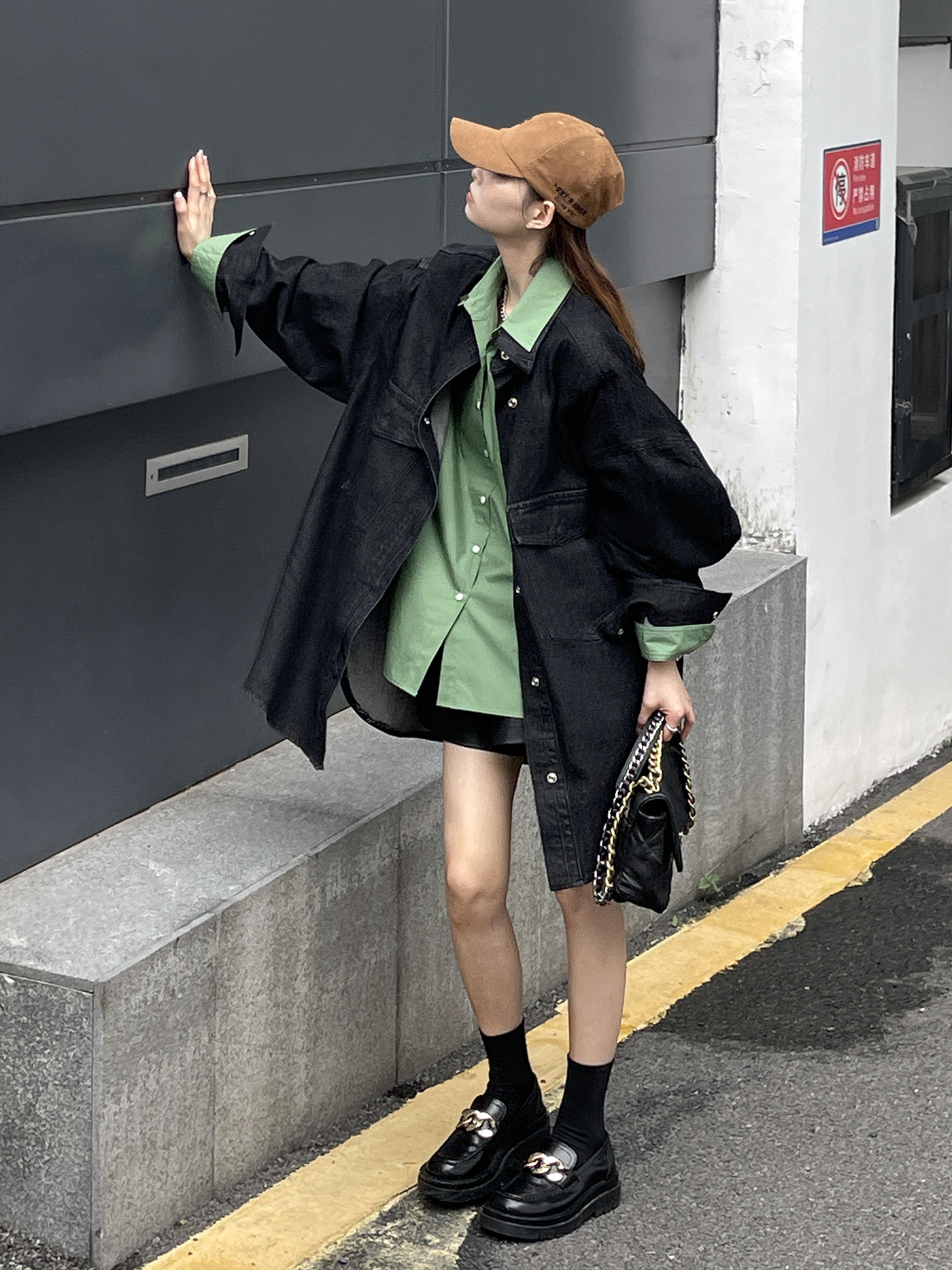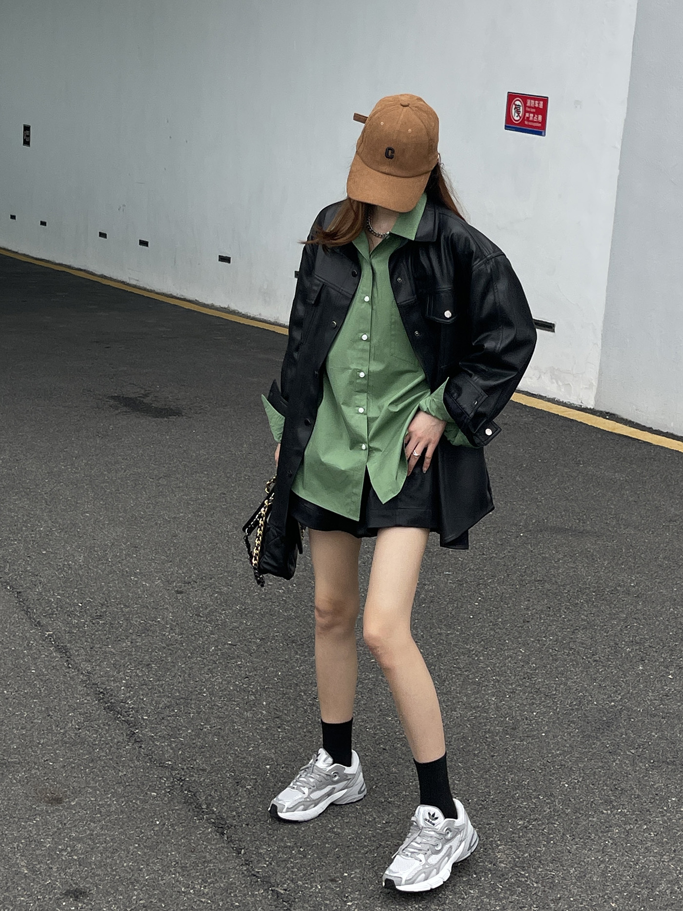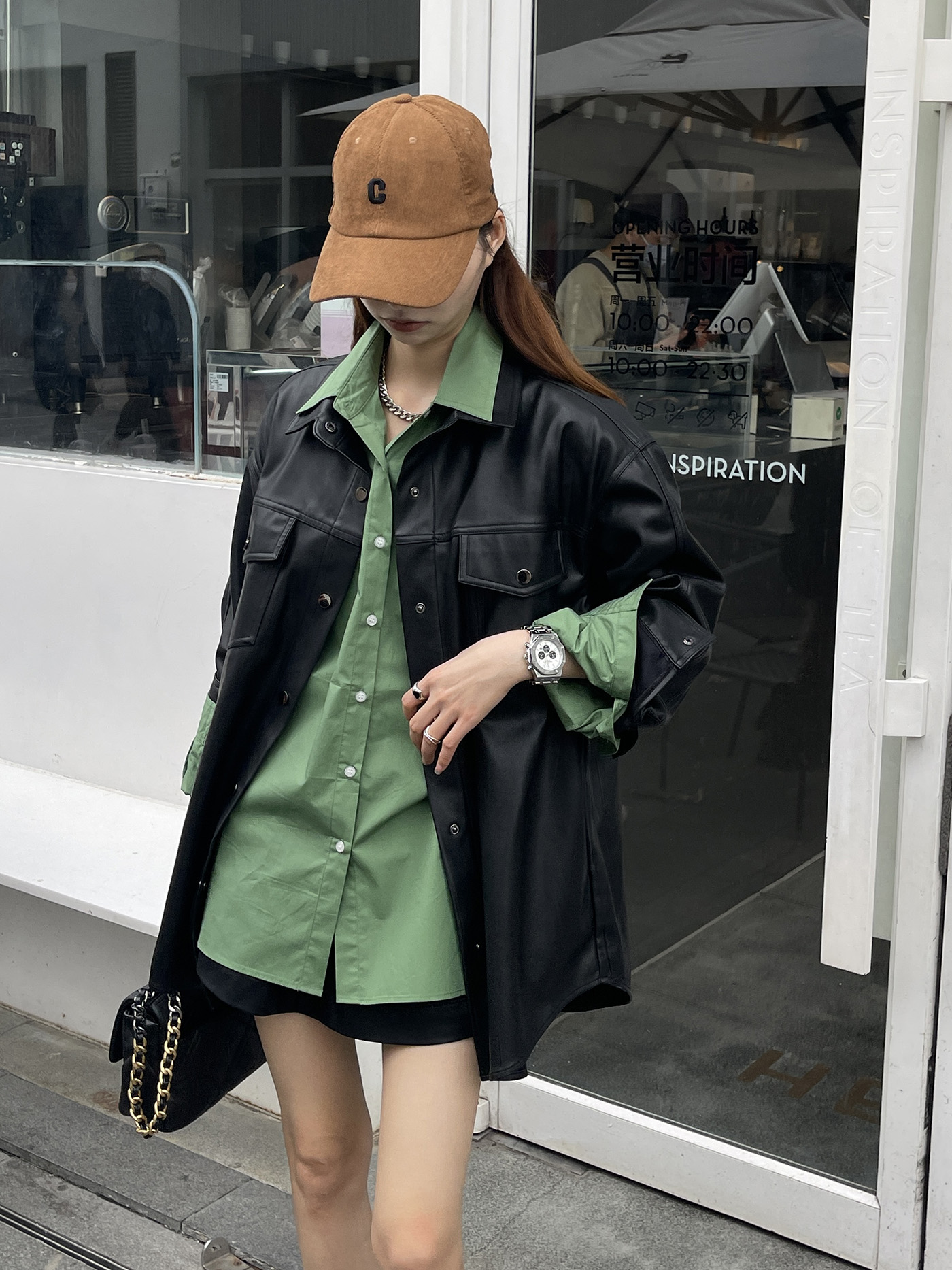 JYCCCCCC綠色休閒長袖襯衫女2023春季新款寬鬆高級感防曬氣質上衣