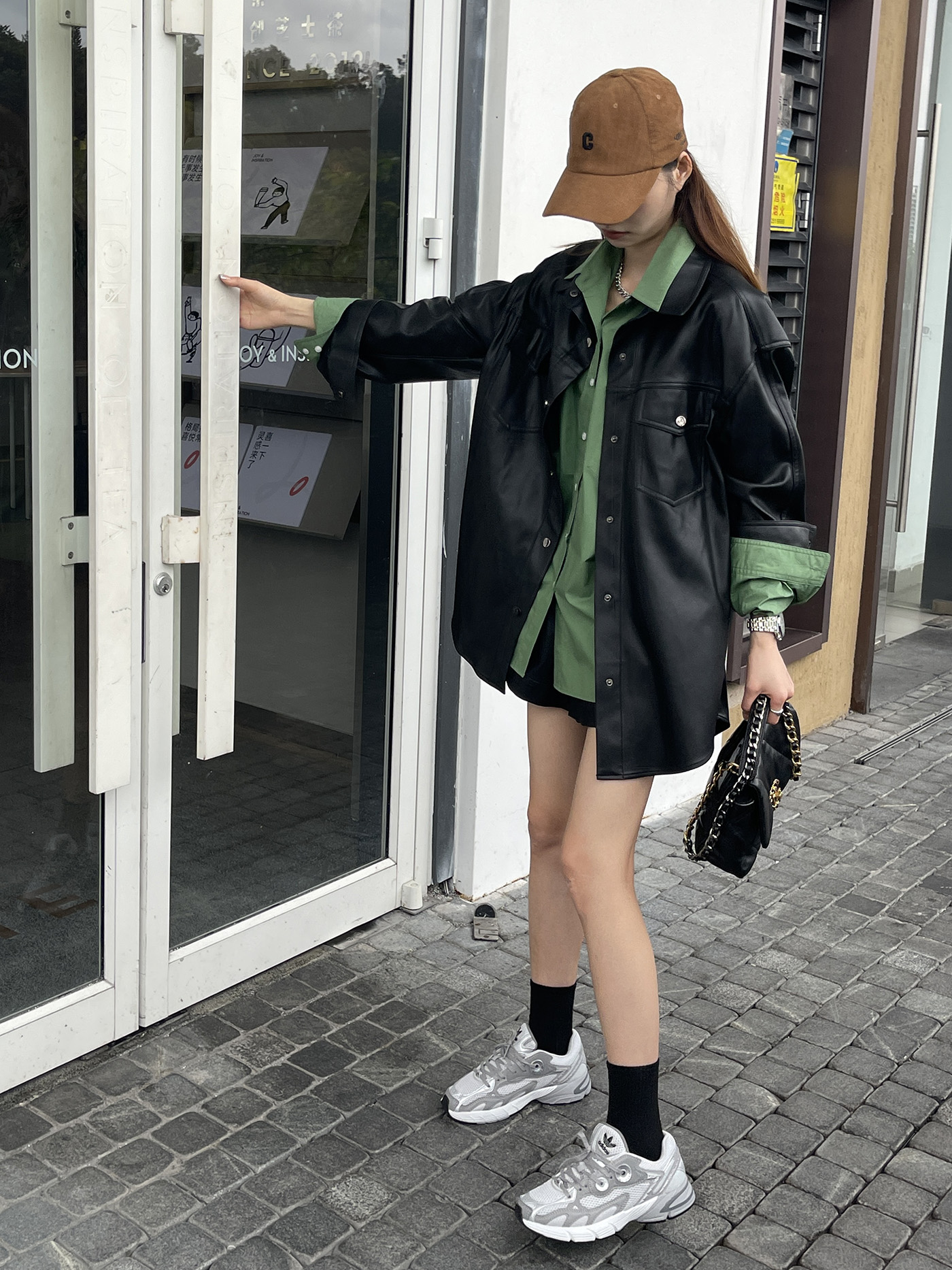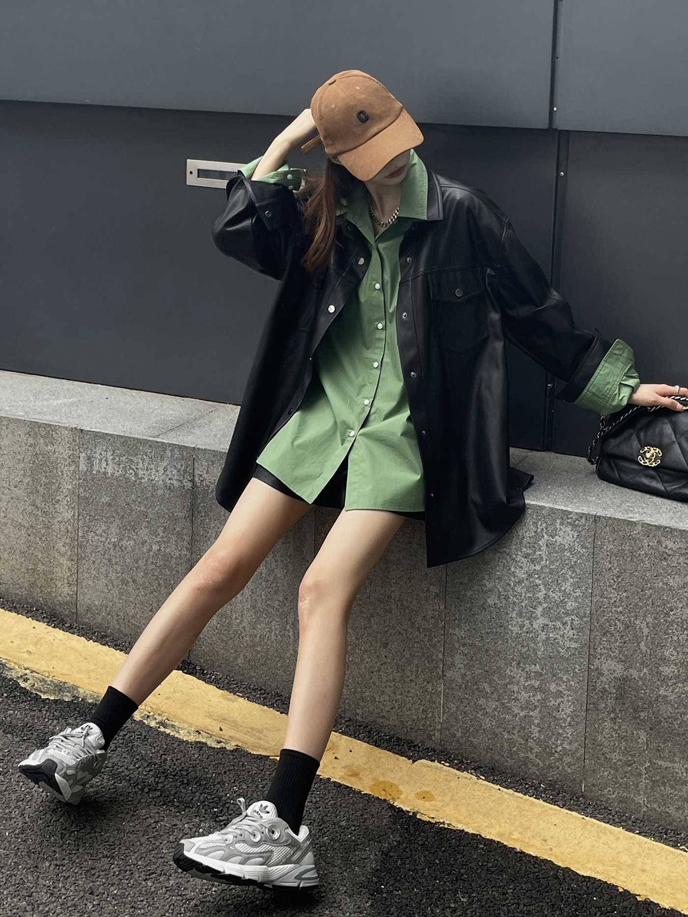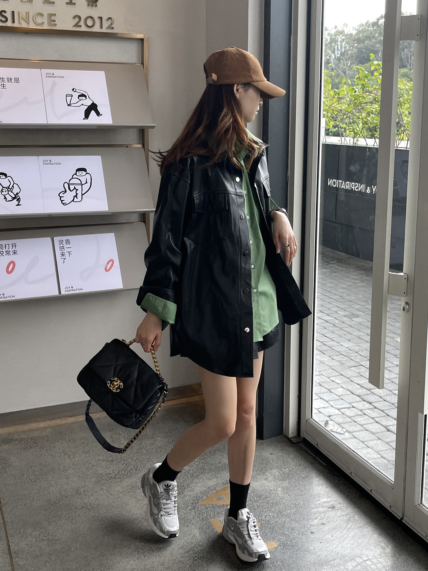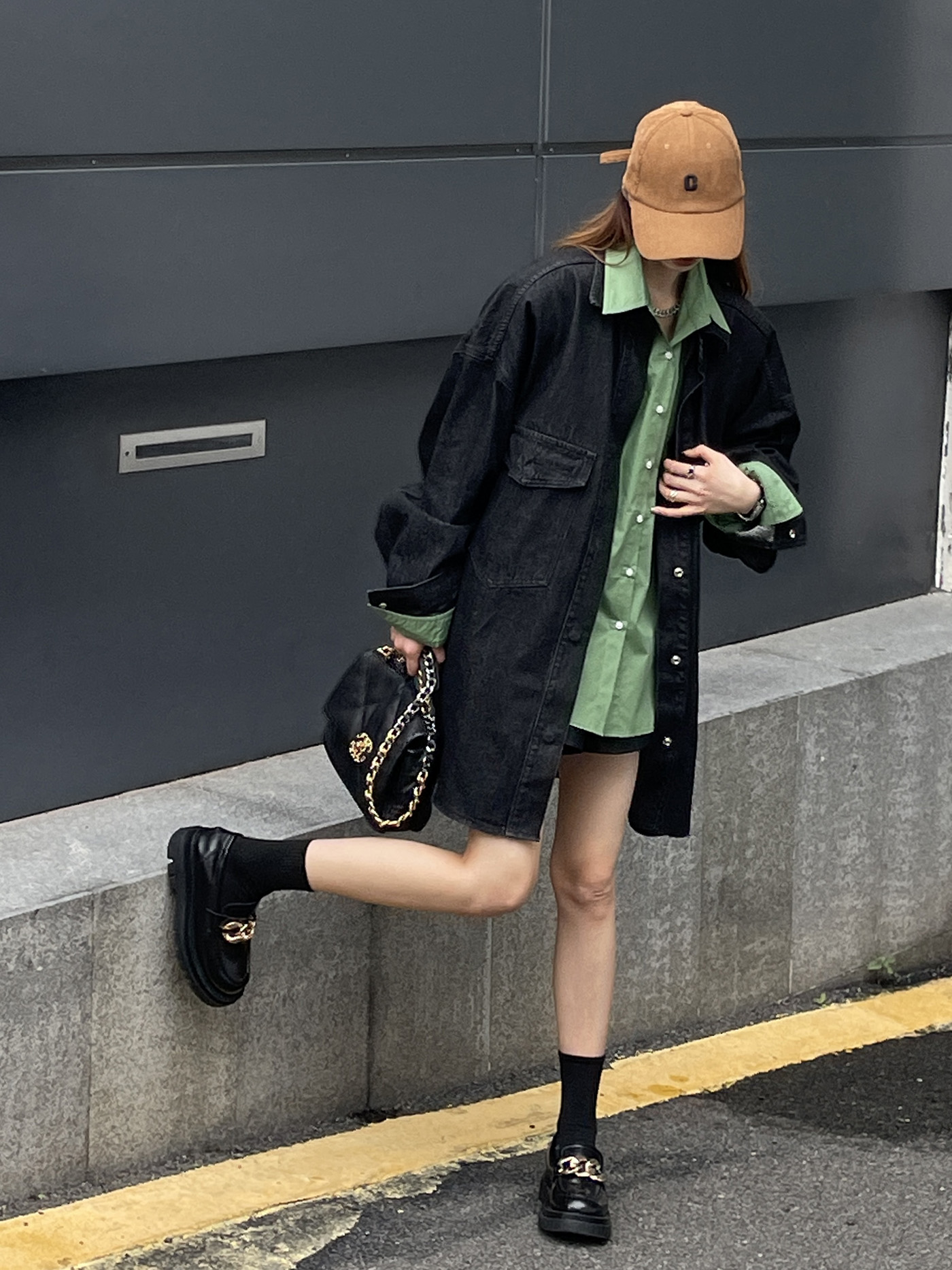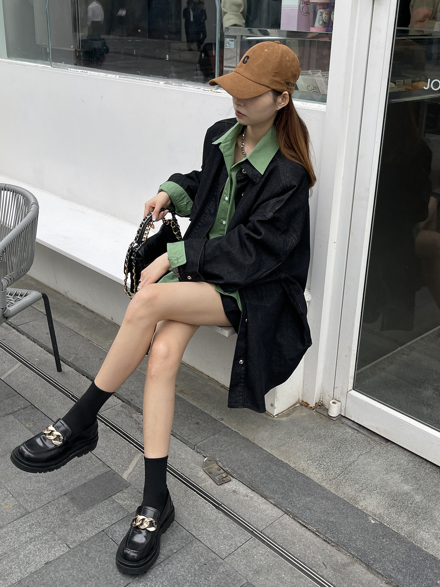 JYCCCCCC綠色休閒長袖襯衫女2023春季新款寬鬆高級感防曬氣質上衣