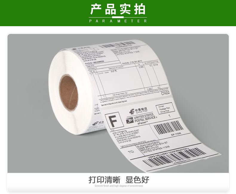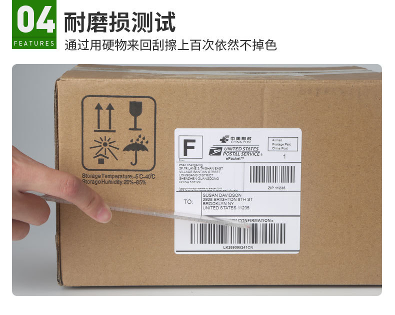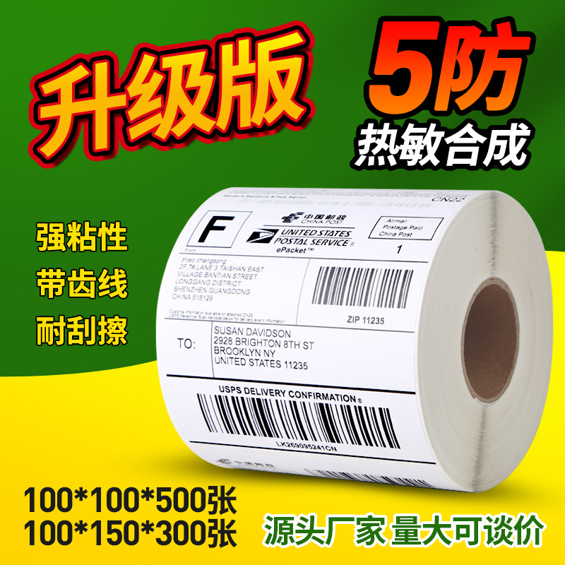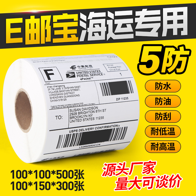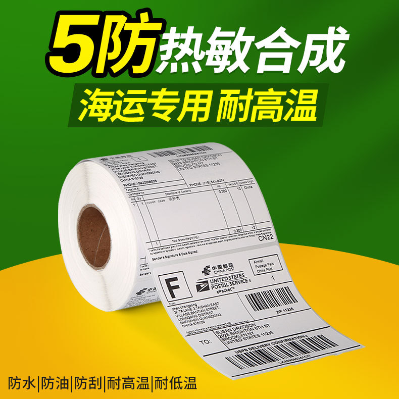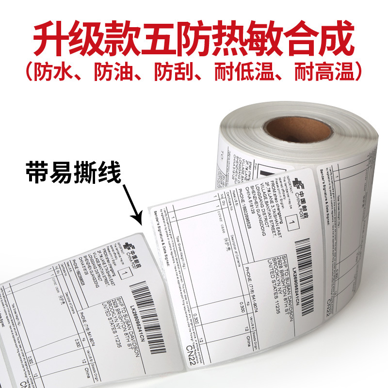 五防热敏合成标签纸100*150*500国际物流条码不干胶打印E邮宝贴纸