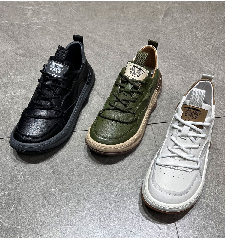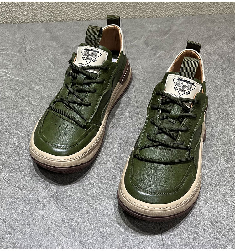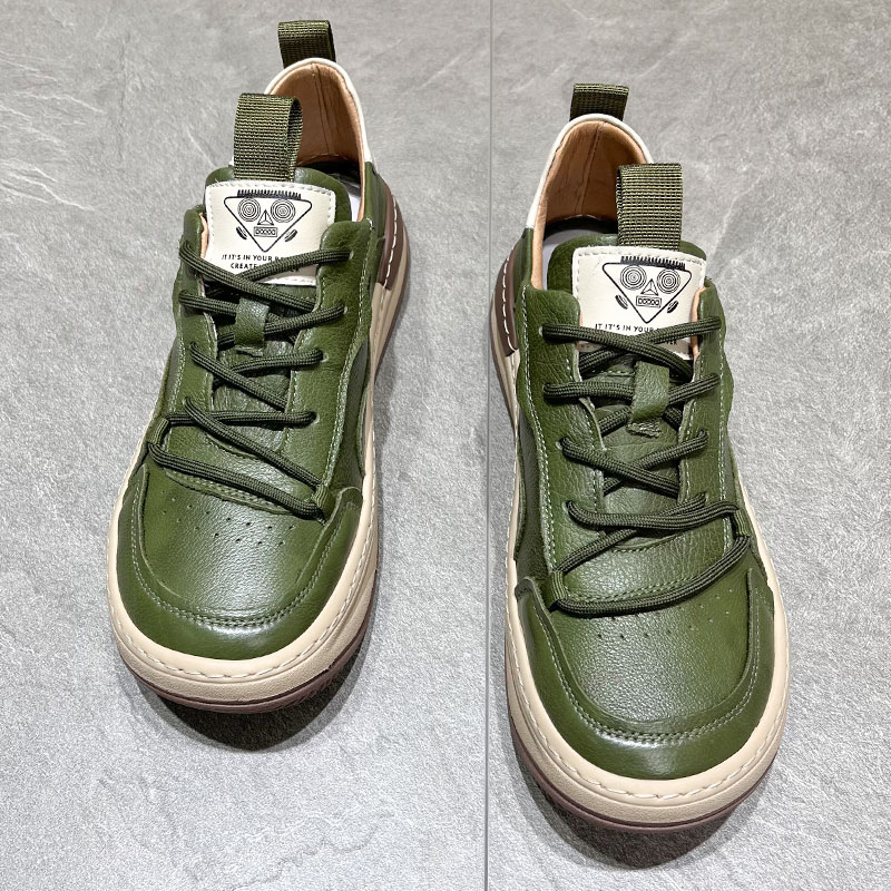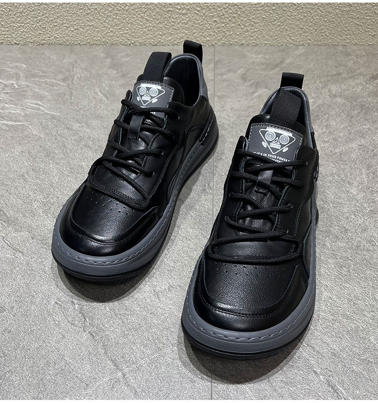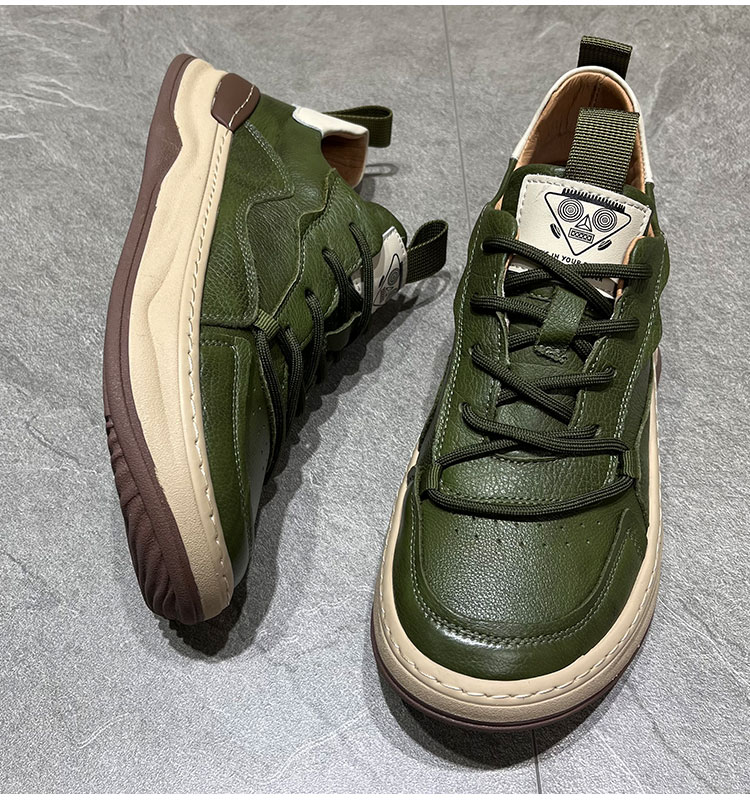春季男鞋2023新款真皮男士休閒鞋設計師小眾歪頭小醜鞋低幫滑板鞋子