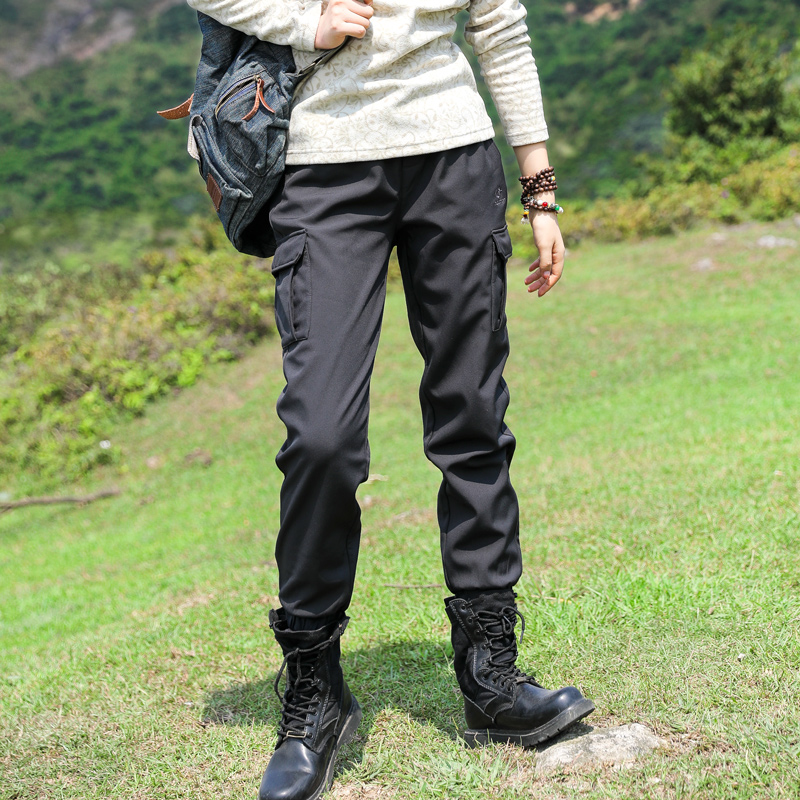 戶外多袋衝鋒褲女加厚寬鬆抓絨軟殼褲女防風防水保暖登山長褲秋冬