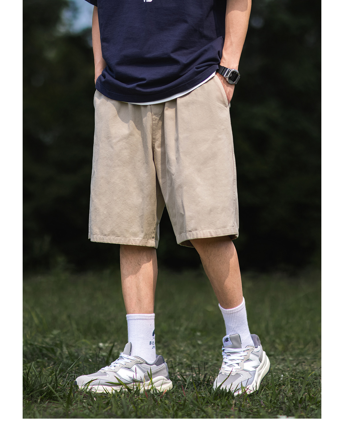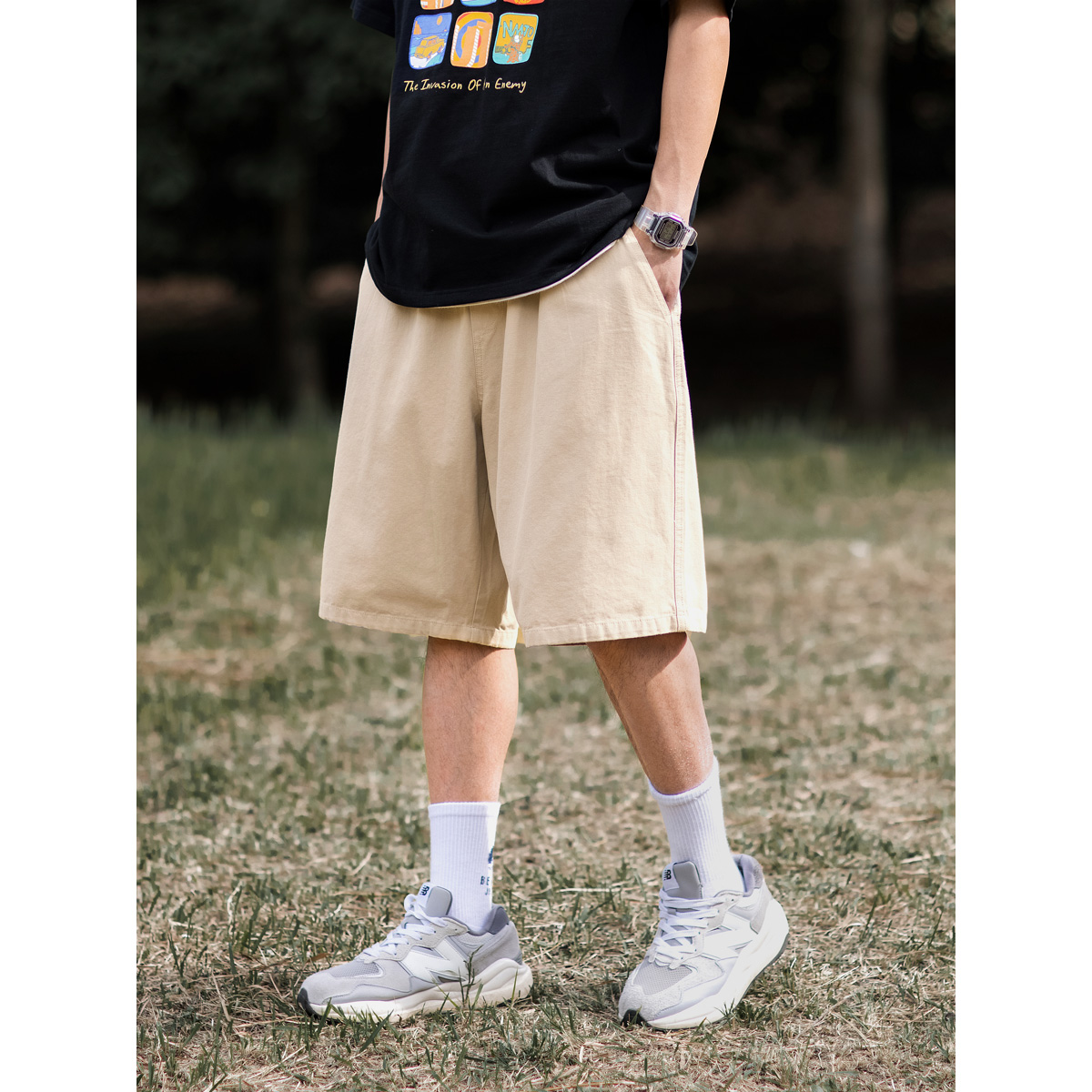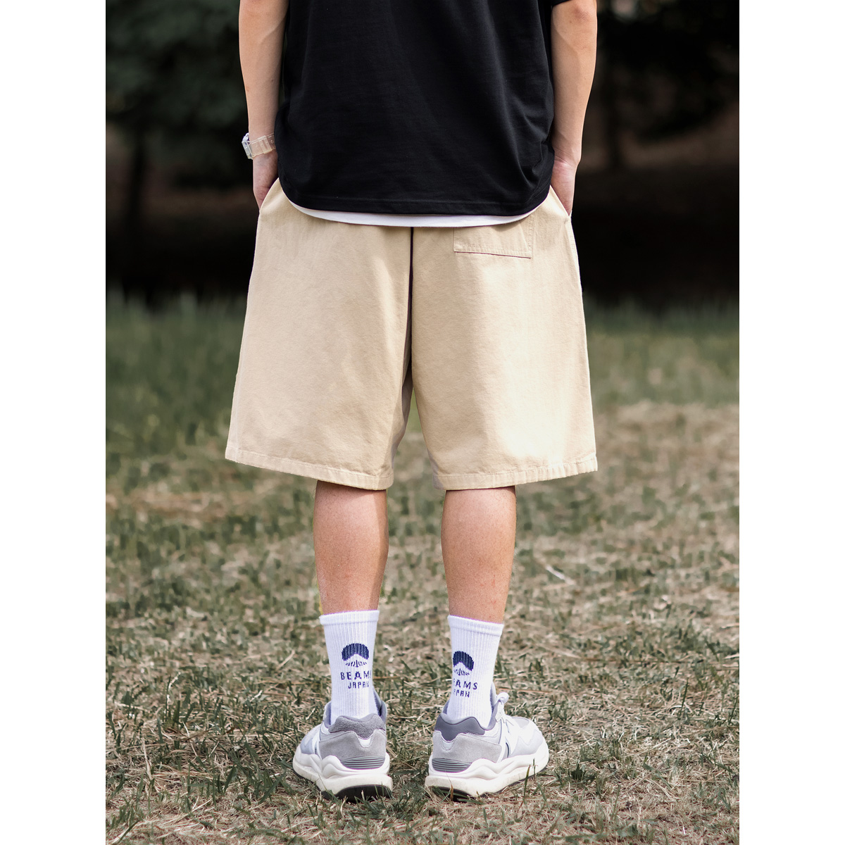 BDLS 日系cityboy基礎款純色抽繩短褲男夏季新款寬鬆休閒五分褲子