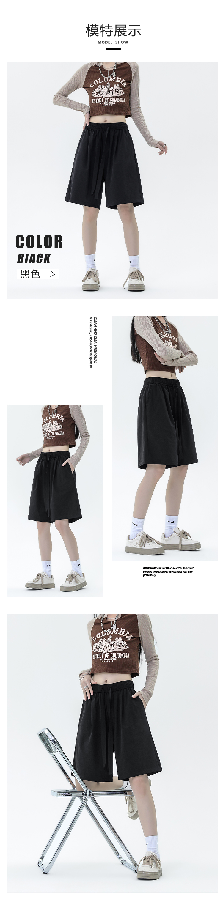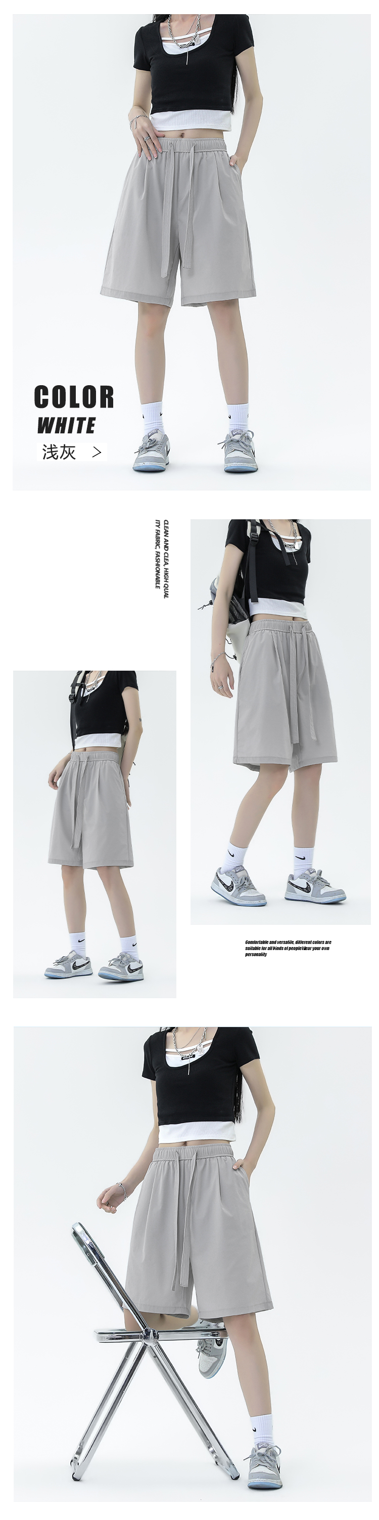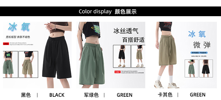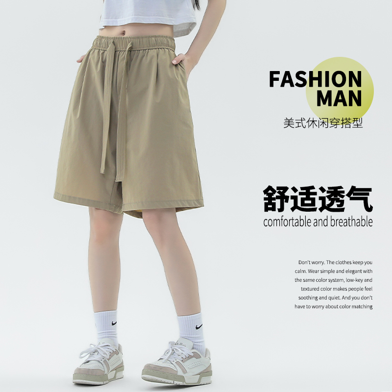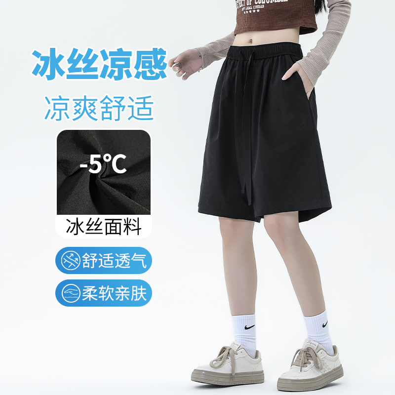 冰絲闊腿短褲女夏季薄款梨形身材小個子褲子顯高休閒直筒五分五分褲