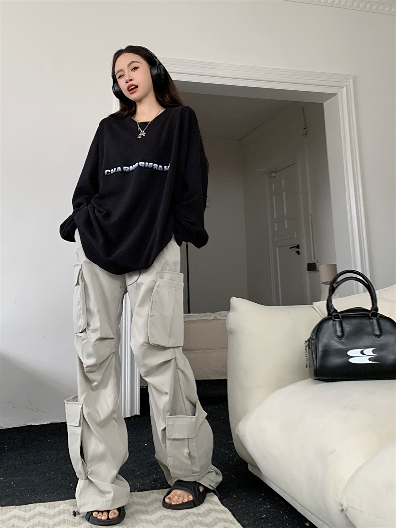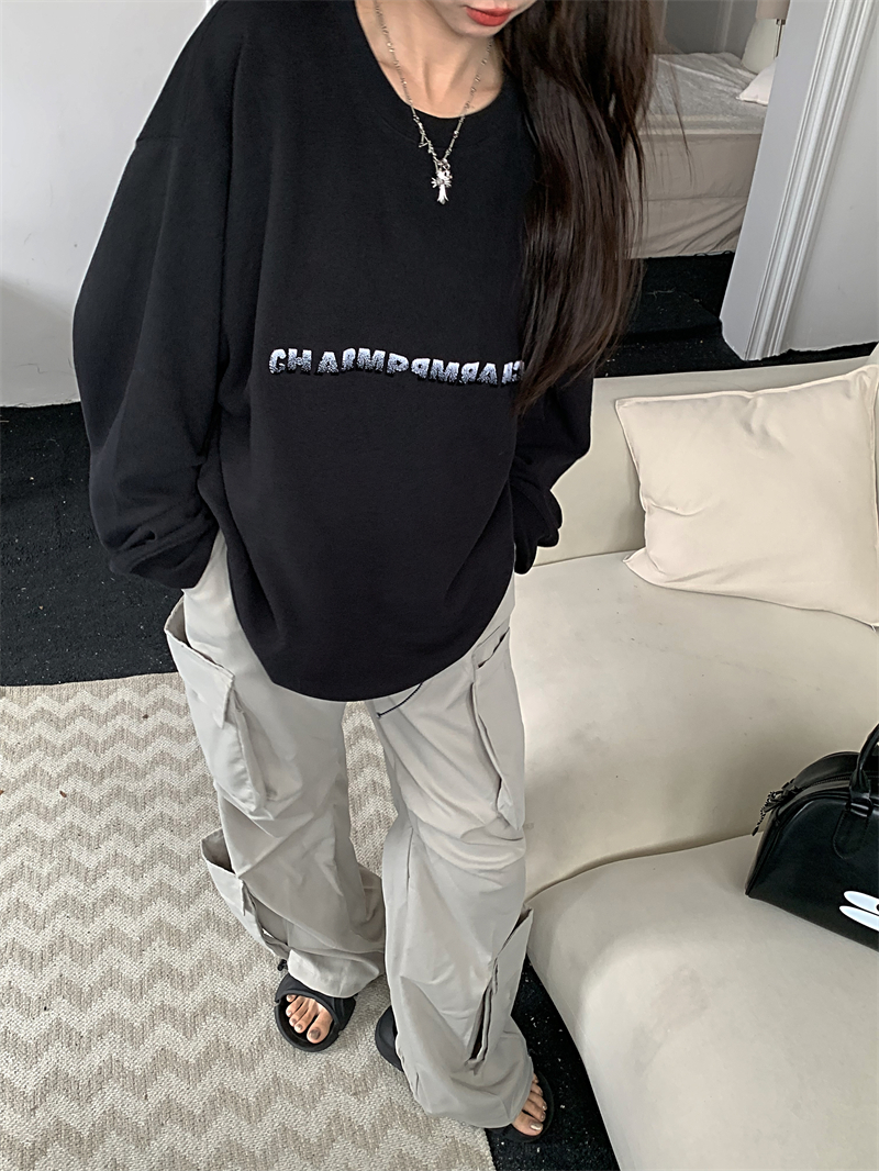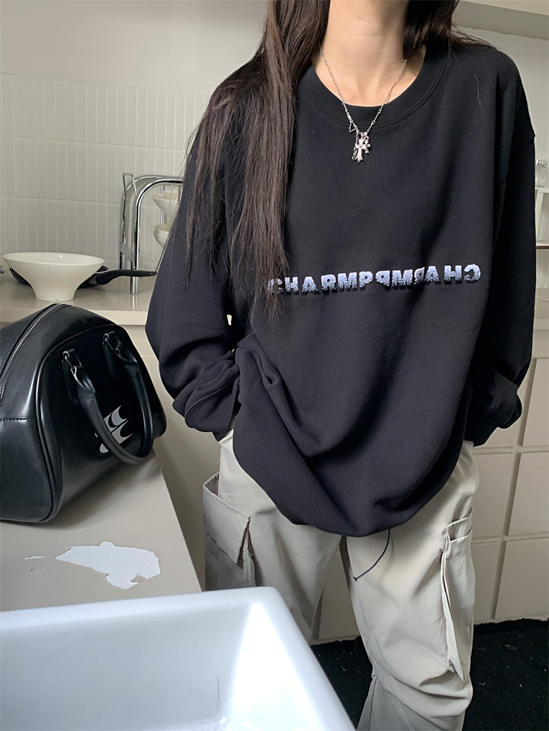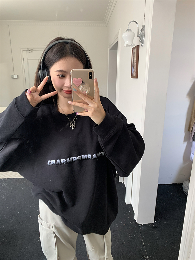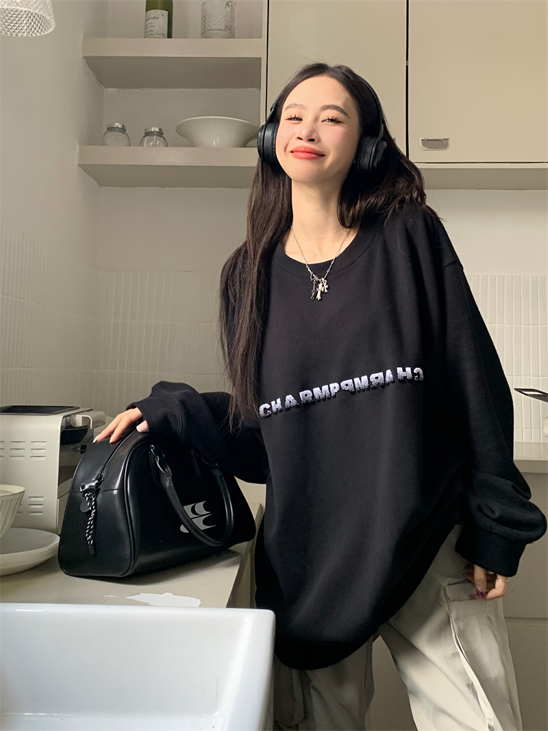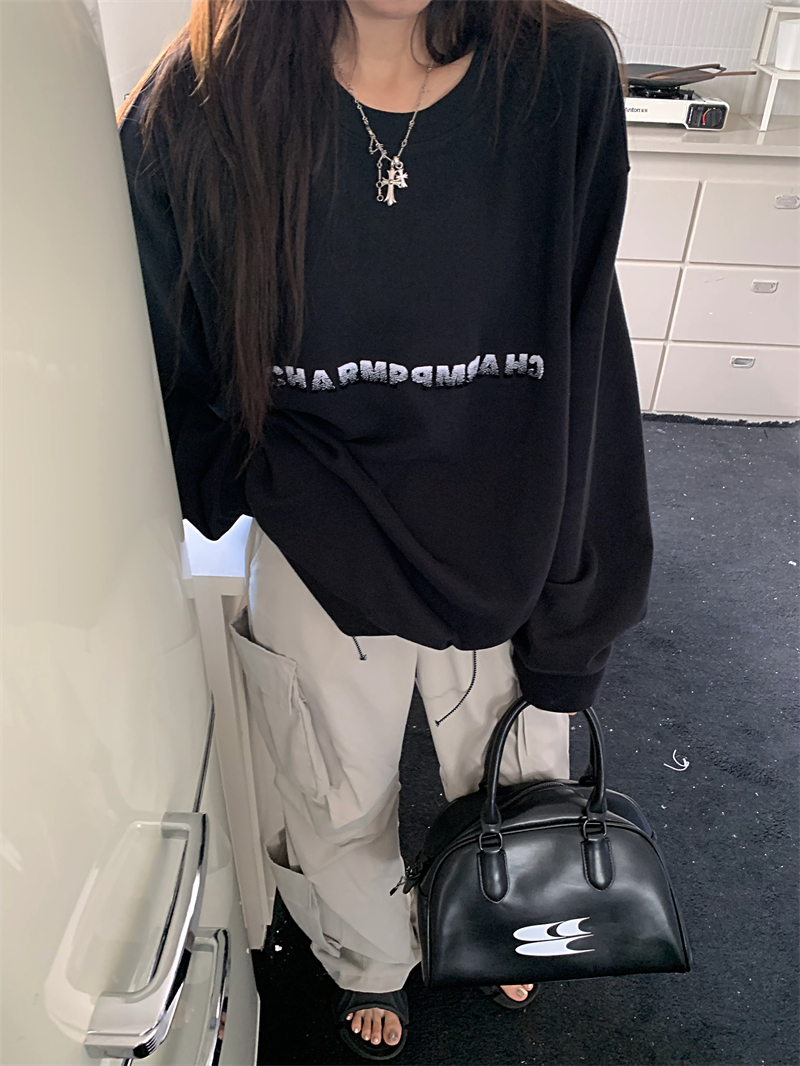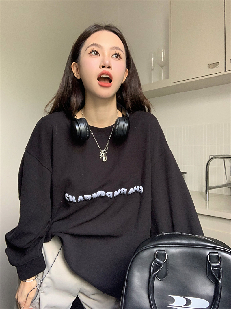 慵懶風休閒厚棉外套女秋季黑色中長版寬鬆顯瘦美式長袖上衣ins潮