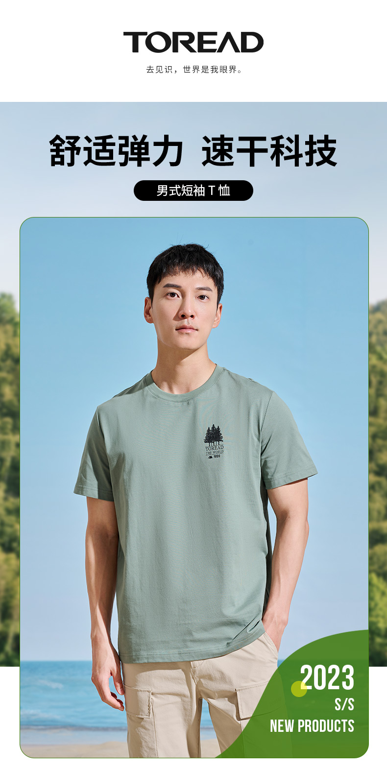 探路者T恤2023新款蜂巢仿生透氣男女戶外登山徒步速乾運動短袖