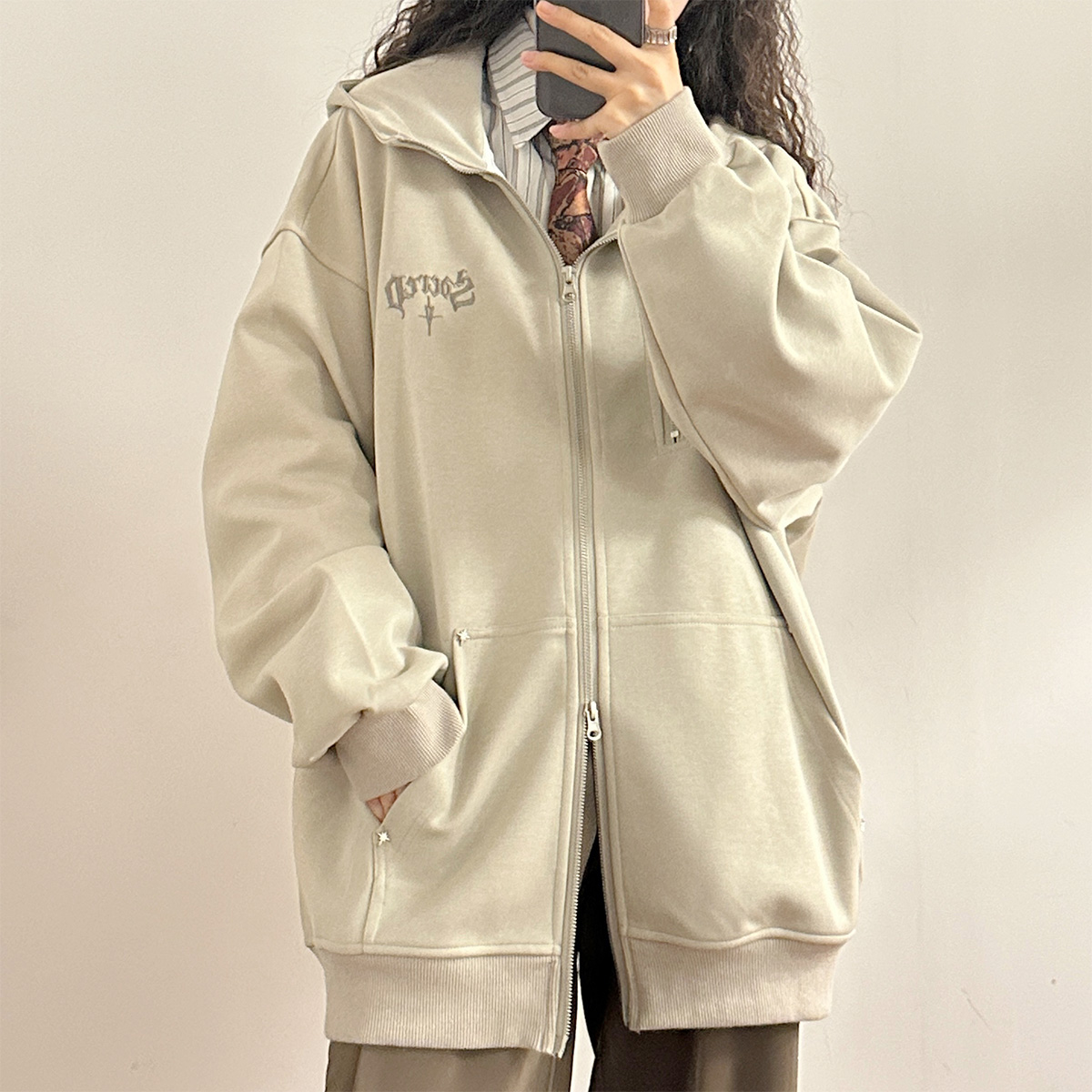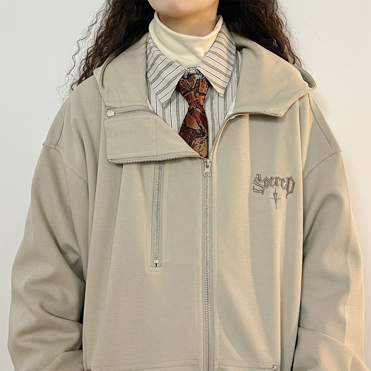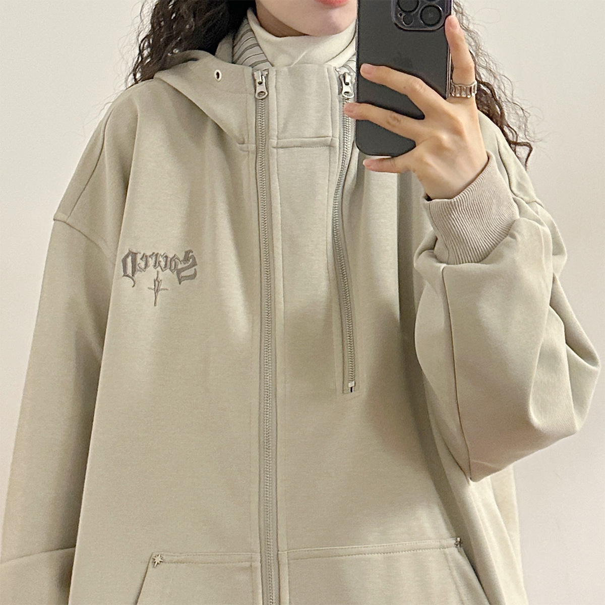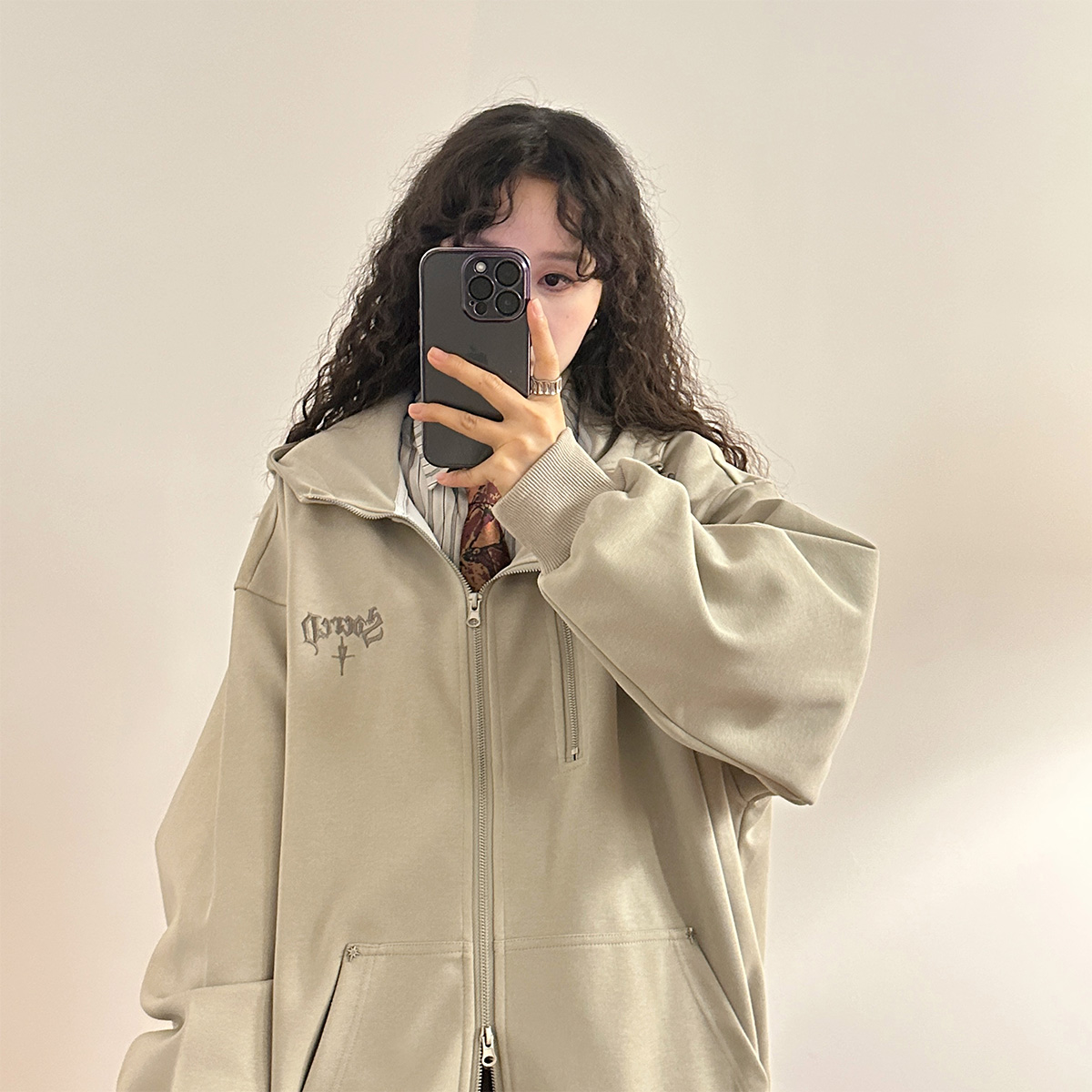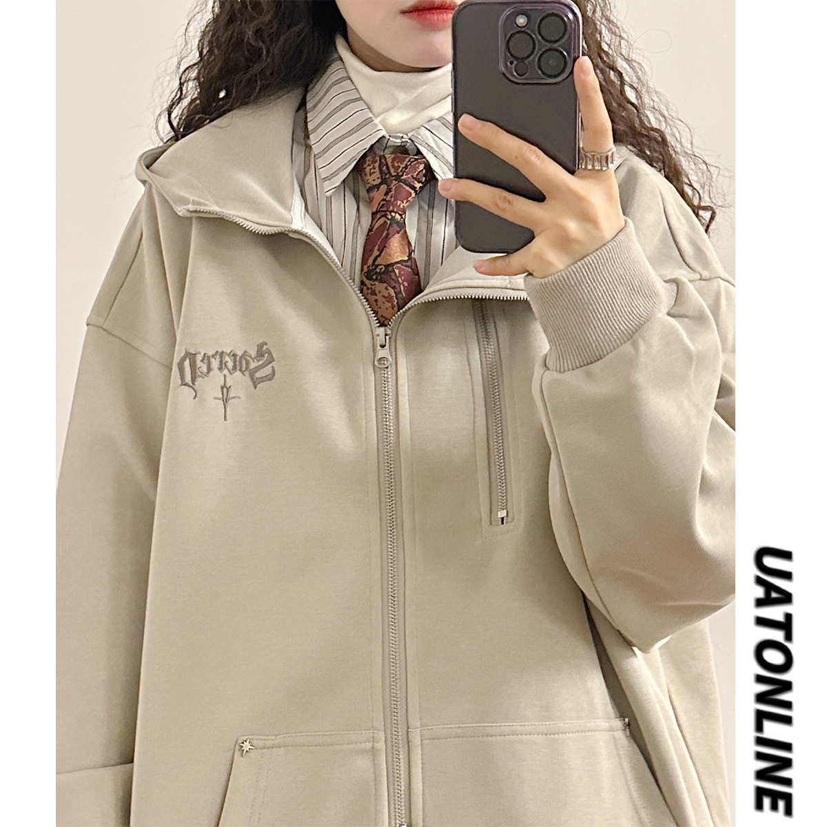 UATONLINE春秋美式復古日系cityboy設計感拉鍊開衫無性別衛衣外套