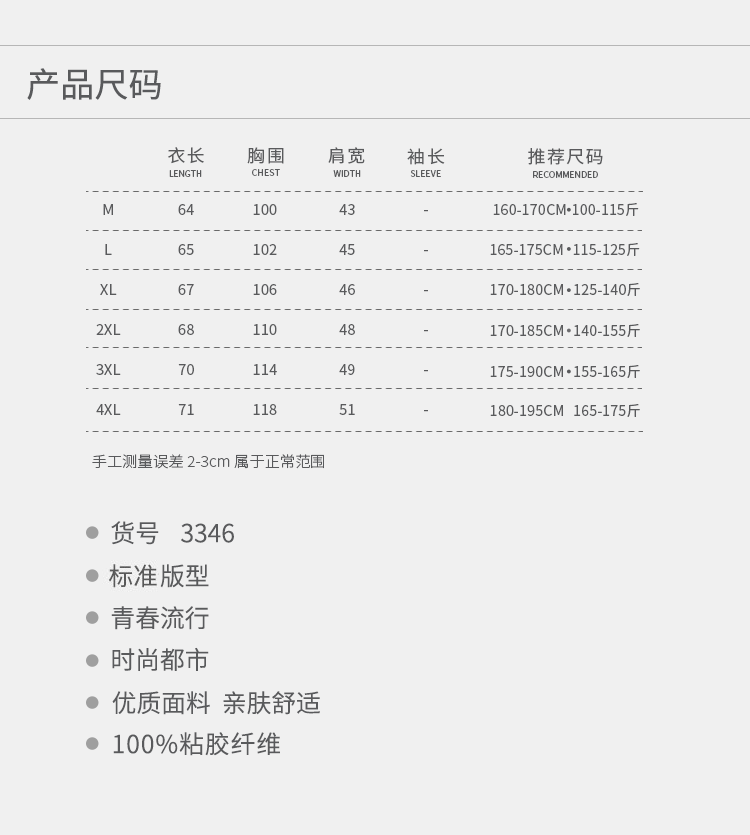 尺碼 M,L,XL,2XL,3XL,4XL,尺碼偏小,建議根據推薦尺碼下單