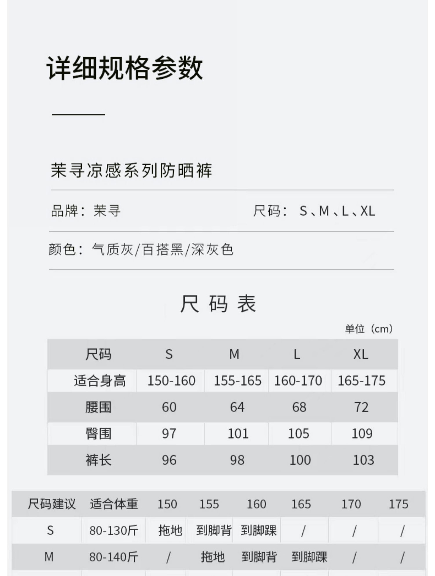 因为防晒裤颜色、尺码比较多