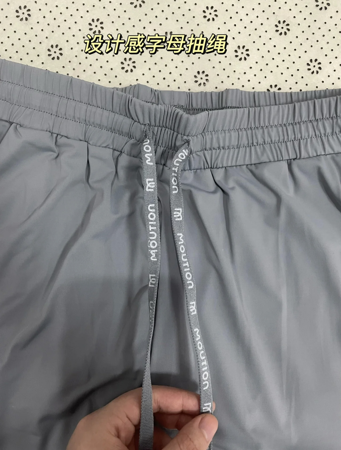 抽绳是字母的设计,裤脚是开衩的