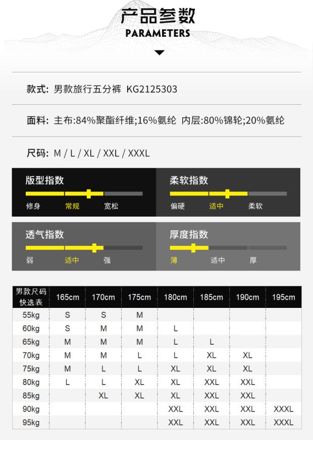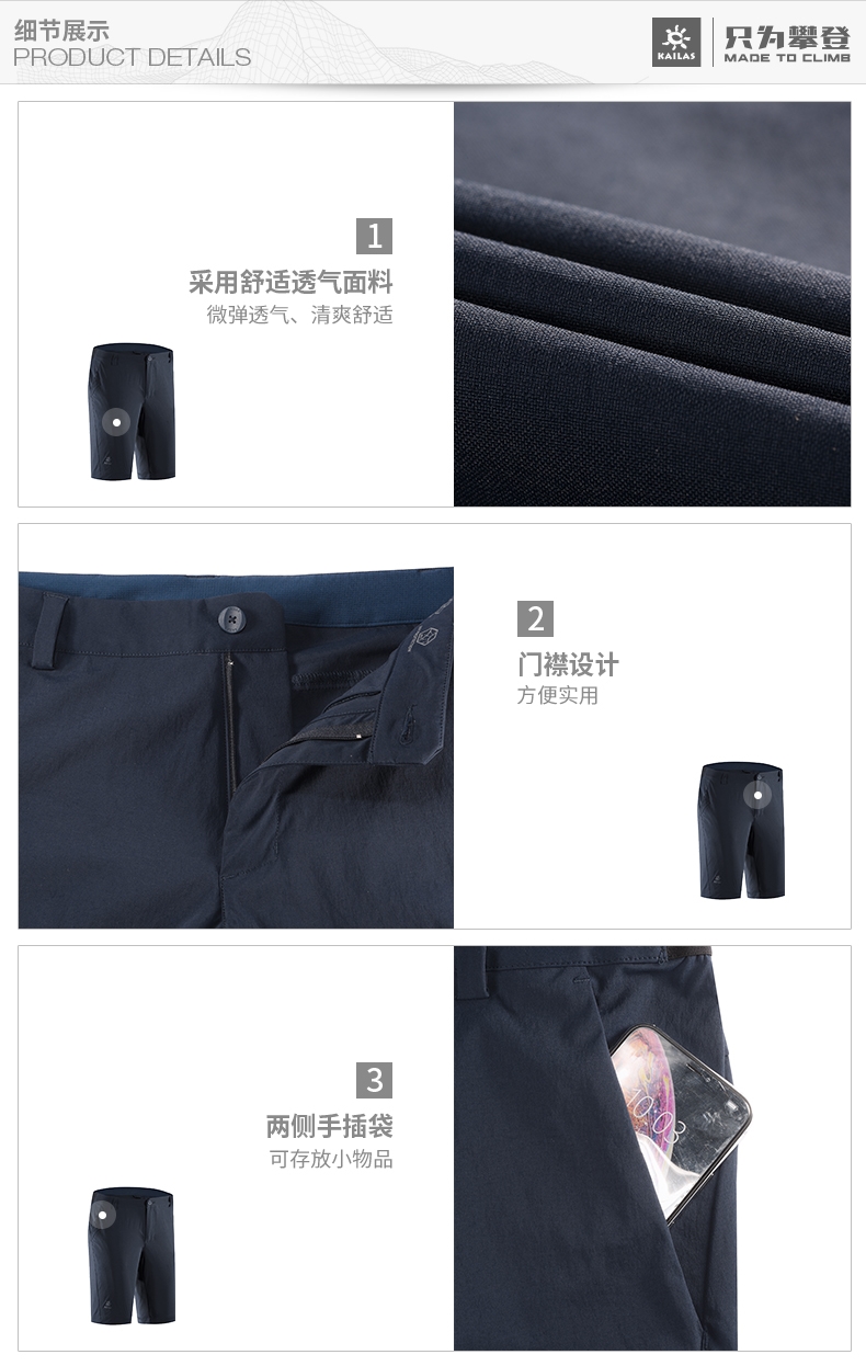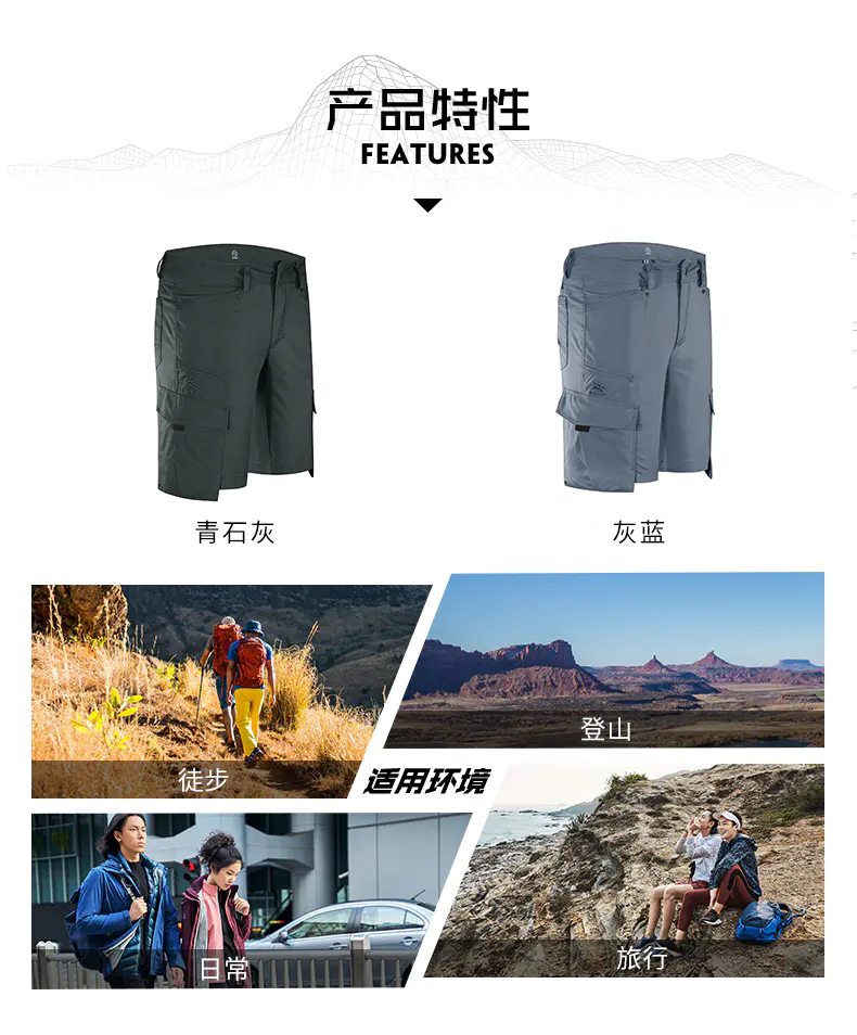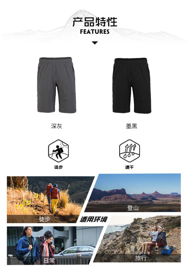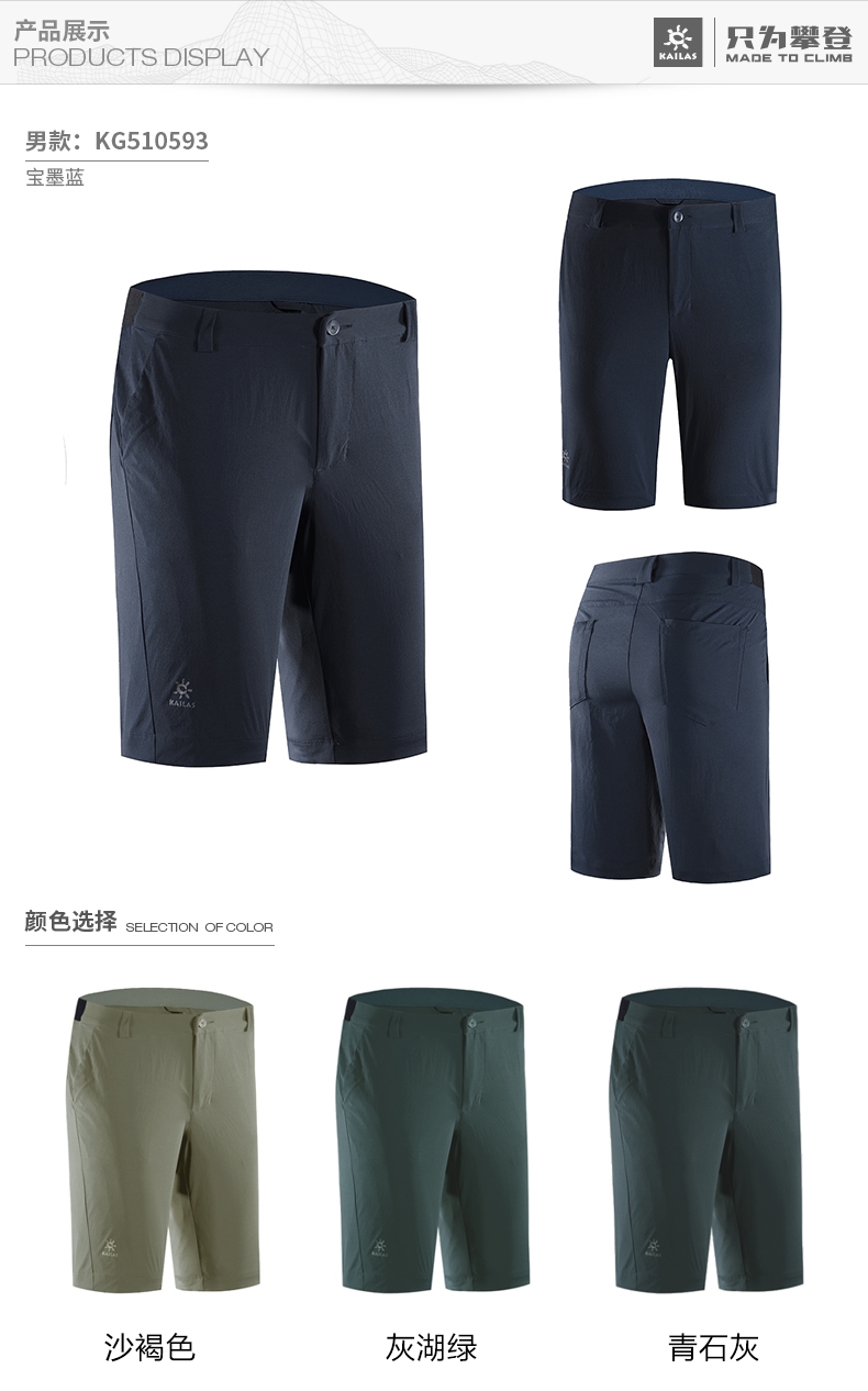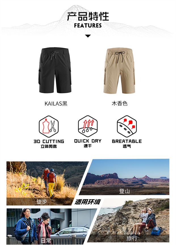 凱樂石戶外運動男女旅行彈力速乾褲快乾透氣五分褲短褲KG10593