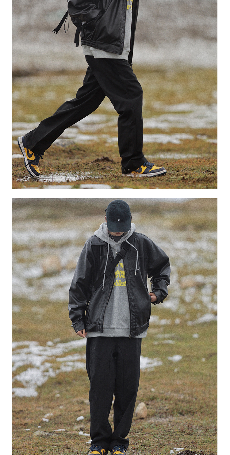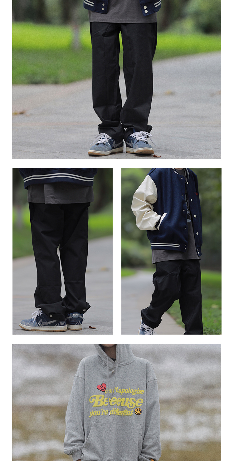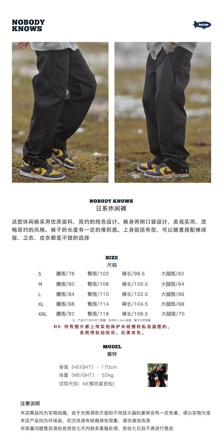 Nobodyknows 日系復古黑色百搭寬鬆高街潮簡約直筒男女長褲休閒褲