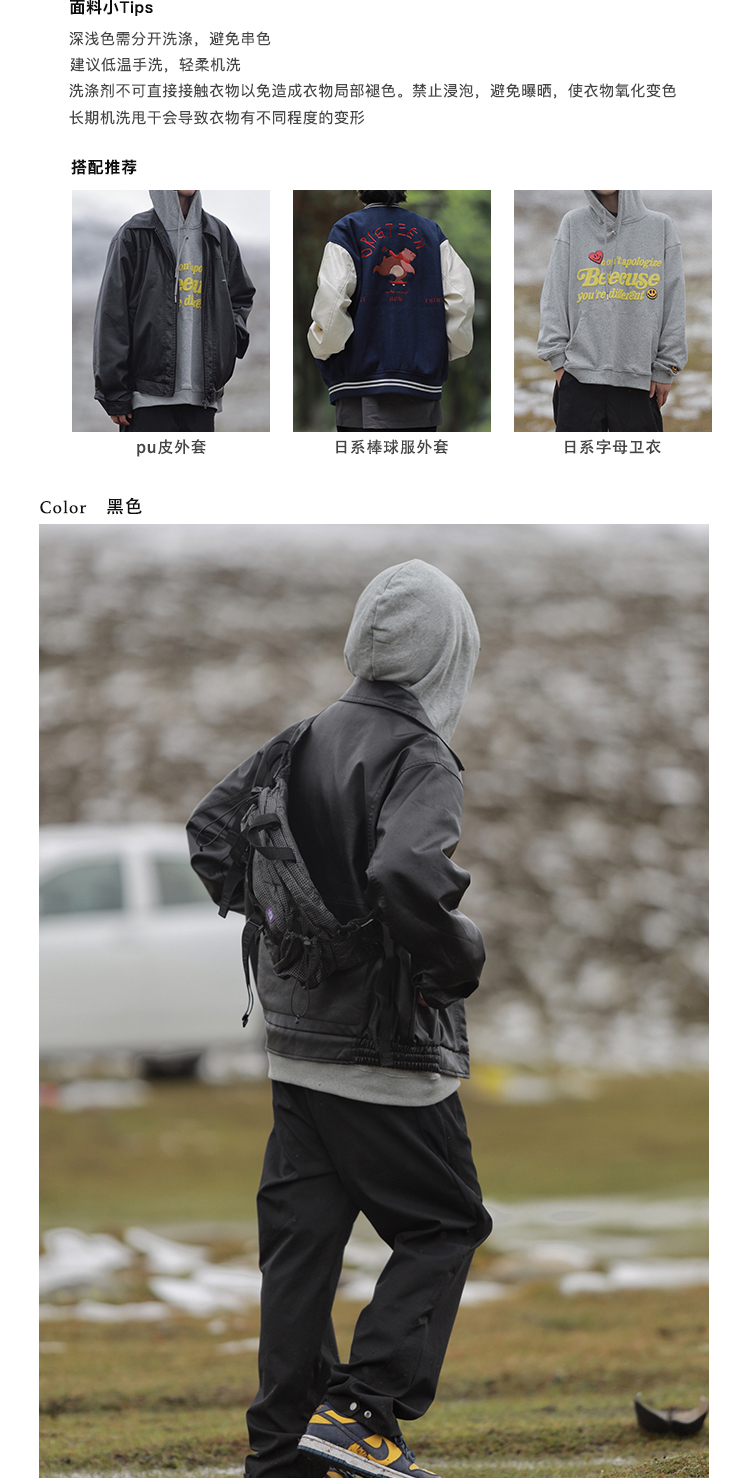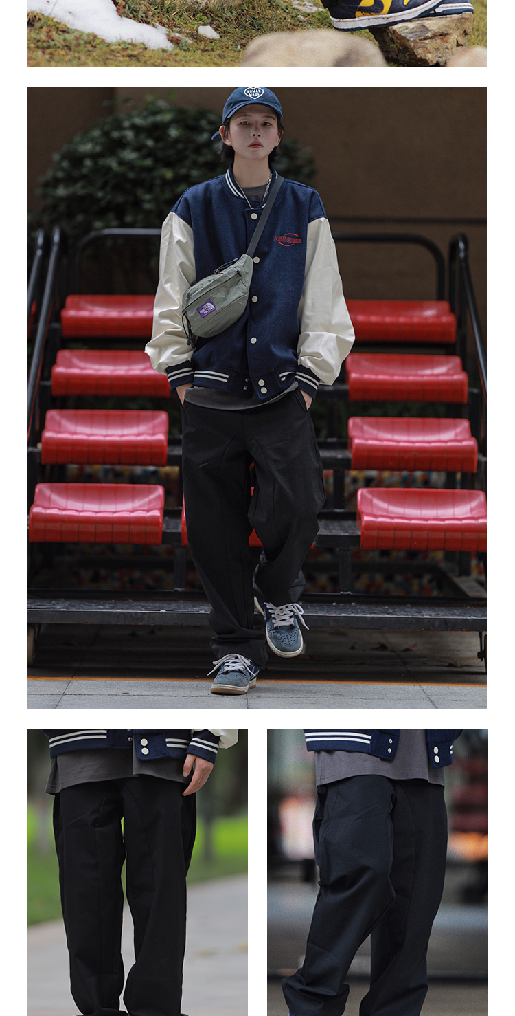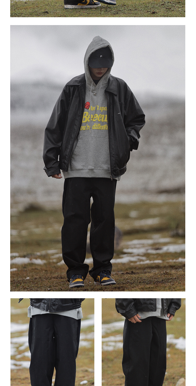 Nobodyknows 日系復古黑色百搭寬鬆高街潮簡約直筒男女長褲休閒褲