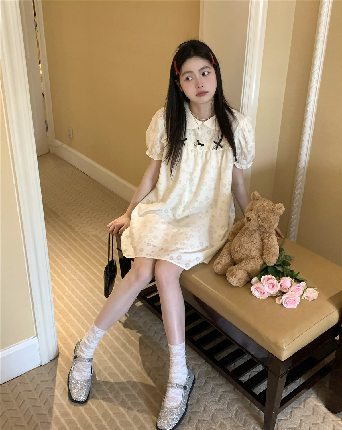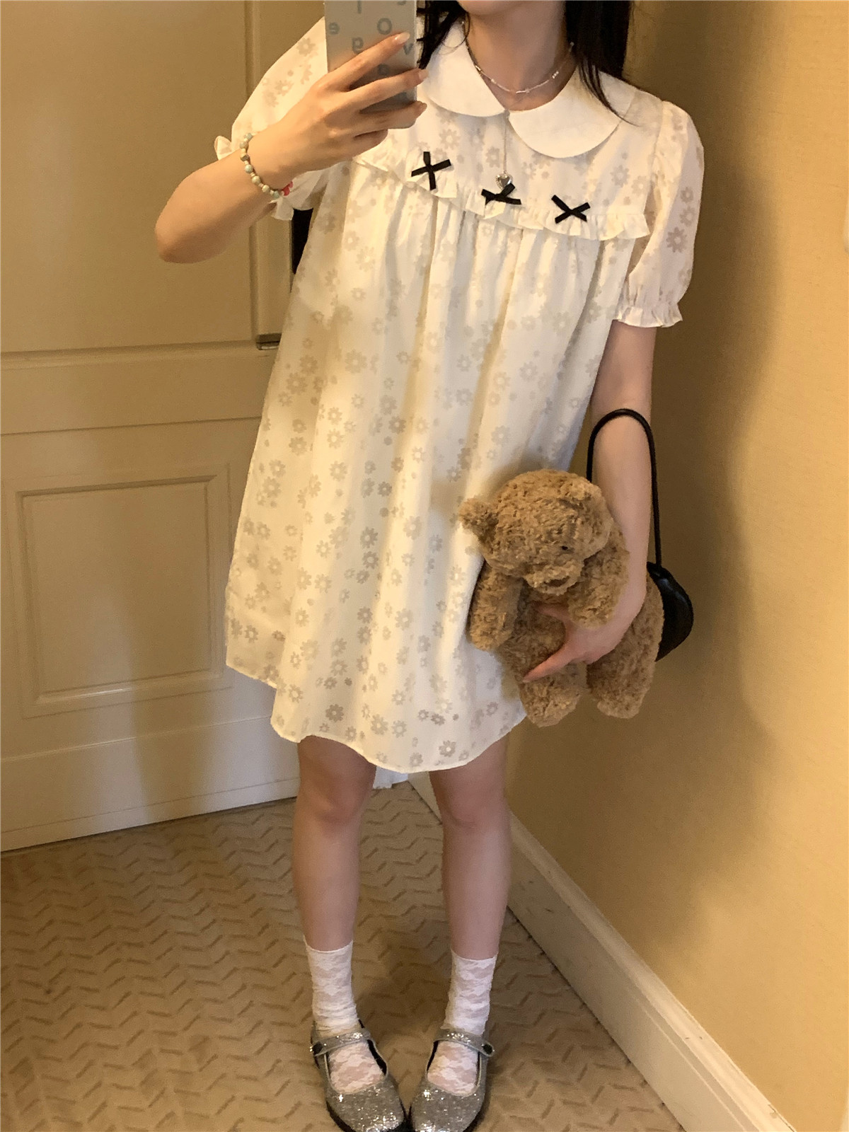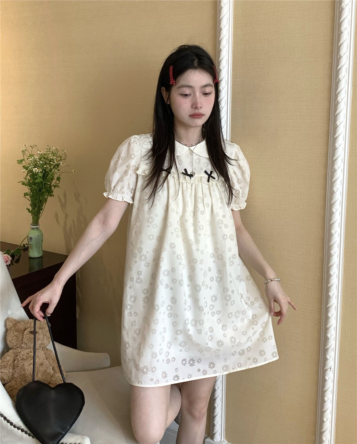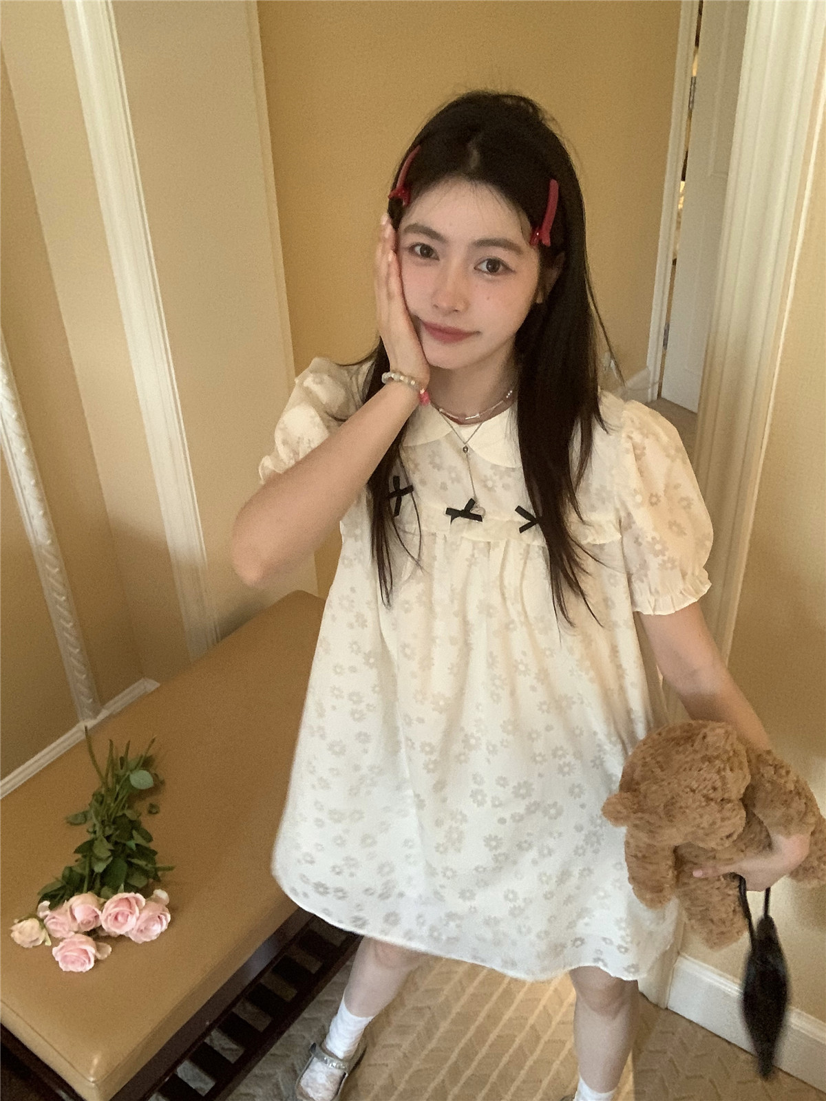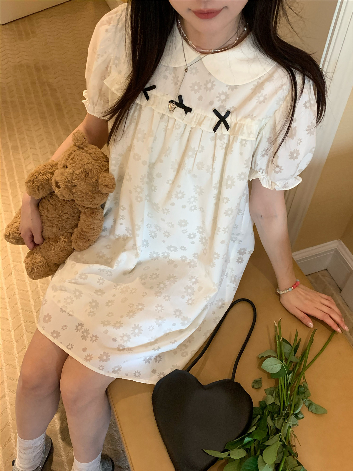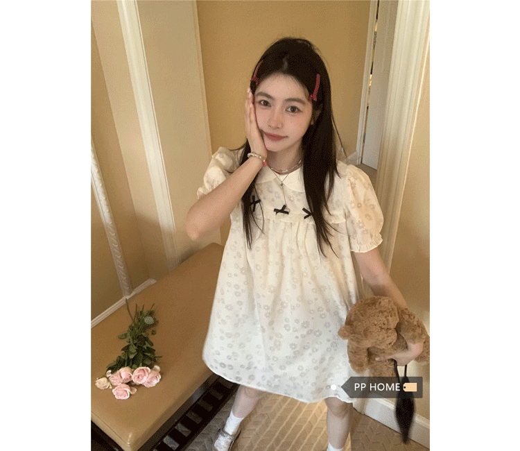 PPHOME月季之戀~百搭潮時尚甜美設計蝴蝶結圓領娃娃領減齡洋裝