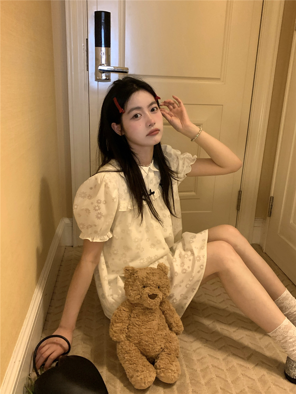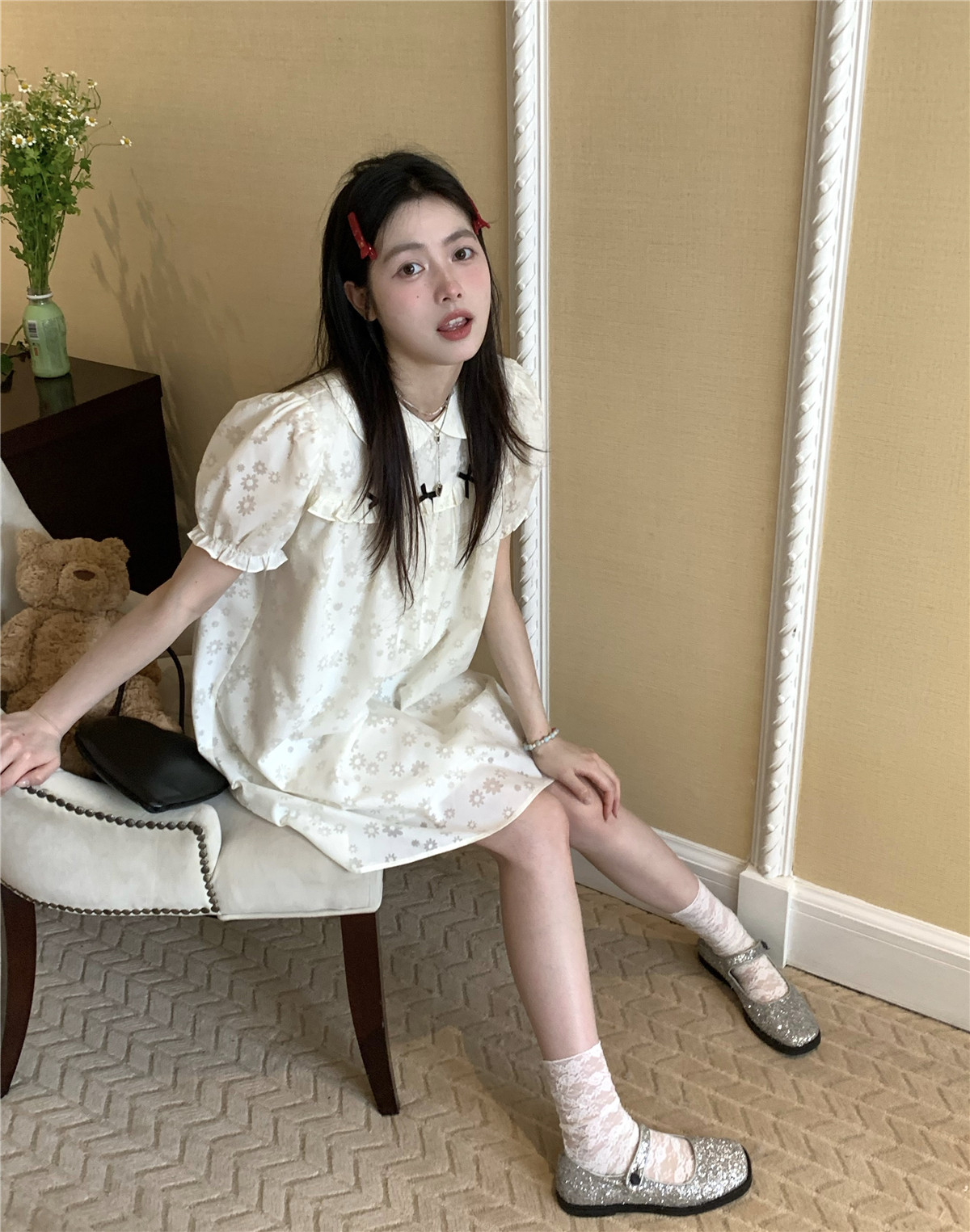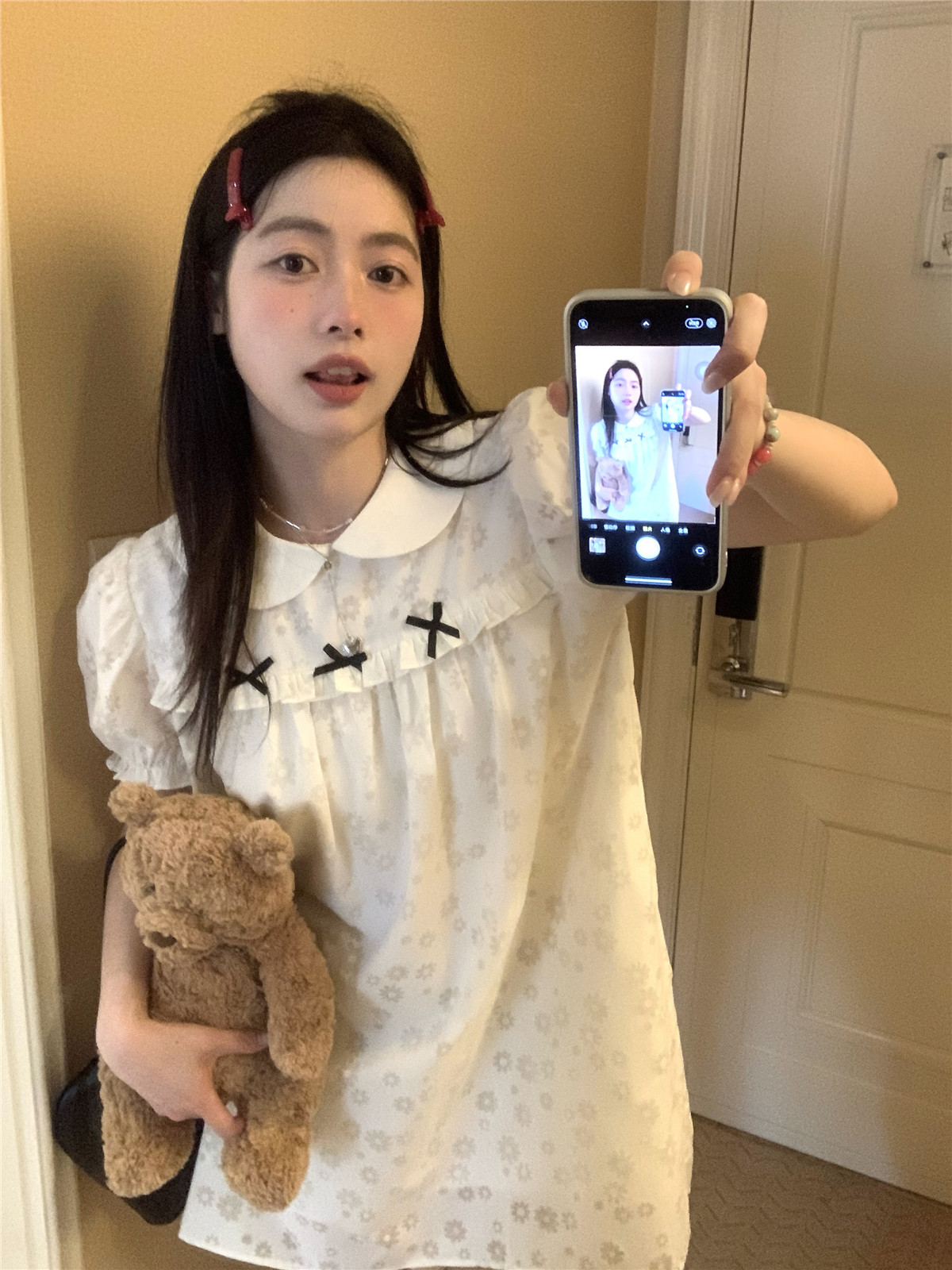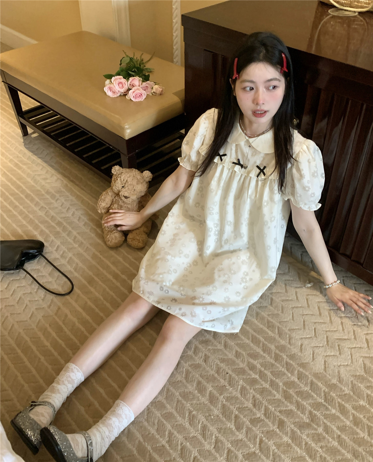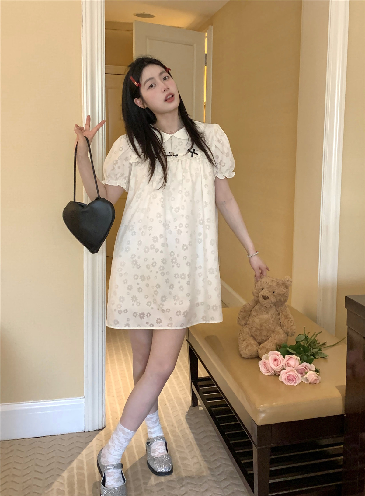 PPHOME月季之戀~百搭潮時尚甜美設計蝴蝶結圓領娃娃領減齡洋裝